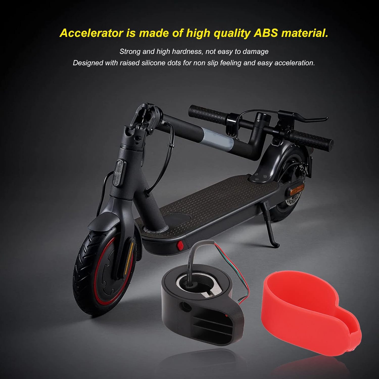 [Materiale di alta qualità] L'acceleratore è realizzato in materiale ABS di alta qualità, noto per la sua durata e la lunga durata, garantendo alte prestazioni e resistenza. [Design antiscivolo] I pollici per pollici sono dotati di puntini in silicone rialzati per una presa antiscivolo, che offre una facile accelerazione e un'esperienza di avviamento fluida. [Manicotto protettivo] include un manicotto in silicone di alta qualità per proteggere le dita e prevenire graffi, aggiungendo un basso livello di sicurezza e cordialità ambientale. [Ampia compatibilità] Progettato per Scooter elettrico M365 Pro Pro2, che offre una vasta gamma di applicazioni per praticità e versatilità. [Funzionamento semplice] Facile da usare, installare e smontare, il che lo rende facile da usare anche per i principianti, senza requisiti complicati.