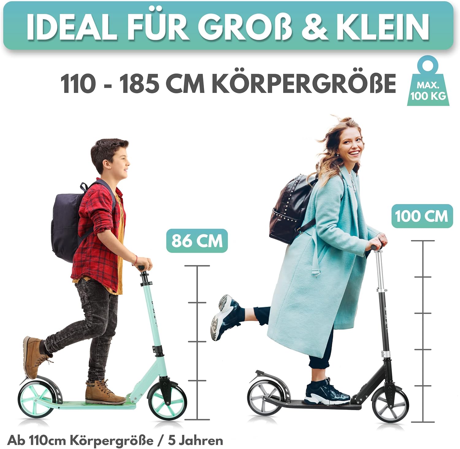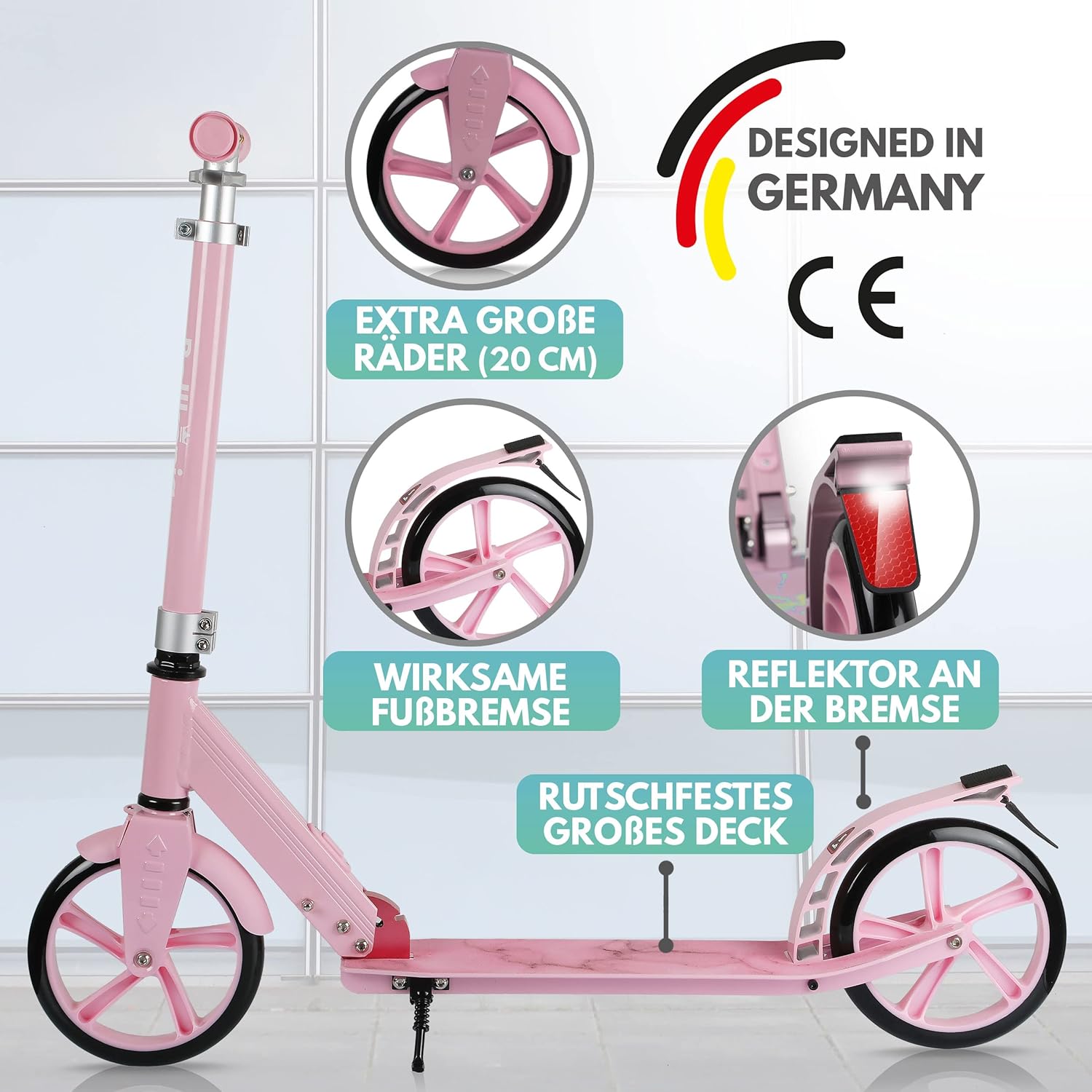 🛴 MECCANISMO BREVETTATO DI PIEGATURA A 1 PULSANTE - Il nostro monopattino per bambini consente di ripiegarlo in modo facile e sicuro senza il rischio di pizzicarlo, ideale per i bambini e per un pratico uso quotidiano. 🛴 SICUREZZA TESTATA - Sia come monopattino per bambini di 5 anni, 6 anni o per bambini di 10 anni - grazie ai forti freni, ai catarifrangenti e alle ruote larghe, il monopattino offre la massima sicurezza. 🛴 ADATTABILE E REGOLABILE - L'altezza del manubrio del monopattino per bambini può essere regolata in modo da poter essere utilizzata da bambini con un'altezza di 110 cm fino ad adulti (fino a 100 kg) con un'altezza di 190 cm. 🛴 REGALO PERFETTO PER BAMBINI ATTIVI - Il nostro monopattino piacerà sia alle bambine che ai bambini. Incoraggia l'esercizio fisico all'aria aperta ed è ideale per i bambini dai 5 ai 10 anni. 💯 PROMESSA ROYAL - Il nostro monopattino per bambini è sinonimo di massima qualità, ed è per questo che offriamo un reso senza preoccupazioni entro un anno dall'acquisto - senza costi aggiuntivi!