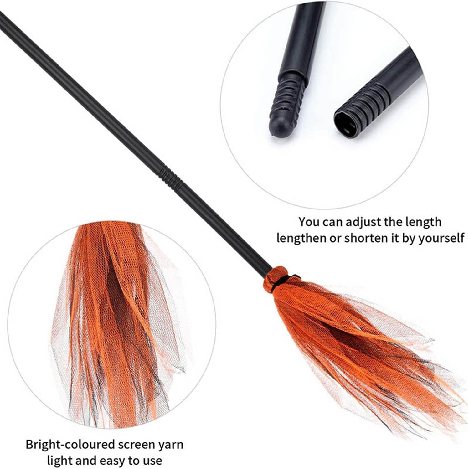 Scelta cromatica: Cinque tonalità incisive arricchiscono i costumi e l'atmosfera delle feste di Halloween. Questa versatile tavolozza migliora facilmente gli eventi tematici e gli accordi festivi. Multiuso: migliora spettacoli, decorazioni per la casa infestata o feste di Halloween con questa scopa versatile. Perfetto per esaltare feste in costume e carnevale, integrandosi con qualsiasi scenografia tematica. Dettaglio distinto: manico finemente avvolto abbinato al tessuto mesh traspirante della scopa, offrendo un'estetica raffinata apprezzata dalle fasce d'età, garantendo durata e fascino visivo continuo nel tempo Robusta e leggera: progettata con materiali ABS e rete di qualità, questa scopa da strega combina robustezza e leggerezza per una facile presa e resistenza allo sbiadimento nel tempo. Complemento: questa scopa garantisce un set strega pulito e coordinato, facilmente abbinabile a abiti e cappelli per abiti adulti e infantili
