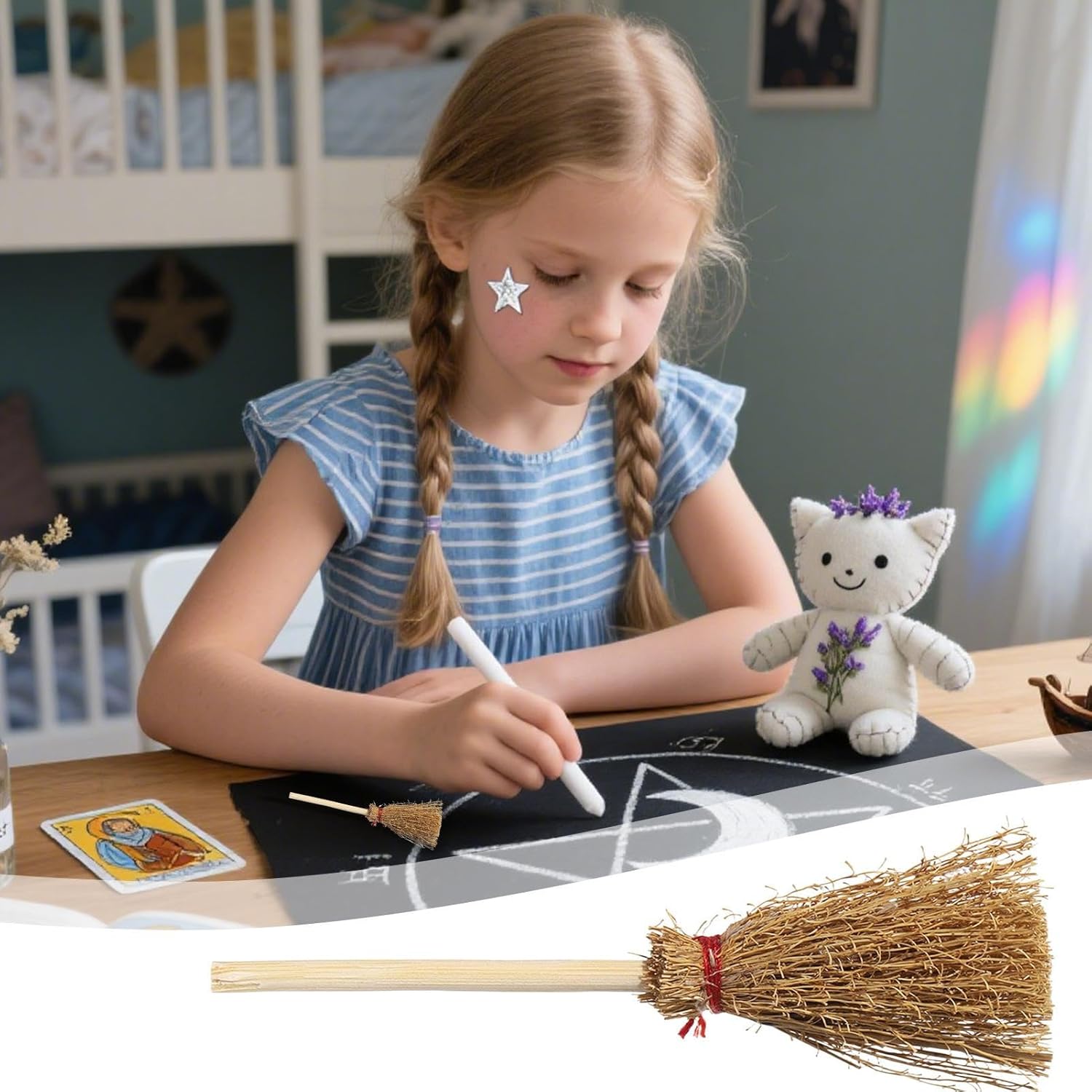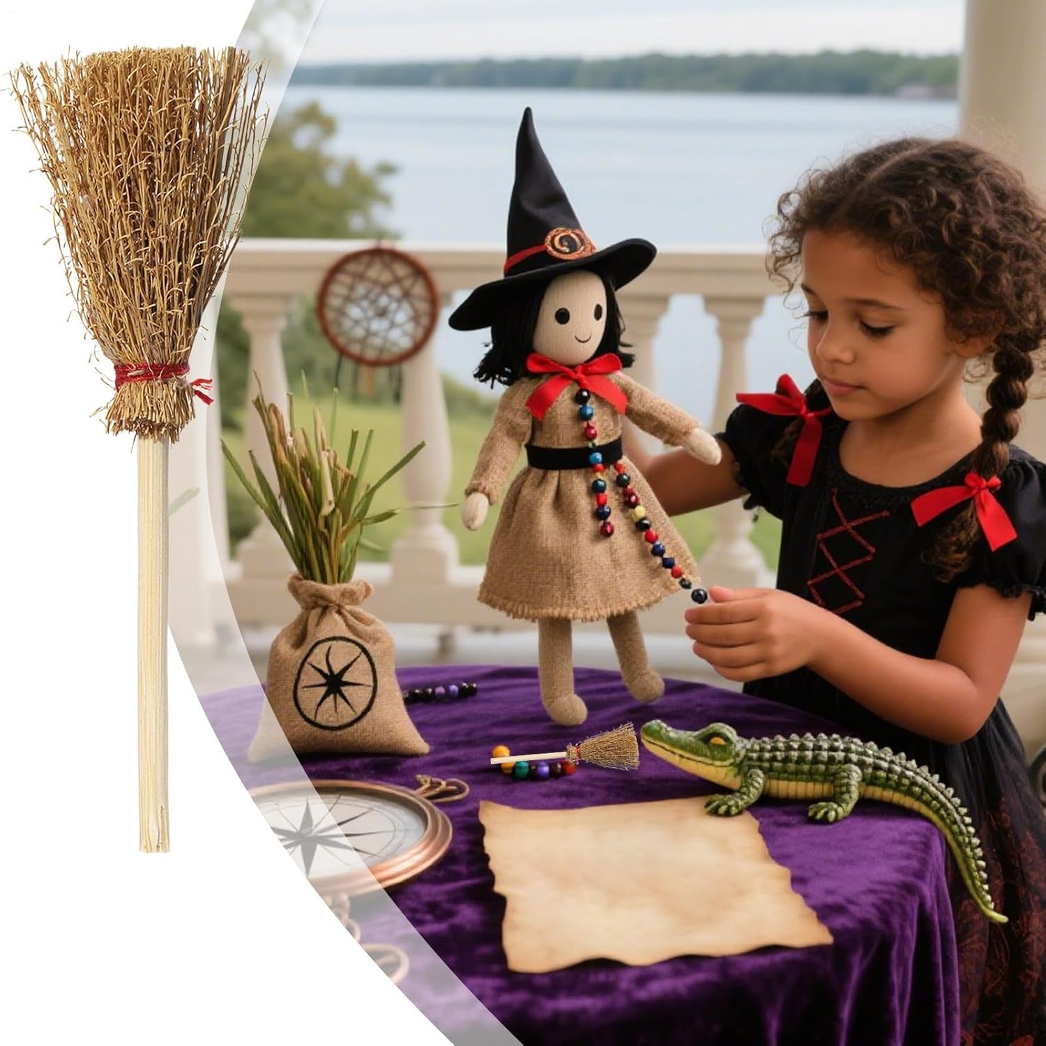 Aumenta l'atmosfera: con dettagli di erba intrecciata a mano, questa scopa da strega crea una misteriosa atmosfera festosa, rendendola una scelta eccellente per decorazioni da scrivania o oggetti di scena a tema in ambienti retrò di Halloween, aumentando al tempo stesso l'impatto visivo. Dettagli delicati: questa scopa da strega è caratterizzata da una tessitura fine per un aspetto naturale e una struttura robusta, rinforzata da un fissaggio multistrato, garantendo durata creando al tempo stesso un accattivante effetto visivo 3D, rendendola la scelta ideale per scopi decorativi o a tema Compatta ed extra leggera: con il suo design compatto e Struttura leggera, questa scopa da strega è realizzata per un facile posizionamento su scaffali, tavoli o finestre, offrendo portabilità per soddisfare varie esigenze domestiche senza occupare spazio eccessivo Occasioni versatili: Ideale per miglioramenti nel gioco di ruolo, questa scopa da strega funge sia da oggetto di scena da strega che da pezzo decorativo che migliora senza sforzo la decorazione domestica e festiva Design straordinario: La trama realistica e la tonalità antica di questa scopa migliorano la sua forma classica e offrono una maggiore profondità visiva che evoca un tocco di incanto, rendendola un'aggiunta accattivante a qualsiasi ambientazione mistica o celebrativa