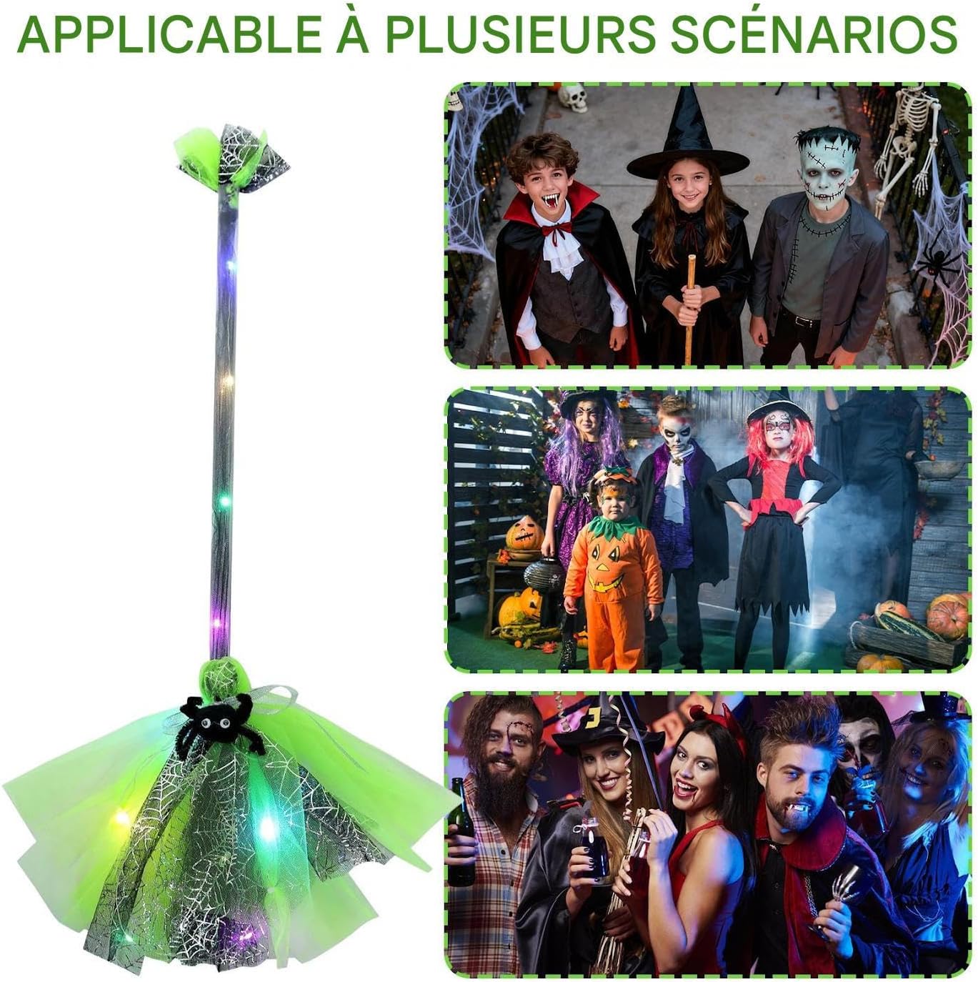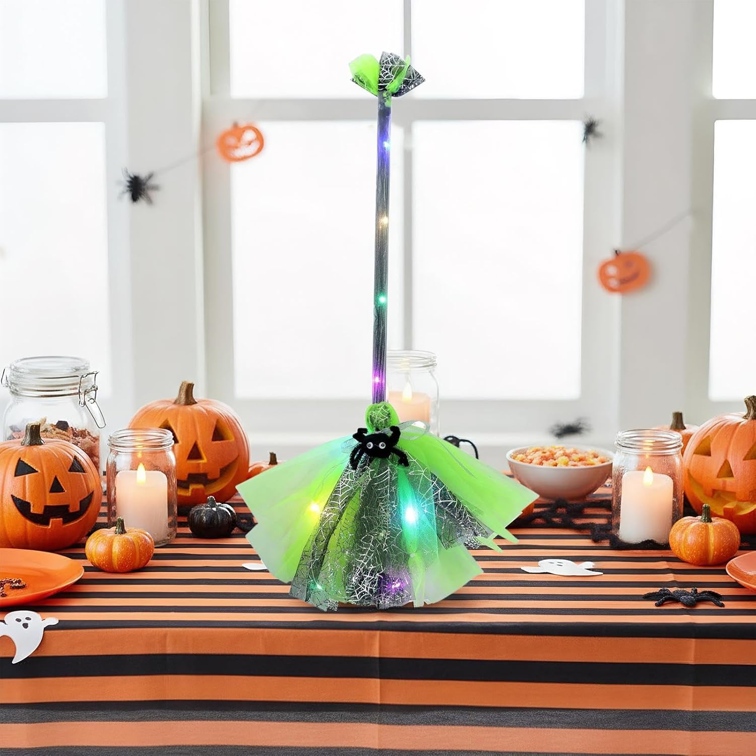 Forniture per feste già pronte: la scopa della strega di Halloween combina decorazioni e costumi a tema, aggiunge un tocco coinvolgente alle ambientazioni festive e aumenta il divertimento durante le riunioni di famiglia o le feste scolastiche di Halloween, creando momenti indimenticabili e divertenti. Complemento perfetto per il costume: caratterizzata da un design leggero e coordinato con il design, questa scopa da strega esalta l'autenticità dei cosplay di Halloween ed è un tocco distintivo per le feste che completa qualsiasi outfit da strega, rendendolo adatto per celebrazioni a tema e servizi fotografici. La sua facile integrazione e l'aspetto realistico lo rendono un accessorio ideale per Halloween, migliorando l'esperienza con un look festoso e autentico per ricordi indimenticabili. Facile applicazione LED: dotata di attivazione LED, questa scopa da strega di Halloween offre prestazioni affidabili e utilizzo immediato senza alcuna configurazione, rendendola una scelta per eventi familiari che richiedono effetti rapidi e accattivanti per stupire gli ospiti. La facilità d'uso consente l'integrazione immediata in qualsiasi partito. Uso decorativo per scenari multipli: come accessorio portatile da collezione e display montabile a parete, questa scopa decorativa da strega combina un'illuminazione strana e fantastica per creare un'atmosfera festosa istantanea a casa, feste di Halloween o eventi a tema, creando esperienze coinvolgenti attraverso il suo design personalizzabile e un fascino visivo immediato in qualsiasi stanza. Illuminazione accattivante: grazie all'illuminazione a LED integrata, la scopa da strega di Halloween offre effetti abbaglianti e maggiore visibilità, fungendo da affidabile accessorio per costumi di Halloween per attirare l'attenzione durante le feste serali o i viaggi di raccolta di caramelle di quartiere, con un'emissione luminosa costante.