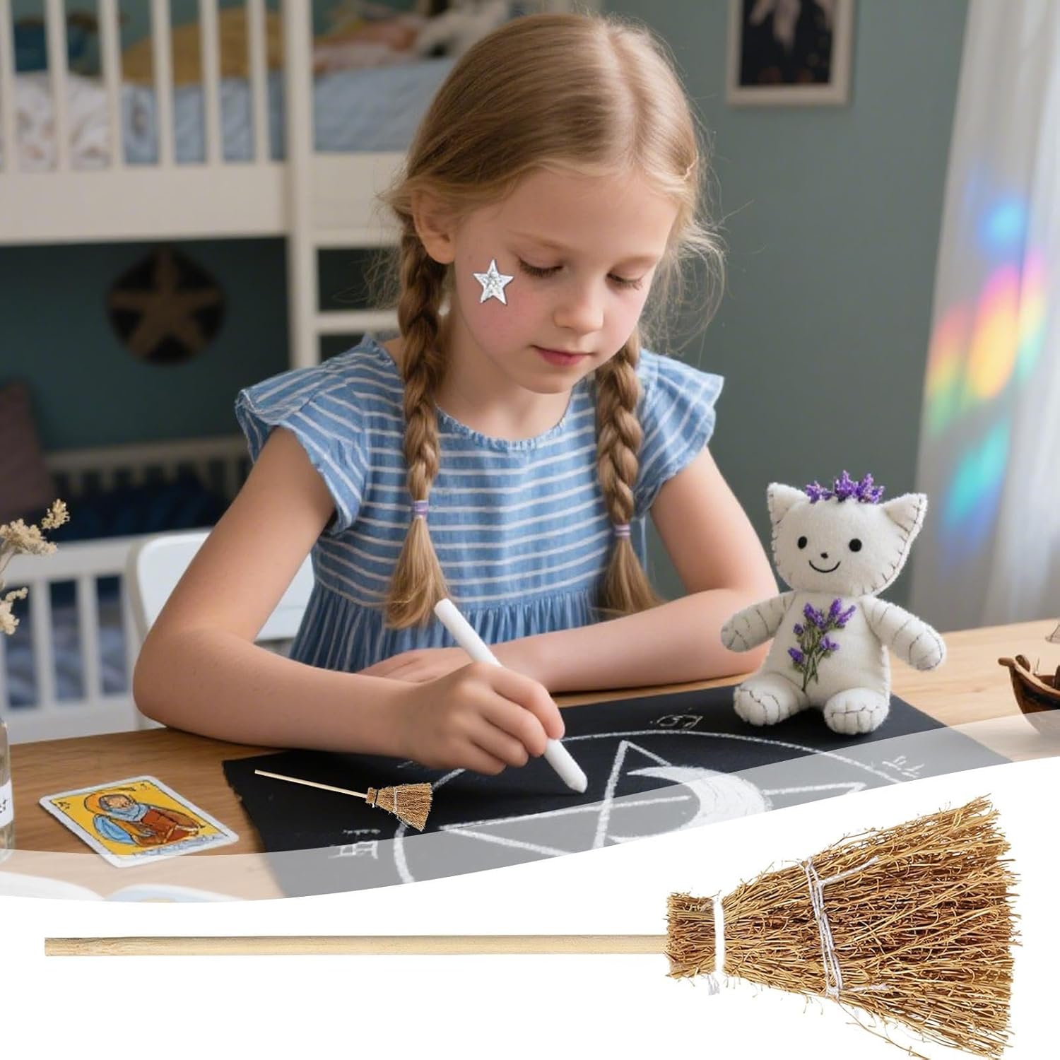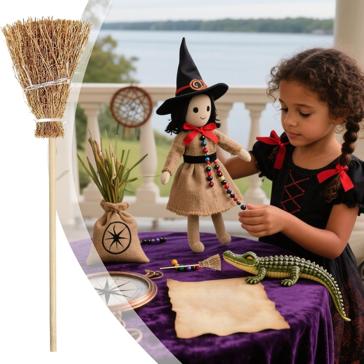 Finitura sofisticata: dona un look naturale grazie al tessuto artigianale fine. Struttura stabilizzata con fissaggio multistrato offre funzionalità e accattivante effetto 3D. Perfetto per mostre creative. Ambiente mistico: scopa da strega con erba tessuta a mano che crea un'atmosfera festosa misteriosa, ideale come decorazione da scrivania o accessorio a tema Halloween retrò, aggiungendo naturale alle mostre stagionali con autentico carattere artigianale Compatto e leggero: Scopa decorativa leggera progettata per essere facilmente posizionata su scaffali, tavoli o davanzali, garantendo comfort e portabilità; le sue dimensioni compatte la rendono versatile per vari spazi, mantenendo praticità e facilità d'uso negli ambienti quotidiani. Ampio utilizzo: ideale per giochi di ruolo, costumi e come accessorio da strega, aggiunge un tocco festivo all'arredamento della casa durante le celebrazioni stagionali, combinando funzionalità e stile in modo naturale. Design accattivante: la scopa mostra una consistenza realistica combinata con il tono antico, offrendo una forma classica che genera maggiore profondità visiva, ideale per aggiungere un tocco di mistero e autenticità alle tue decorazioni stagionali.