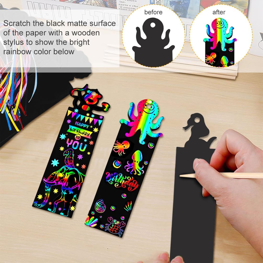 🌈Scratch Marker Set: 48 pennarelli arcobaleno, 48 corde colorate, 48 pioli di legno. Facile da grattare e disponibile nei brillanti colori dell'arcobaleno. Materiale sicuro, atossico e inodore. È necessaria la supervisione di un adulto quando si utilizzano oggetti appuntiti. Ottimo progetto fai-da-te per bambini. 🌈Materiale di alta qualità: i pennarelli personalizzati sono realizzati con vernice e cartone ecologici e i pennelli sono realizzati in bambù naturale, ecologico, leggero e facile da usare. Sicuro e durevole, non tossico, inodore. 🌈FACILE DA APPLICARE: Usa una penna da grattare per grattare via la superficie nera opaca degli adesivi per grattare via per rivelare i vivaci colori iridescenti sottostanti. I bambini possono disegnare o scrivere sui pennarelli, dandoti una grande idea di chi sia un potenziale piccolo artista! 🌈 REGALO PERFETTO PER BAMBINI: per ragazze e ragazzi, è il momento clou della festa di compleanno dei bambini, possono progettare i propri segnalibri. Ha lasciato un ricordo profondo e un significato speciale per il compleanno dei bambini. 🌈Multifunzionale: può anche coltivare la pazienza, l'attenzione e la creatività dei bambini. È un buon modo per esercitare l'abilità pratica e la ricca immaginazione dei bambini.