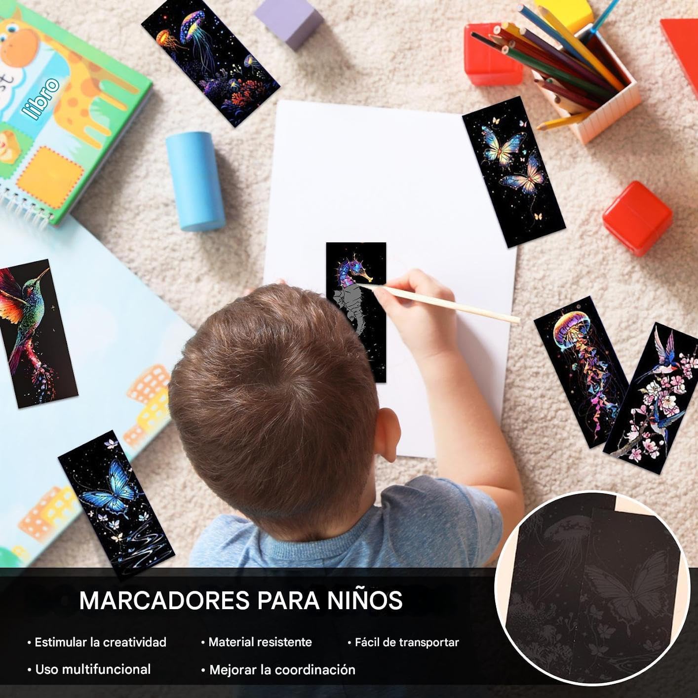 Inspire: aumentare le abilità artistiche dei bambini attraverso attività di graffio attraenti che sbloccano la loro creatività e incoraggiano espressioni fantasiose Boost Potenziale di apprendimento: aumentare il tempo di gioco dei bambini con questi marcatori di graffi che migliorano la coordinazione e l'attenzione, incoraggiando lo sviluppo di abilità come la coordinazione e la pazienza mano- Materiale resistente: con colori vivaci e costruito con materiale perfetto, questi pennarelli offrono funzionalità sicure e resistenti per un uso prolungato Molteplici funzioni: con un invisibile, i marcatori di scratch per i bambini si trasformano in un messaggio segreto, aggiungendo un elemento di divertimento alla tua esperienza di lettura Handy to Carry: proteggi le tue pagine con questo segnalibro leggero e portatile, creato per un facile utilizzo a casa, a scuola o in viaggio. Non perdere mai più il tuo posto
