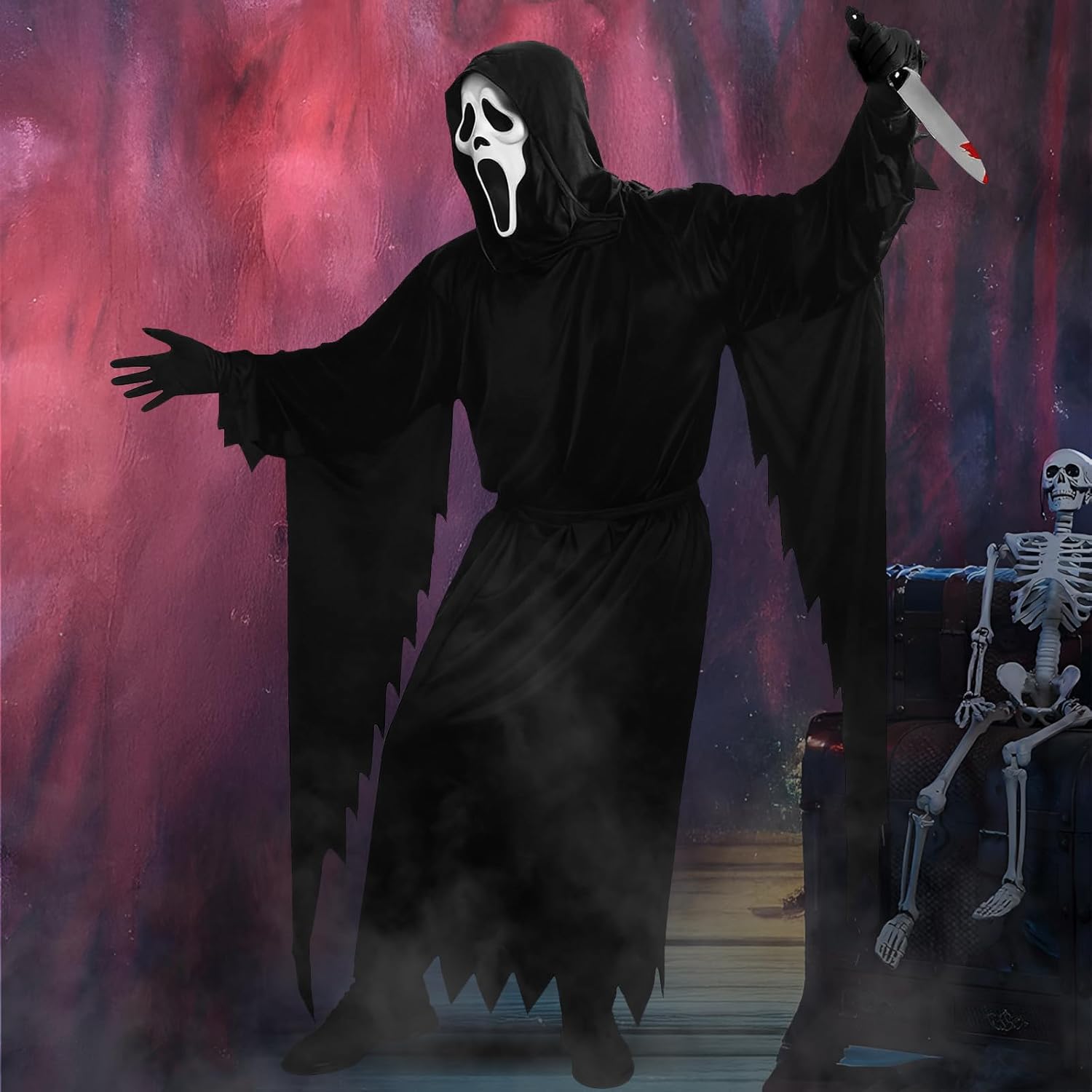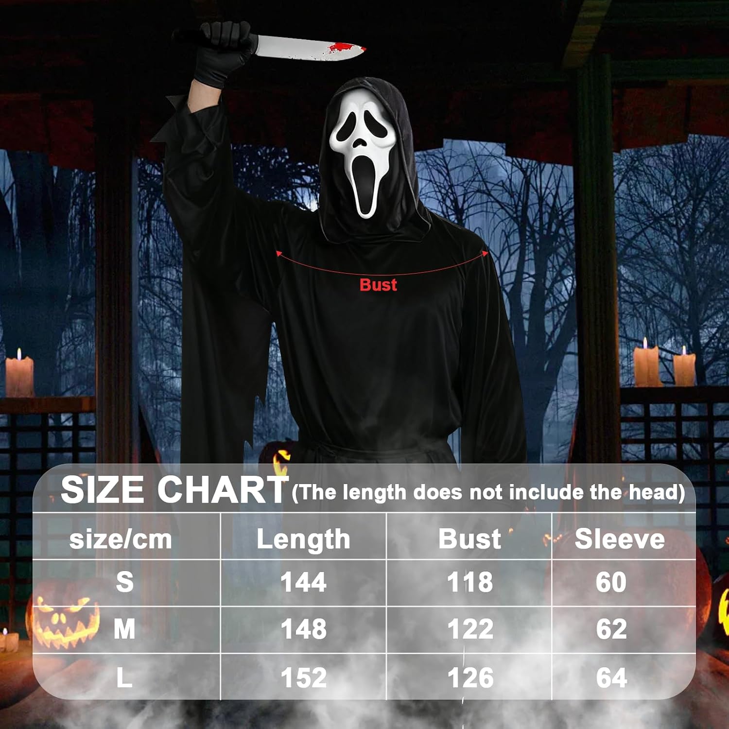 Descrizione prodotto Diventa una LEGGENDARIA FIGURA TERRIFICANTE! Assicurati il scream costume più temuto della stagione: il tuo biglietto per il trono dell'orrore ad Halloween, al carnevale e agli eventi cosplay! SET COMPLETO CON DETTAGLI PREMIUM: Abito Nera con Cappuccio: Fluida, misteriosa, immediatamente iconica! Maschera Scream Realistica: look horror dettagliato per il massimo effetto shock! Coltello Finto Sicuro: accessorio horror indispensabile (100% innocuo)! AGGIORNAMENTO: Accessori horror professionale Guanti Neri: accentuano il look minaccioso e la tua libertà di movimento! Cintura Regolabile: vestibilità perfetta per ogni corporatura, modella la silhouette! PERCHÉ ACQUISTARLO? PRONTO ALL'USO: tutto incluso, non dovrete cercare gli accessori! MASSIMO COMFORT: materiale leggero in poliestere, respirazione libera. BRIVIDI PREMIATI: design professionale per momenti davvero sorprendenti! IDEALE PER: “Dolcetto o scherzetto” (più dolcetti grazie alla paura!) Feste horror e convention cosplay (pronto per il palcoscenico!) Servizi fotografici e video horror (successo sui social media!) Dettagli del Prodotto: Materiale: Poliestere/EVA Colore: Nero Dimensioni della Confezione: 32×21×6 cm Peso della Confezione: 467 g Il Prodotto Include: 1× Abito Nera con Cappuccio 1× Maschera Scream 1× Coltello Finto 1× paio Guanti 1× Cintura Avviso di sicurezza Contiene giocattolo. Si raccomanda la sorveglianza di un adulto