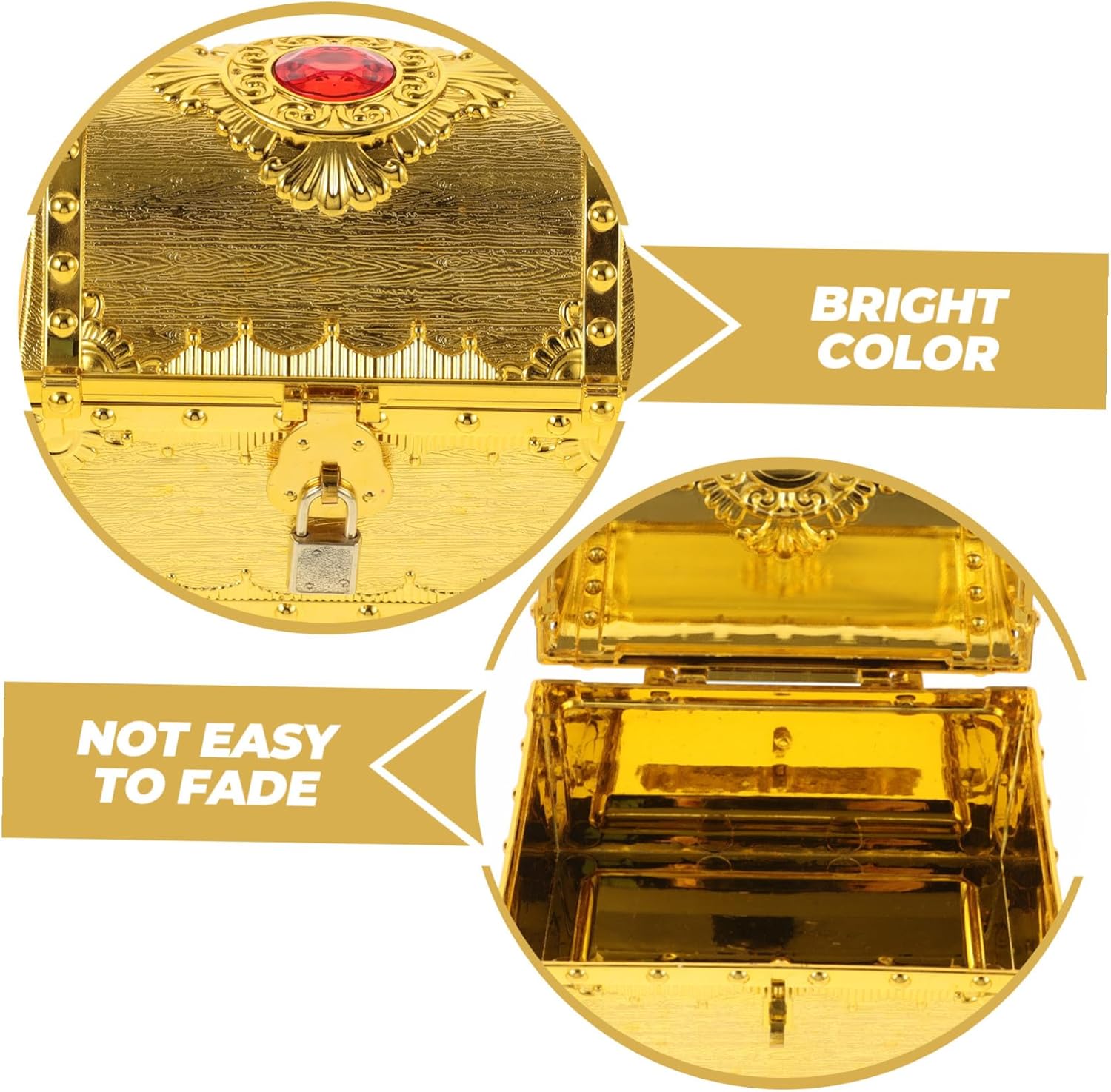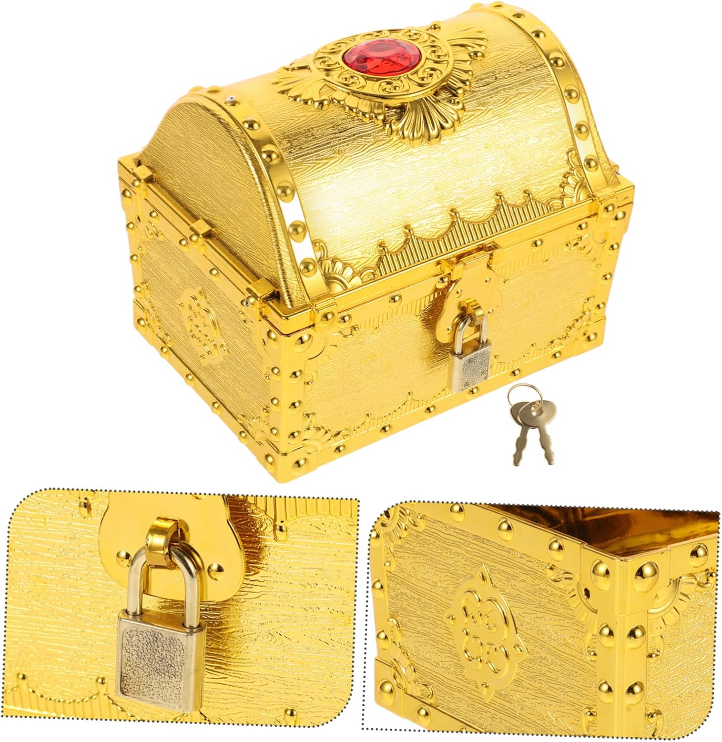 Scrigno del tesoro per la classe: vivi momenti emozionanti con questo scrigno del tesoro che ti riporta a tempi passati pieni di audaci emozioni Scrigno del tesoro in plastica: essenziale per i giochi di ruolo, incoraggia l'immaginazione, promuove la creatività e la capacità di raccontare storie, scrigno di premi Scrigno del tesoro per: con molto spazio, offre spazio per gemme, monete e piccoli giocattoli e aiuta i bambini a organizzare in modo ordinato i loro tesori, Scatole di caramelle Piccolo scrigno del tesoro dei pirati: questo scrigno del tesoro offre un'esperienza e ti porta in un mondo di cappa e spada piccolo e divertente scrigno del tesoro Scatole di caramelle retrò: realizzato in plastica, questo scrigno del tesoro è progettato per durare e garantisce longevità e divertimento a lungo termine
