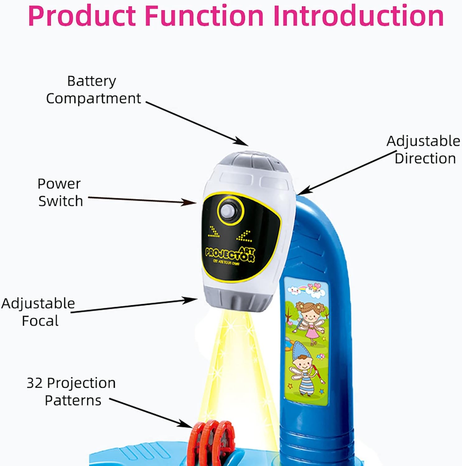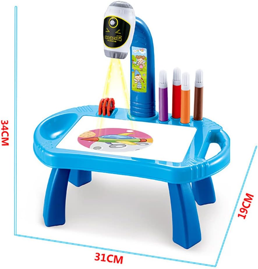Realizzato in materiale di alta qualità, durevole e stabile, sicuro da usare. Tavolo da disegno per l'apprendimento della proiezione, buoni compagni di disegno per i bambini. Con 4 diapositive e 32 modelli di proiezione, è molto facile e divertente per i bambini disegnare con la proiezione. Due modi di dipingere: si può dipingere su carta o sul tavolo da disegno, così i bambini possono disegnare in qualsiasi momento. Proiettore a rotazione flessibile, ruota l'angolo giusto per disegnare per i tuoi bambini.