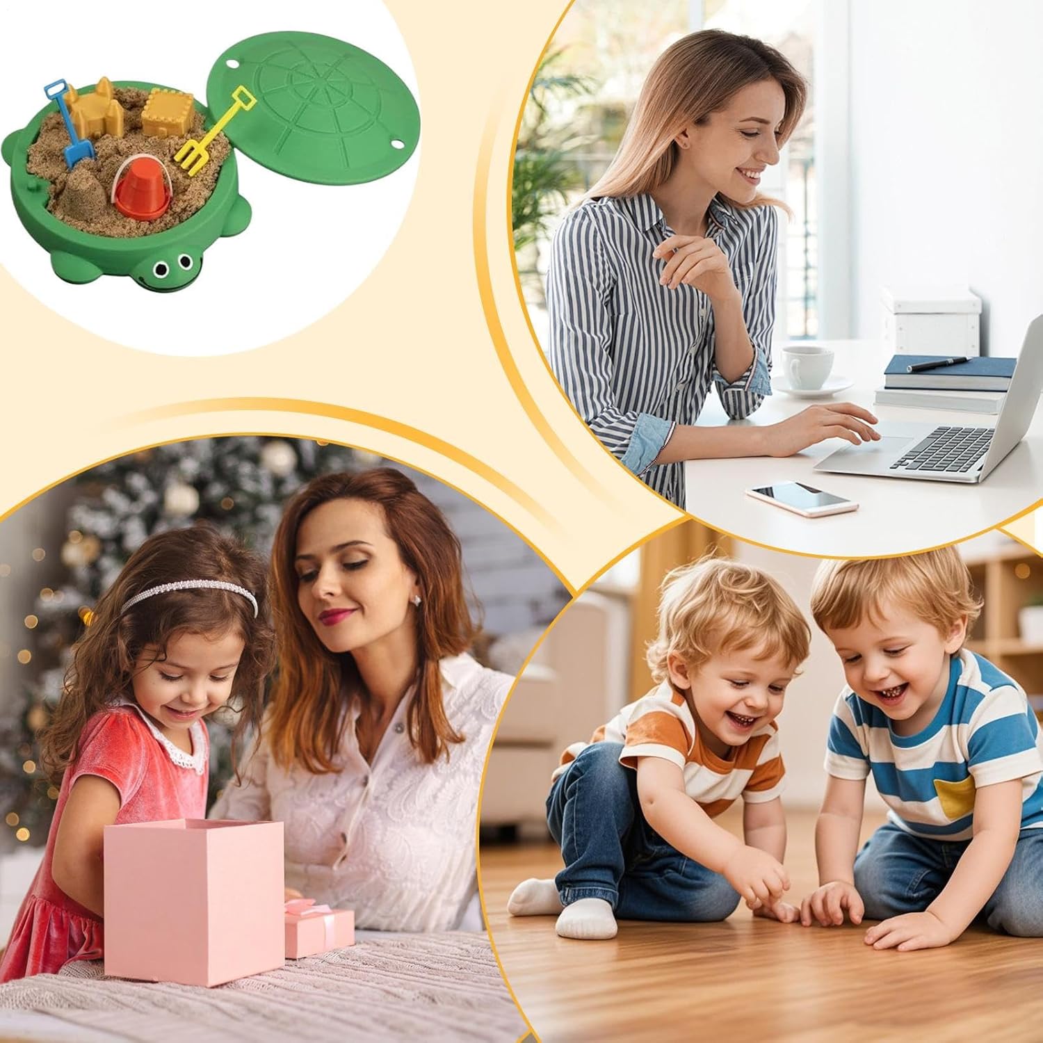 Esplorazione creativa giocosa: con la sandbox i bambini creano speciali creazioni di sabbia e aumentano così la loro espressione creativa. Il gioco hands-on stimola l'immaginazione e ispira l'innovazione e la scoperta durante le divertenti avventure in giardino. Questa esplorazione promuove il piacere della creazione artistica in un ambiente esterno sicuro. Archiviazione salvaspazio: il design compatto ispirato alla tartaruga garantisce una conservazione salvaspazio e una disposizione ordinata. Questa sabbiera con coperchio è facile da organizzare e spostare, consentendo molteplici possibilità di gioco in qualsiasi spazio adatto alle famiglie. Risparmia spazio e mantiene l'ambiente in ordine, permettendo ai bambini di giocare ovunque. Design a tartaruga giocoso: questo modello di sandbox desktop con un accattivante design a tartaruga trasforma qualsiasi scrivania in un tranquillo paesaggio Zen, che promuove la consapevolezza e aggiunge fascino al tuo ambiente quotidiano. È ugualmente adatto per fasi di attenzione e relax. La presentazione armoniosa supporta un clima di lavoro positivo e stimola l'immaginazione. L'aspetto rilassante lo rende un complemento ideale per uffici o aree private Rafforza i legami emotivi: la tartaruga sandbox desktop funge da regalo significativo che trasmette calore e cura alla famiglia e agli amici durante le celebrazioni o per momenti di auto-cura. È perfettamente adatta per approfondire le connessioni emotive e creare ricordi preziosi in qualsiasi situazione sincera. Con questo dono puoi esprimere sentimenti profondi e intensificare il legame. Porta conforto e gioia nella vita di tutti i giorni ed è un simbolo Supporto per la consapevolezza: con la sandbox per tartarughe, gli utenti godono di riduzione dello stress e maggiore attenzione durante l'immersione nella progettazione di mini paesaggi, promuovendo un ambiente tranquillo per esercizi di consapevolezza sulla scrivania. Questo gioco coinvolgente Hands-on supporta la calma e la concentrazione e aiuta a gestire i momenti stressanti attraverso l'attività creativa nella vita di tutti i giorni.