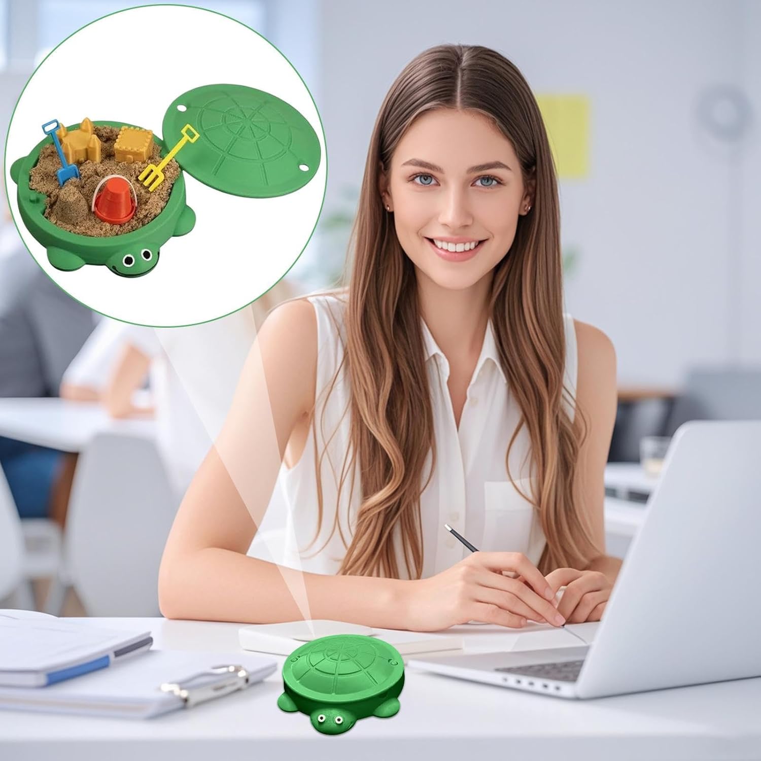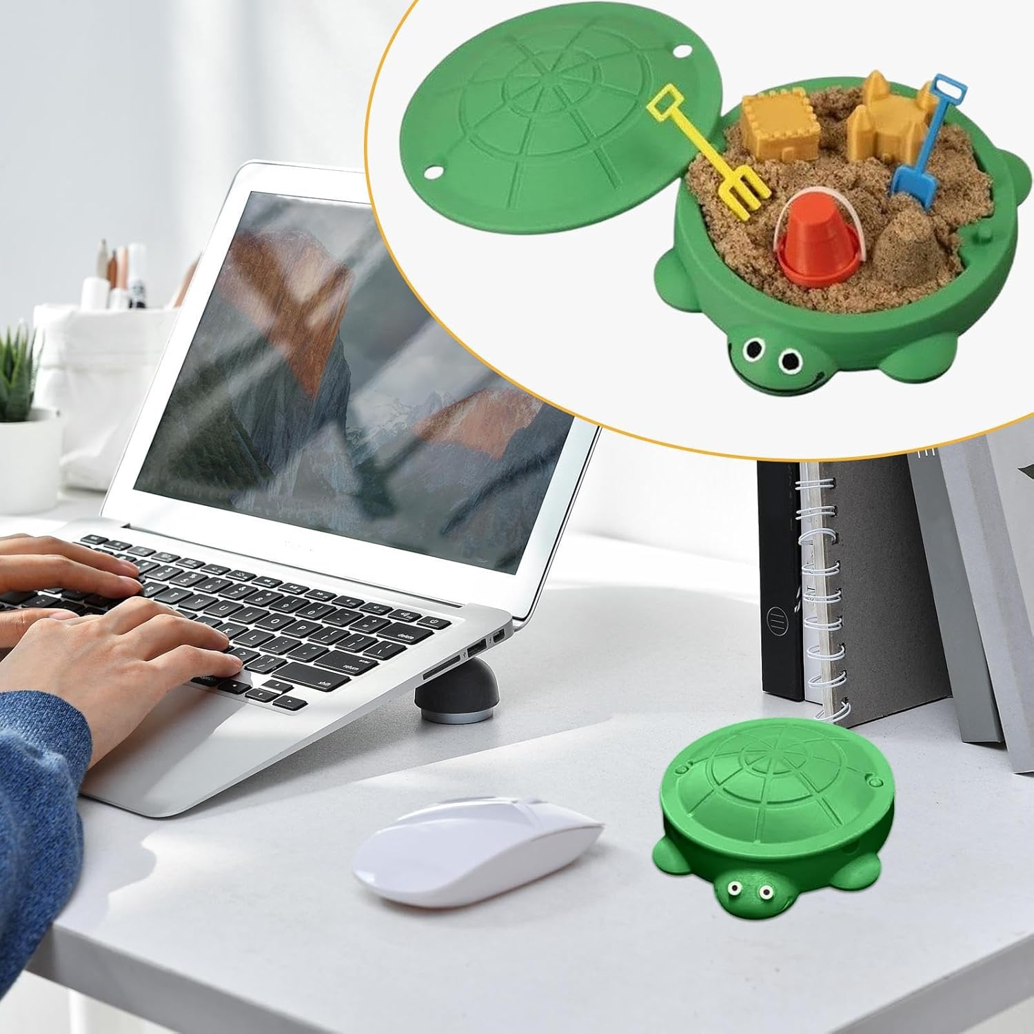 Gioco pratico coinvolgente: questa sandbox supporta la creazione di arte speciale della sabbia hands-on, promuove l'espressione creativa e risveglia l'immaginazione, mentre i bambini partecipano alla giocosa esplorazione di modelli e forme durante il loro allenamento di gioco all'aperto. Il gioco di sabbia aiuta a sviluppare idee artistiche attraverso la sperimentazione pratica e a risvegliare la gioia della creazione creativa in un ambiente sicuro. Dimensioni ordinate e portatili: grazie all'innovativa custodia per tartaruga, questa sabbiera con coperchio offre una soluzione di archiviazione compatta che aiuta le famiglie a mantenere un ambiente di gioco ordinato. Allo stesso tempo, è abbastanza portatile per un comodo utilizzo in diversi ambienti come giardini o terrazze. Le dimensioni salvaspazio e la facilità di trasporto garantiscono comfort e flessibilità. Aggiunta rilassante da scrivania: progettata come affascinante decorazione da scrivania, combina un giocoso motivo tartaruga con un paesaggio Zen e offre un piacere estetico. Crea un'atmosfera tranquilla nei luoghi di lavoro o in spazi creativi e favorisce il relax. Questa aggiunta arricchente risveglia il piacere di progettare l'area personale e supporta soluzioni innovative. Con la sua presenza pacifica aiuta ad alleviare lo stress e Compagno calore: la tartaruga da scrivania diffonde calore e cura ed è un ricordo ideale per familiari e amici durante le feste o momenti tranquilli di auto-cura. Promuove legami emotivi significativi attraverso un gesto semplice ma sincero ed è perfetto come regalo per occasioni speciali o per rafforzare le relazioni interpersonali in qualsiasi ambiente sincero. Promuove la consapevolezza e il relax: con la cassetta di sabbia a forma di tartaruga, gli utenti godono di riduzione dello stress e maggiore attenzione grazie all'approfondimento del mini paesaggio, che promuove un ambiente tranquillo per esercizi di consapevolezza alla scrivania e offre rassicurazione grazie all'avvincente gioco hands-on.