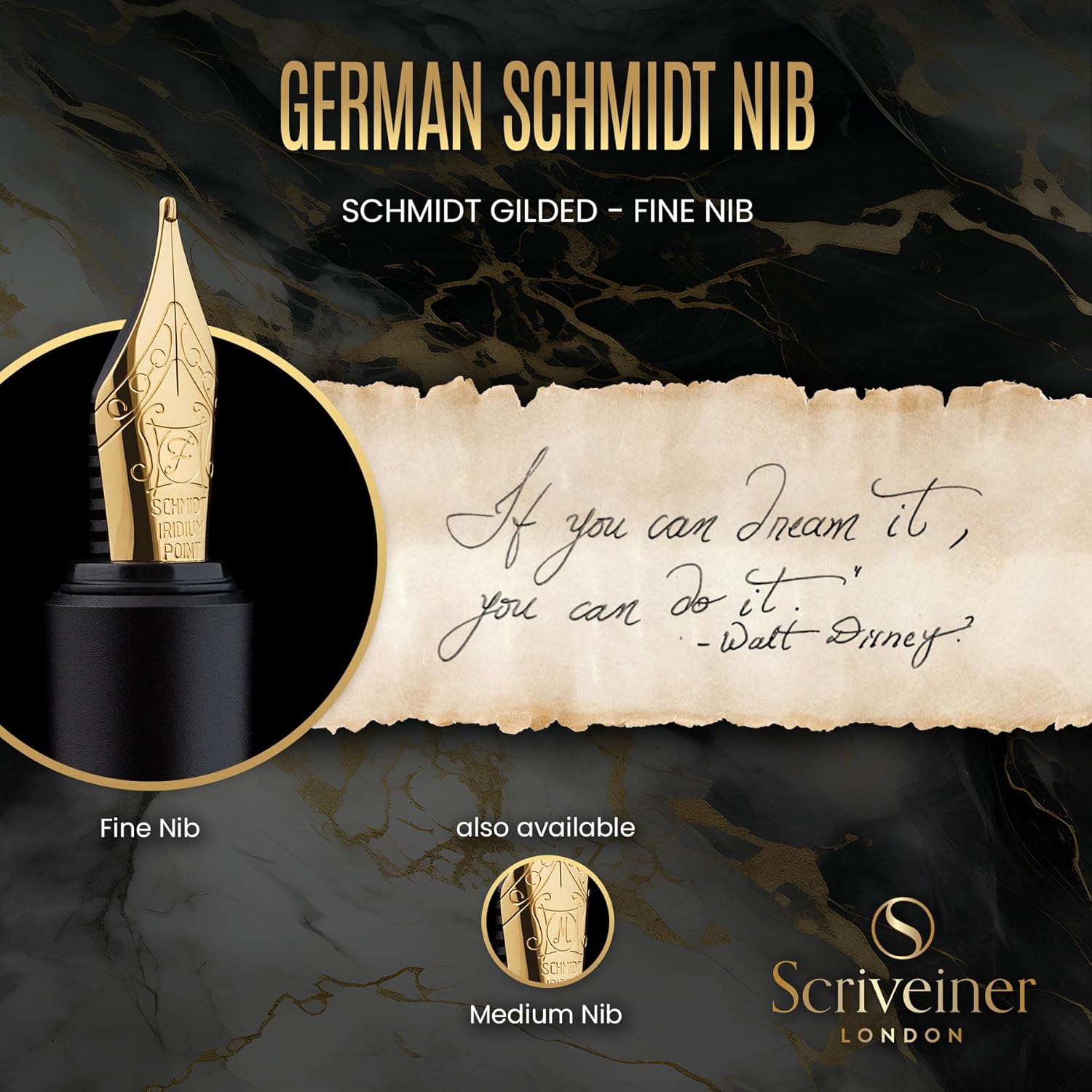 Goditi la sensazione di una penna di vero lusso nelle tue mani - Stupenda penna stilografica di lusso di Scriveiner. Alluminio anodizzato con rivestimento nero opaco antigraffio, rifinito in placcato in vero oro. Qualità premium e lusso discreto da parte di un marchio britannico. Per ogni giorno, massimo comfort di scrittura - Progettata con precisione per consentire al cappuccio di avvitarsi saldamente a entrambe le estremità. Quando è chiusa, è una penna corta che si infila facilmente in tasca. Con il cappuccio inserito, è una penna a grandezza naturale con un equilibrio perfetto, che sta benissimo nella tua mano. Trascrivi i tuoi pensieri senza sforzo - Il pennino di produzione tedesca scivola sulla pagina. Viene fornita con un convertitore e due cartucce, una nera e una blu. È una penna di lusso pensata per chi ama scrivere ogni giorno. Impressiona i tuoi colleghi e i tuoi cari - La penna è contenuta in una bellissima scatola di presentazione ed è il regalo perfetto. Sia come penna casual che come penna executive, per il lavoro, gli affari o per uso personale, questa elegante penna sarà ammirata da chi ti circonda. Elegante, sofisticata e di lusso - Le penne Scriveiner sono state progettate a Londra, in Inghilterra, e condividono gli attributi senza tempo del classico design britannico.