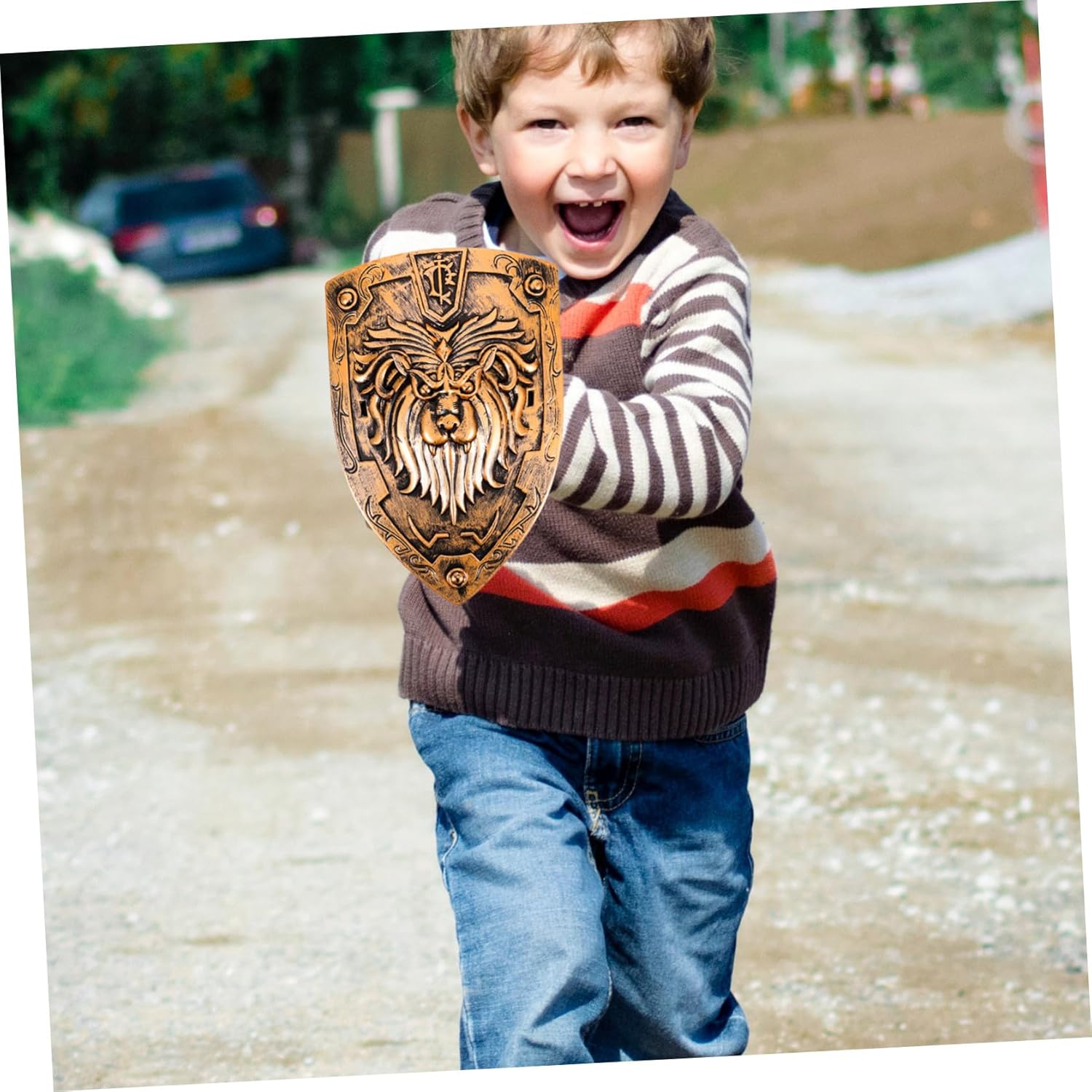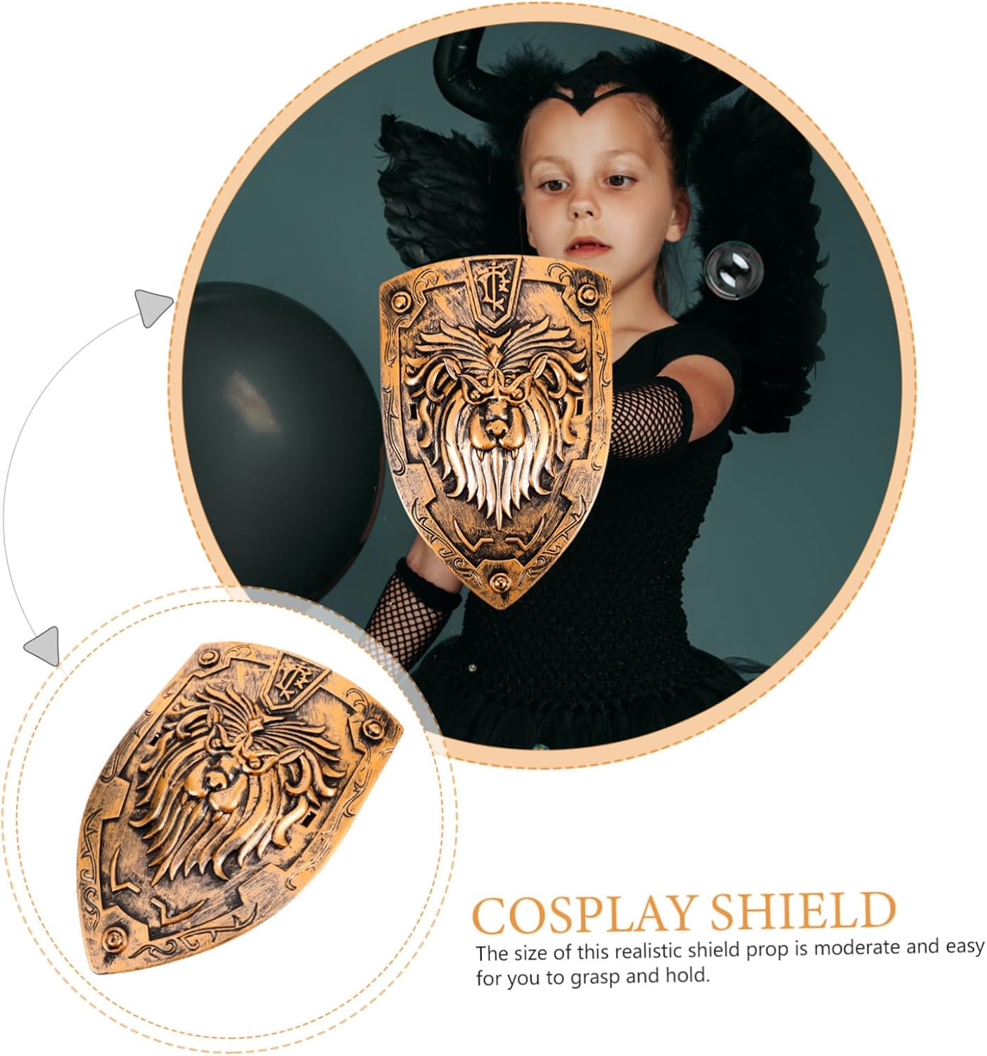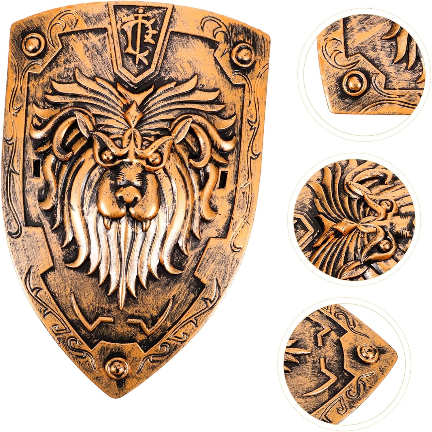 Scudo decorativo: il supporto dello scudo è molto resistente e non facile da deformare e rompere. Puntello scudo medievale Puntello scudo vichingo - perfetto per giochi quotidiani e di ruolo, porta e crea atmosfera di festa, scudo per il palco Scudo cosplay - sicuro e durevole per l'uso, non si rompe e non si deforma facilmente, oggetti di scena per la decorazione Costume scudo - il pratico puntello per scudo è molto buono e facile da trasportare quando sei in movimento, oggetti di scena per cosplay con scudo per ragazzo soldato - liscio e arrotondato, lavorazione, può suscitare interesse, puntello per cosplay