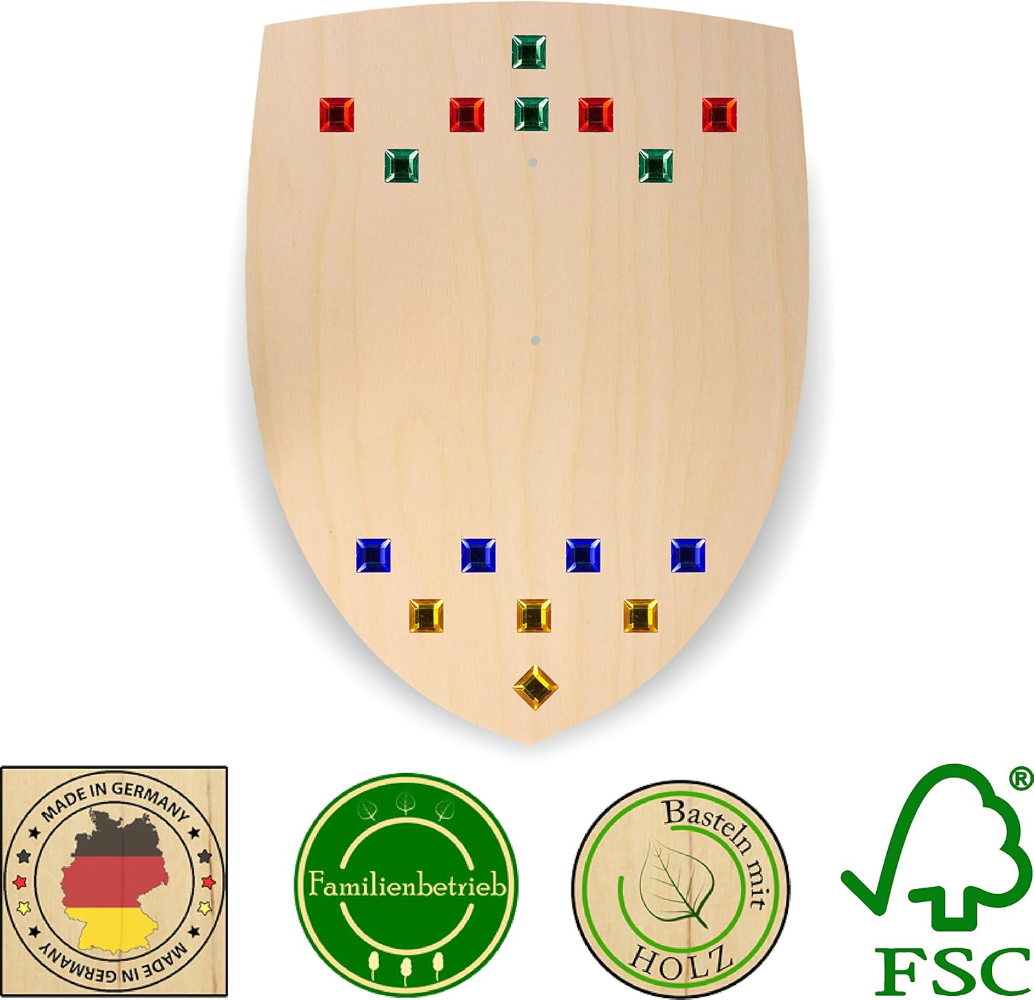 Compensato di betulla da 3 mm - super leggero e molto stabile, liberamente personalizzabile con colori e pennarelli glitterati incluse 16 pietre glitter autoadesive grandi (15x15x4 mm) in 4 colori materiale non trattato, superfici finemente levigate, bordi levigati, certificato secondo E1 Made in Germany - produzione propria Dimensioni ca. 32 x 24 x 0,3 cm Non adatto a bambini di età inferiore a 3 anni, non senza la supervisione di un adulto, questo prodotto non offre protezione, conforme CE