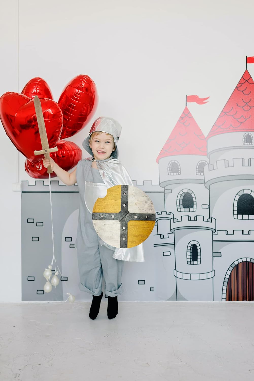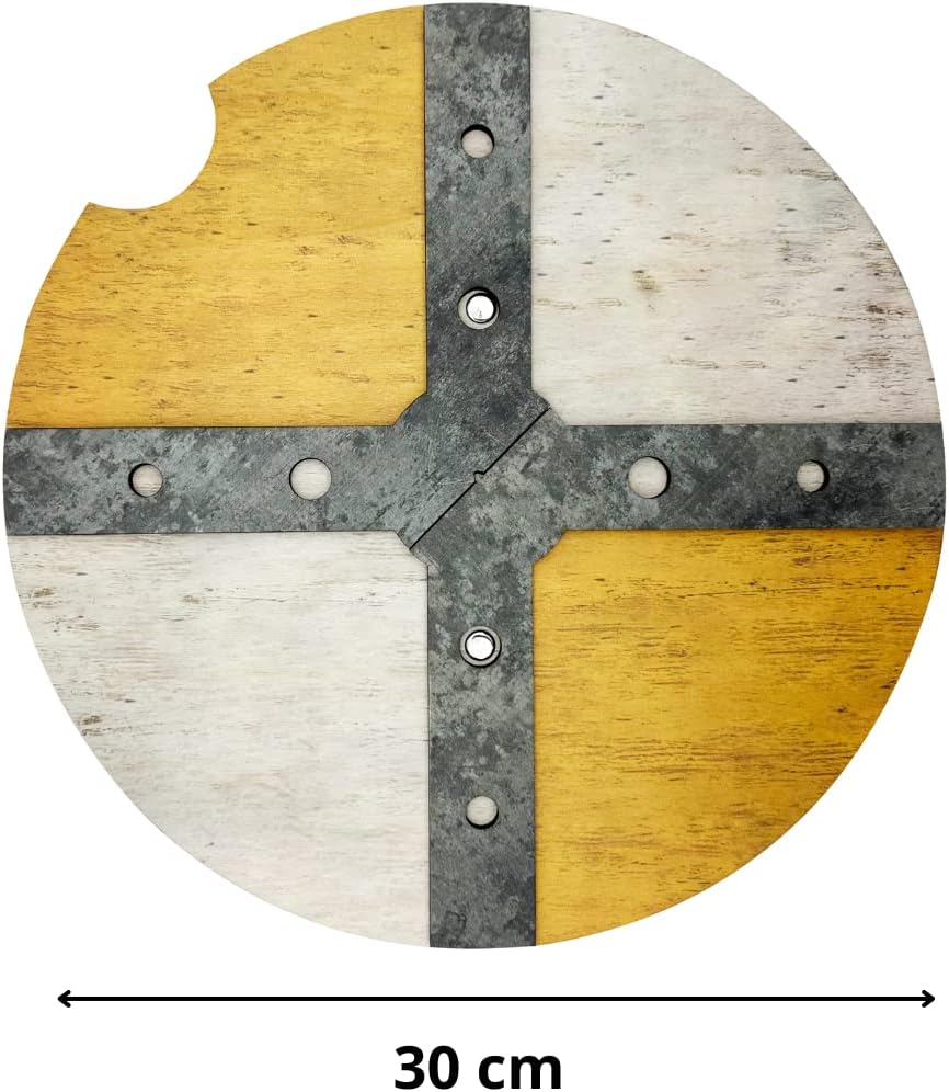Kit di giocattoli medievali. Include: scudo e spada in legno per bambini Vantaggi: con questo costume, i bambini possono giocare a giochi di ruolo all'aperto, attività familiari e scolastiche, contribuendo a migliorare il coordinamento, le capacità motorie e le abilità sociali Dimensioni: scudo (30 cm di diametro) e spada (44,5 cm di lunghezza) Design divertente: lo scudo è disponibile in tre opzioni di colore; rosso, verde e giallo Facile da trasportare: lo scudo ha un cinturino in finta "pelle" sul retro per una presa comoda