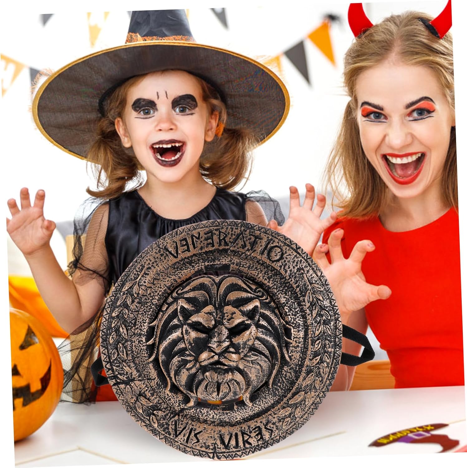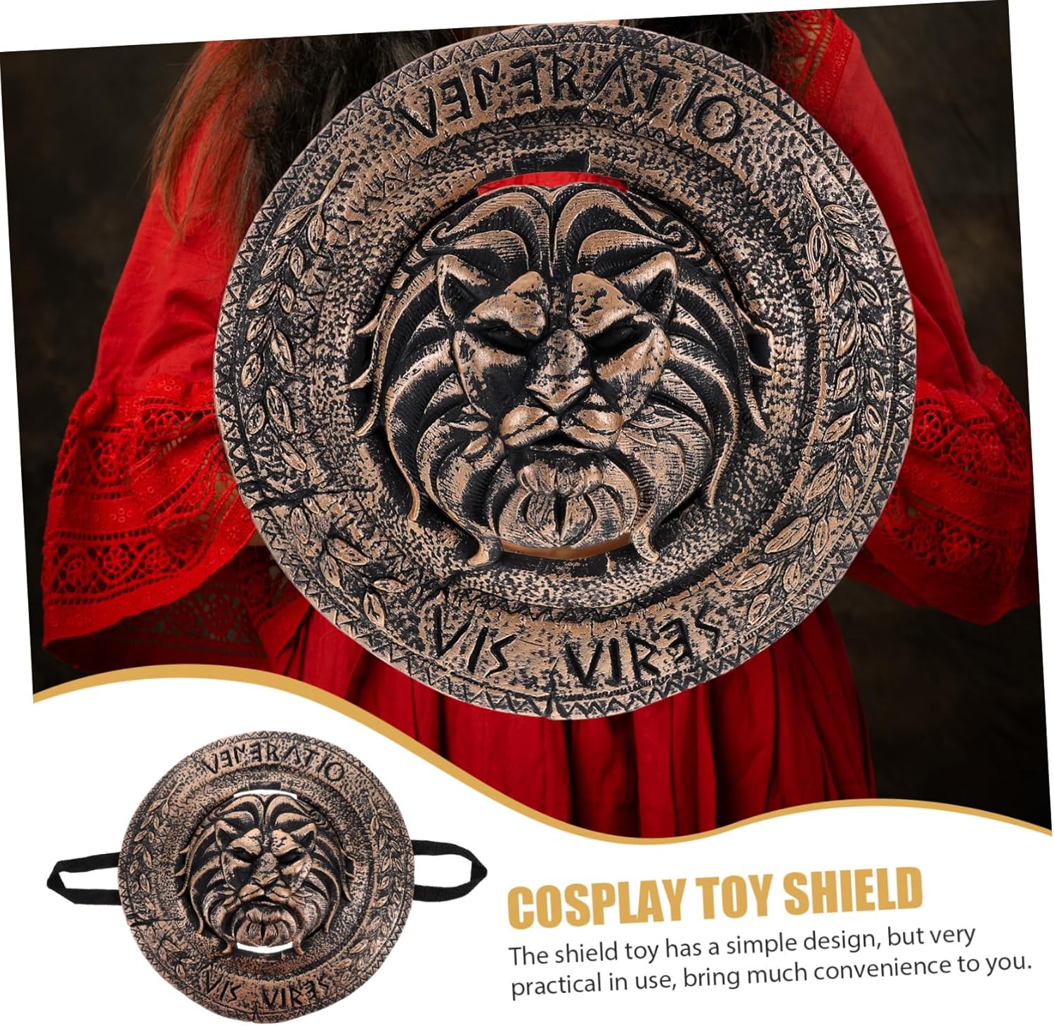 Costume romano - Promuove lo sviluppo emotivo, visivo, intellettuale, lo sviluppo delle mani e del cervello, l'abilità di presa, la percezione sensoriale, la coordinazione occhio-mano, lo sviluppo degli interessi, ecc., Segno di performance scenica. Piccolo scudo: condividi con le tue famiglie e i tuoi amici perché sono giocattoli scudo realistici sicuri e interessanti e oggetti di scena per cosplay. Scudo da battaglia - La dimensione di questo realistico scudo di plastica è moderata e facile da afferrare e tenere, scudo di Halloween. Scudo per giochi di ruolo: leggero e compatto, puoi giocarci con genitori o amici a casa, in hotel, ecc., cosplay di cavalieri. Scudo giocattolo per cosplay - Il giocattolo scudo dal design di simulazione è ben lucidato e non fa male alle mani quando viene utilizzato, piccolo scudo portatile.