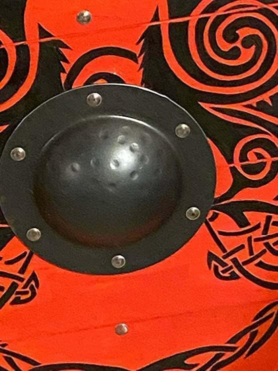 Materiale: legno e ferro Colore: come da immagine Diametro totale: 61 cm circa Guarda le foto per l'immagine reale del prodotto. Tipo di scudo: stile vichingo, rune vichinghe, armatura medievale, scudo in legno per costume da larp pronto per la battagli