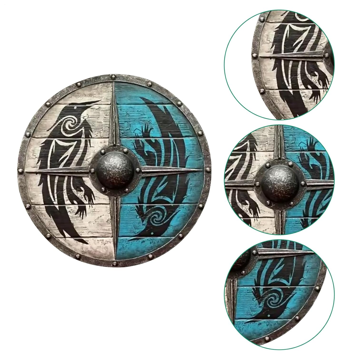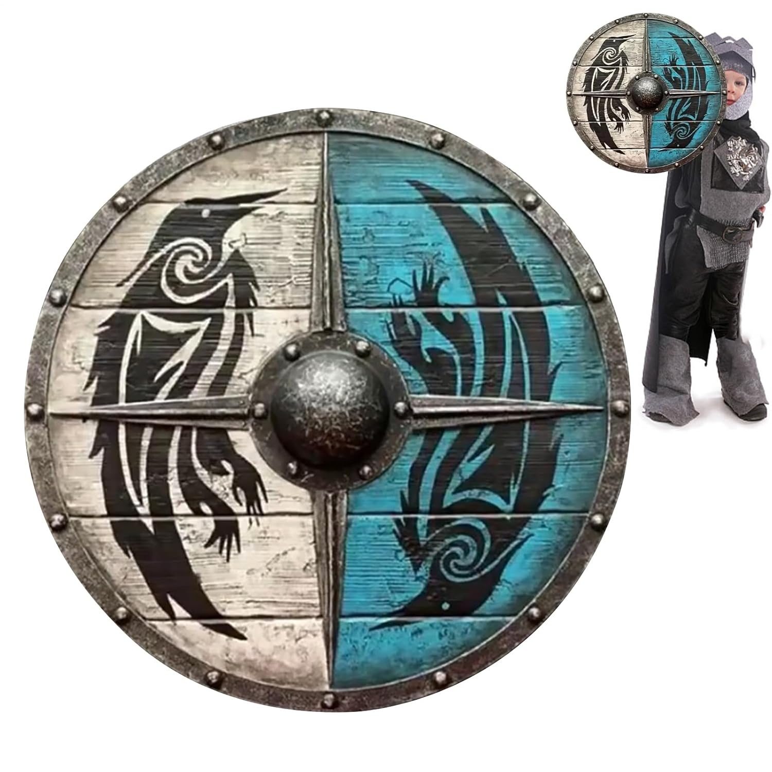 ➽Materiale di alta qualità: Viking Shield utilizza materiale di legno di alta qualità, fatto a mano, funzionale, molto confortevole e perfetto per l'uso quotidiano. ➽Facile da trasportare: lo scudo vichingo è leggero e ammortizzante, facile da trasportare e adatto ai ragazzi all'aperto, ad es. B. in giardini, prati, spiagge e cortili. ➽Decorazione unica: lo scudo medievale in legno è una decorazione murale unica, adatta a casa o in ufficio, attirerà immediatamente l'attenzione degli ospiti, una decorazione impressionante. ➽Ampia applicazione: lo scudo vichingo medievale aiuta a creare un'atmosfera distintiva, adatta per il posizionamento in casa, ufficio, nave o sala da pranzo. ➽Regalo decorativo: lo scudo medievale non è adatto solo per rievocazioni, cosplay, esposizione di abiti di alta qualità o come collezione, è anche il regalo di compleanno perfetto per uomini e ragazzi.