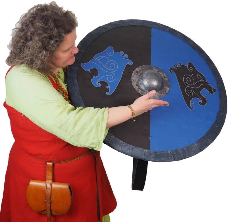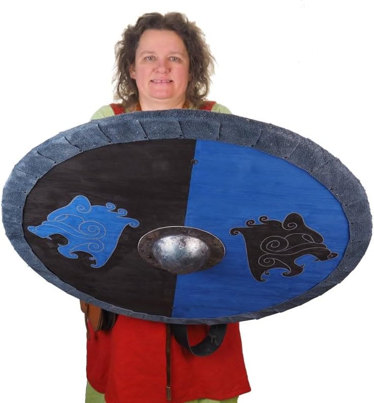 Scudo vichingo blu e nero teste di orso modello, scudo con cinghia, scudo Norsman, decorazione da parete, larp e rievocazione, SCA ready,, nero, 61 cm