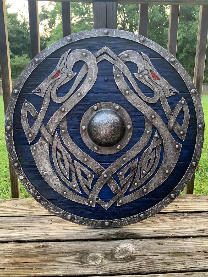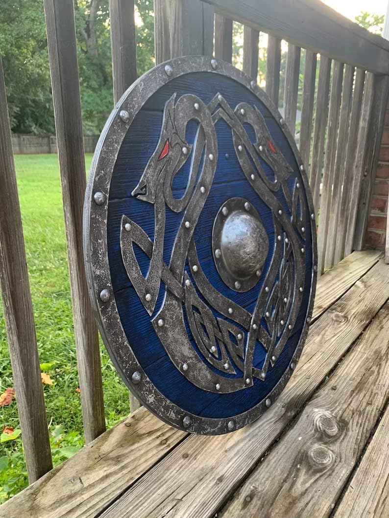 Realizzato in legno di pino e ferro. Dimensioni: 61 x 61 x 0,5 cm. Peso: 3,4 kg. Perfetto per vichinghi, Halloween, feste in costume, spettacoli teatrali, cosplay, ecc. Un grande regalo per i tuoi amici che amano vichinghi o LARP. Un accessorio essenziale per vichinghi, cavalieri medievali, gladiatori e altri giocatori di ruolo storici. Ideale per casa e ufficio decorativo Realizzato in legno resistente, leggero e facile da trasportare.