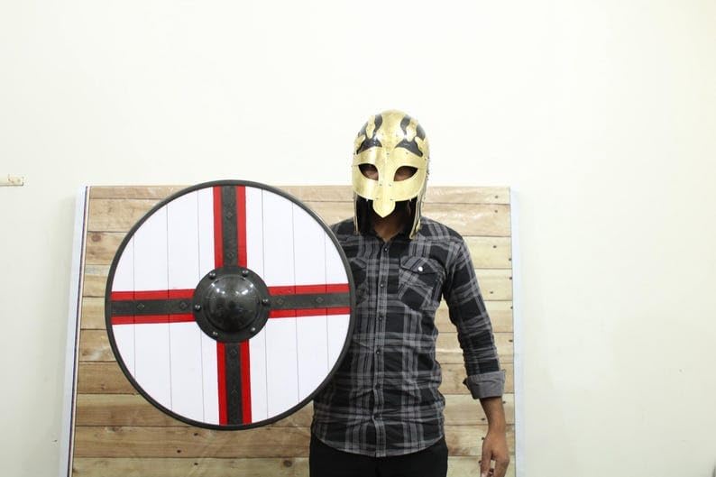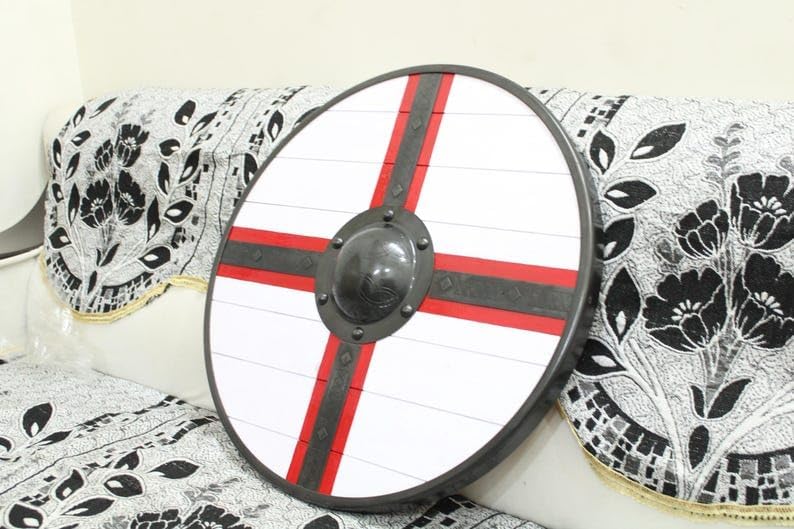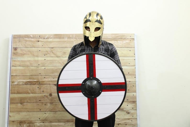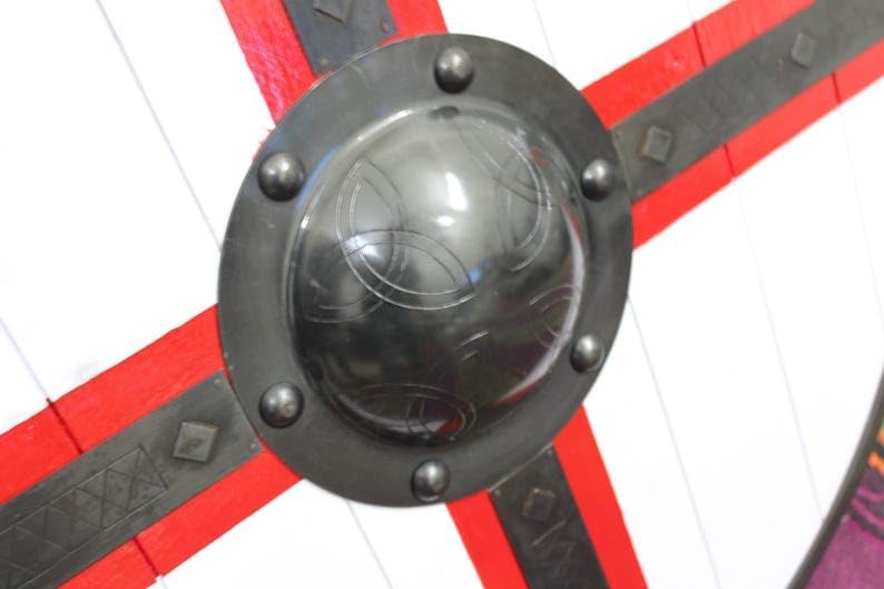 Immergiti nel mondo dei guerrieri vichinghi con questo scudo personalizzato fatto a mano. Realizzato con meticolosa attenzione ai dettagli, questo scudo in legno marrone è una vera opera d'arte. La sua costruzione robusta e il design autentico lo rendono perfetto per LARP, cosplay, decorazioni o anche come regalo unico di Halloween. Immagina di tenere questo scudo tra le mani, sentire il peso della storia e il brivido della battaglia. Che tu sia un appassionato di storia, un rievocatore medievale o semplicemente apprezzi la squisita fattura, questo scudo vichingo è un must. Migliora la tua collezione o porta un tocco autentico al tuo arredamento con questo pezzo eccezionale. Non perdere l'occasione di possedere un pezzo di eredità vichinga, realizzato a mano con passione e abilità.