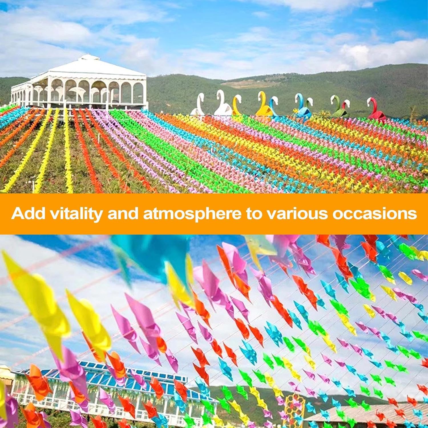 Bellezza Durevole:: Realizzato in robusto materiale PP, unisce resistenza e solidità per sopportare usura e agenti atmosferici, esibendo colori vivaci e antisfogo stagione dopo stagione senza sbiadire. Atmosfera Elegante:Crea un'atmosfera raffinata in giardino, sul patio o durante eventi speciali con il suo movimento grazioso e design senza , trasmettendo serenità e diventando un punto focale suggestivo in ogni scenario all'aperto. Design sospeso pratico: Progettato per installazione semplice e sospensione versatile su alberi, la rotazione a 360 gradi crea un effetto visivo sorprendente, unendo bellezza e funzionalità per abbellire il giardino senza complicazioni Decorazione Vivace: Il design colorato e l'effetto dinamico creativo di questo girello eolico aggiungono un'atmosfera vivace a qualsiasi giardino, attirando facilmente l'attenzione e valorizzando gli spazi esterni con il suo fascino allegro Colori Vivaci Attraenti: Il design accattivante a girandola unisce colori brillanti per abbellire spazi esterni, portando un tocco edificante di freschezza primaverile e rivitalizzando con facilità qualsiasi ambiente del giardino.