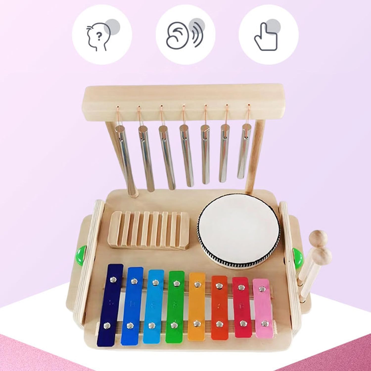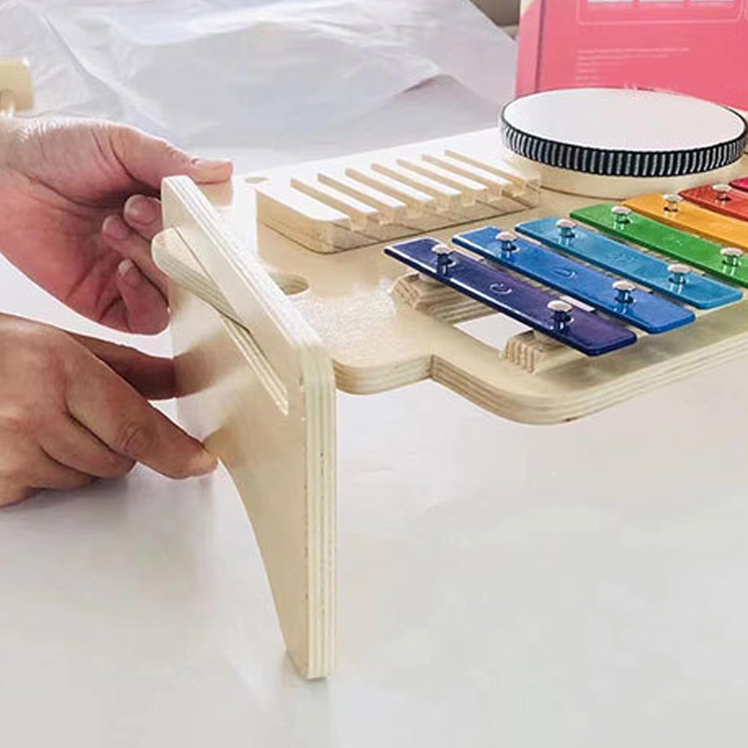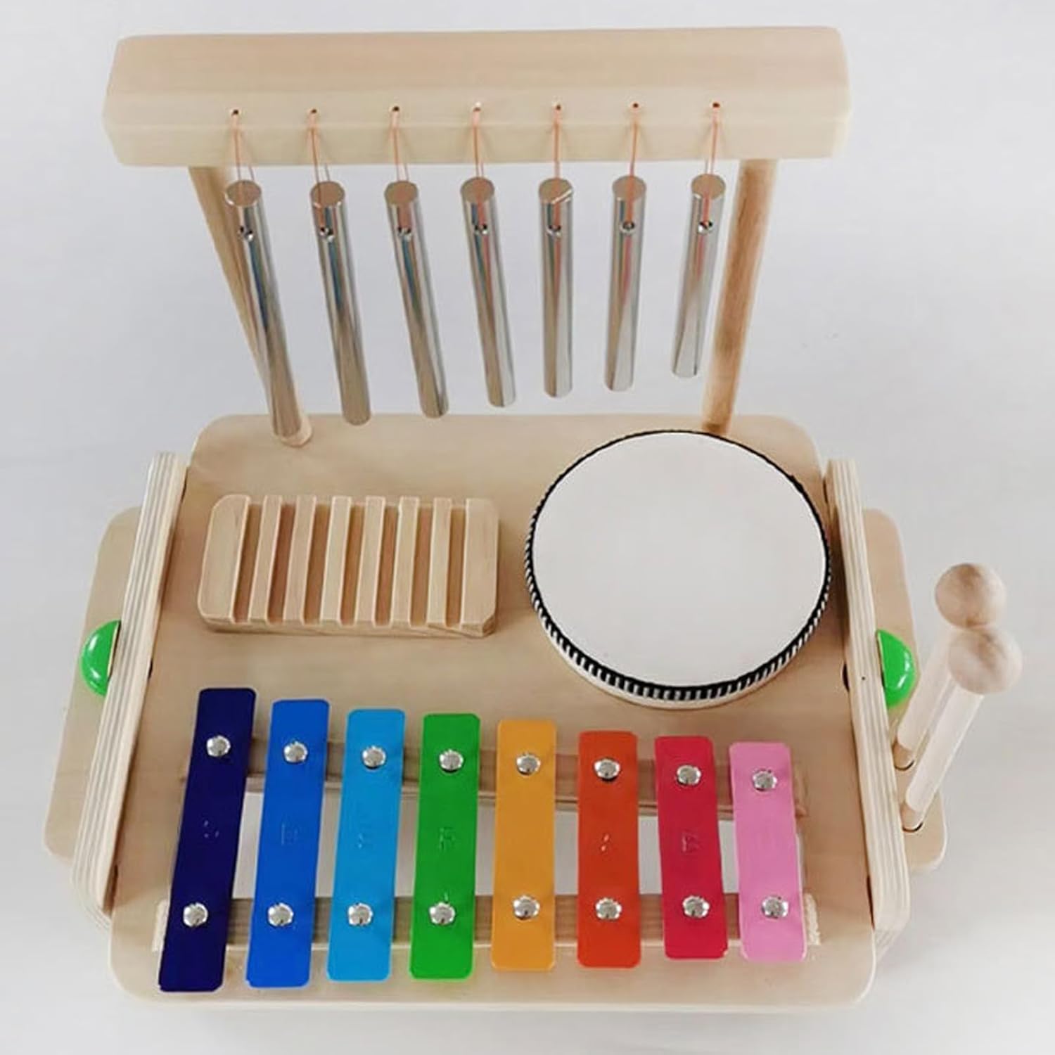 [Set di strumenti a percussione per bambini] Questo set di strumenti musicali desktop include uno xilofono, campanelli, tamburi e raschietto, che offre una gamma versatile di suoni e gioco interattivo. [Easy Assembly Design] L'intero set presenta un semplice design di inserto per un facile assemblaggio inserendo pioli di legno, consentendo una comoda installazione e smontaggio. [Costruzione in legno] Realizzato in legno premium, il set di batteria è progettato per la durata, con alta durezza e tenacità per resistere alla pressione dagli scioperi. I bordi finemente lucidati assicurano la sicurezza per le mani dei bambini. [Esplorazione musicale] Questo set musicale stimola nei bambini la sensibilità al tono e al ritmo, stuzzicando il loro interesse per la musica e migliorando le capacità di coordinazione occhio-mano, favorendo al contempo una forte relazione genitore-figlio attraverso il gioco interattivo. [Chiavi di xilofono di ottava] Lo xilofono in questo set presenta tasti sintonizzati di ottava, con ogni chiave corrispondente alle note designate da C a C, garantendo un'educazione musicale adeguata e una produzione standardizzata per un'esperienza di apprendimento per principianti.
