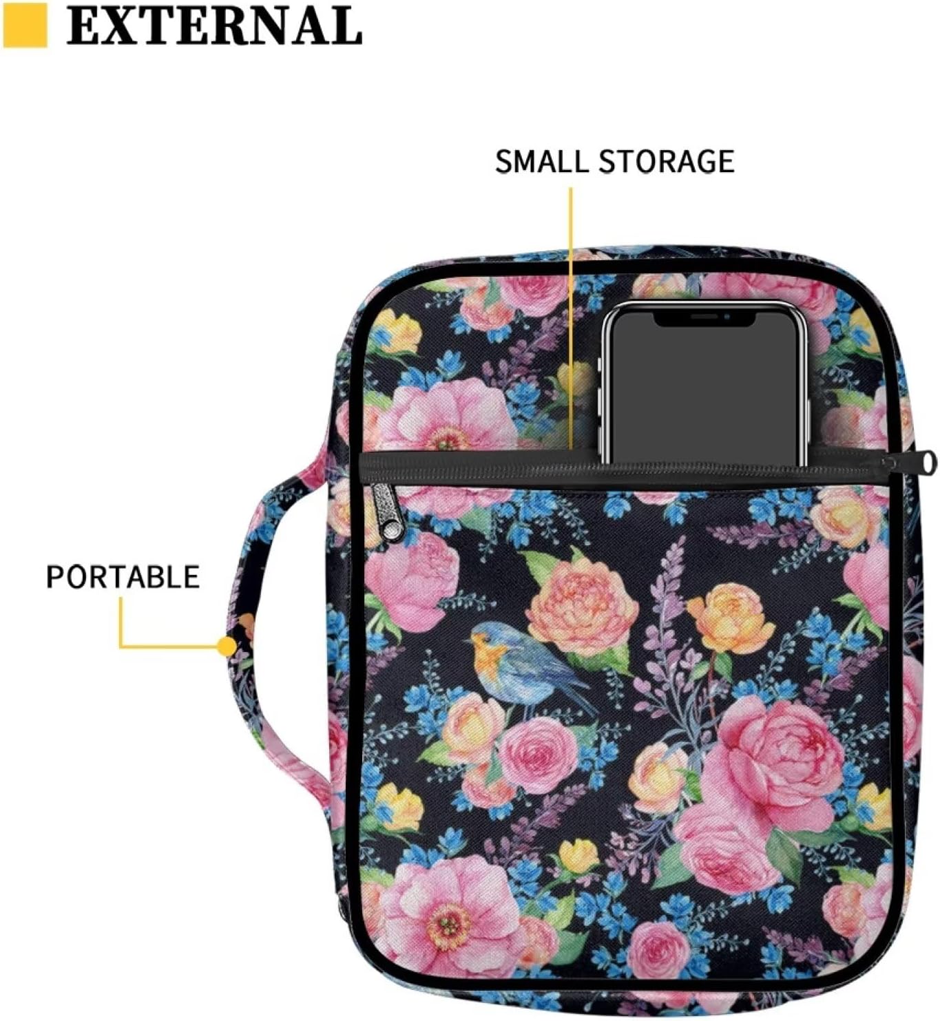 SEANATIVE Custodia per la Bibbia per donne e ragazze, con stampa di fiori e uccelli, borsa da trasporto con manico, leggera e grande borsa per le scritture