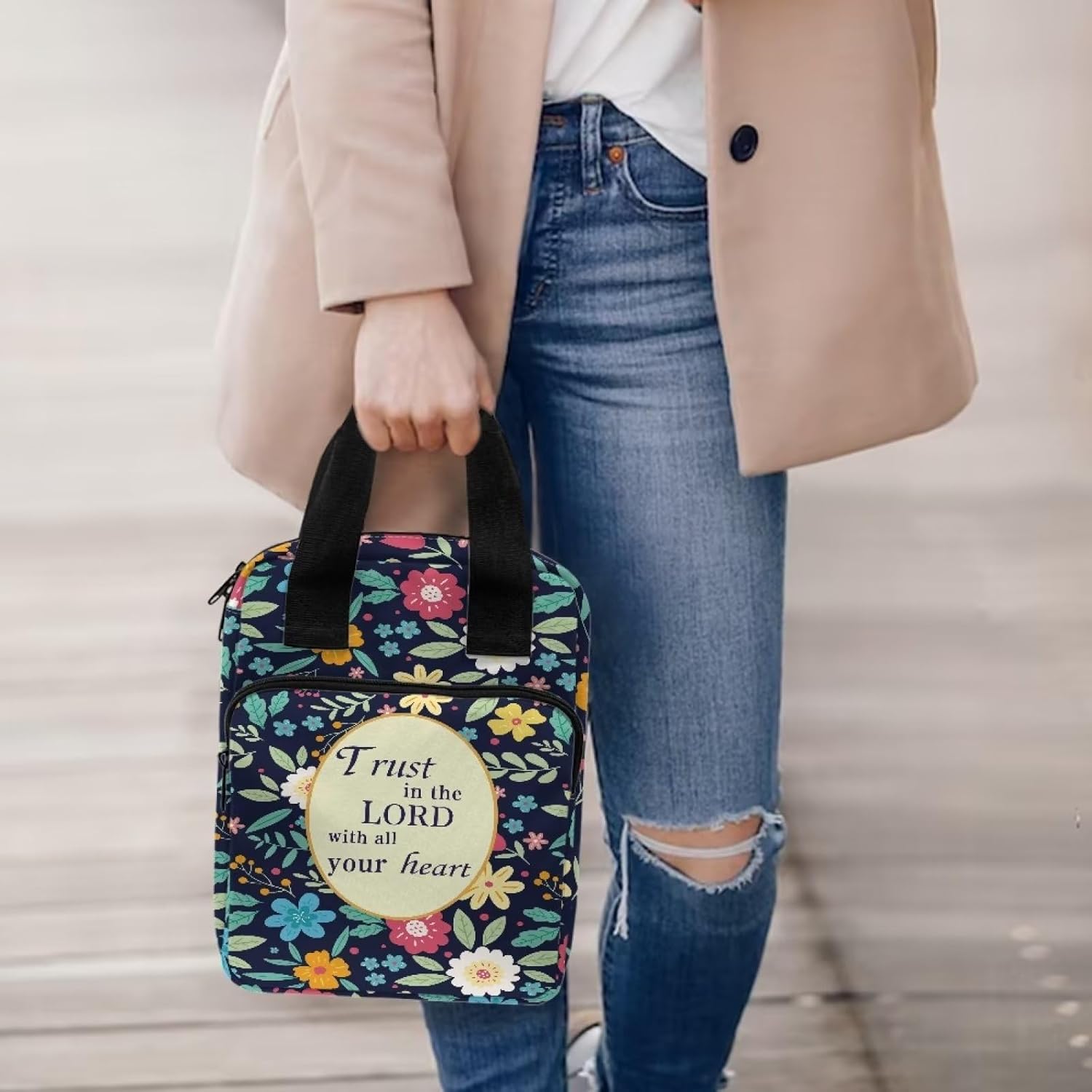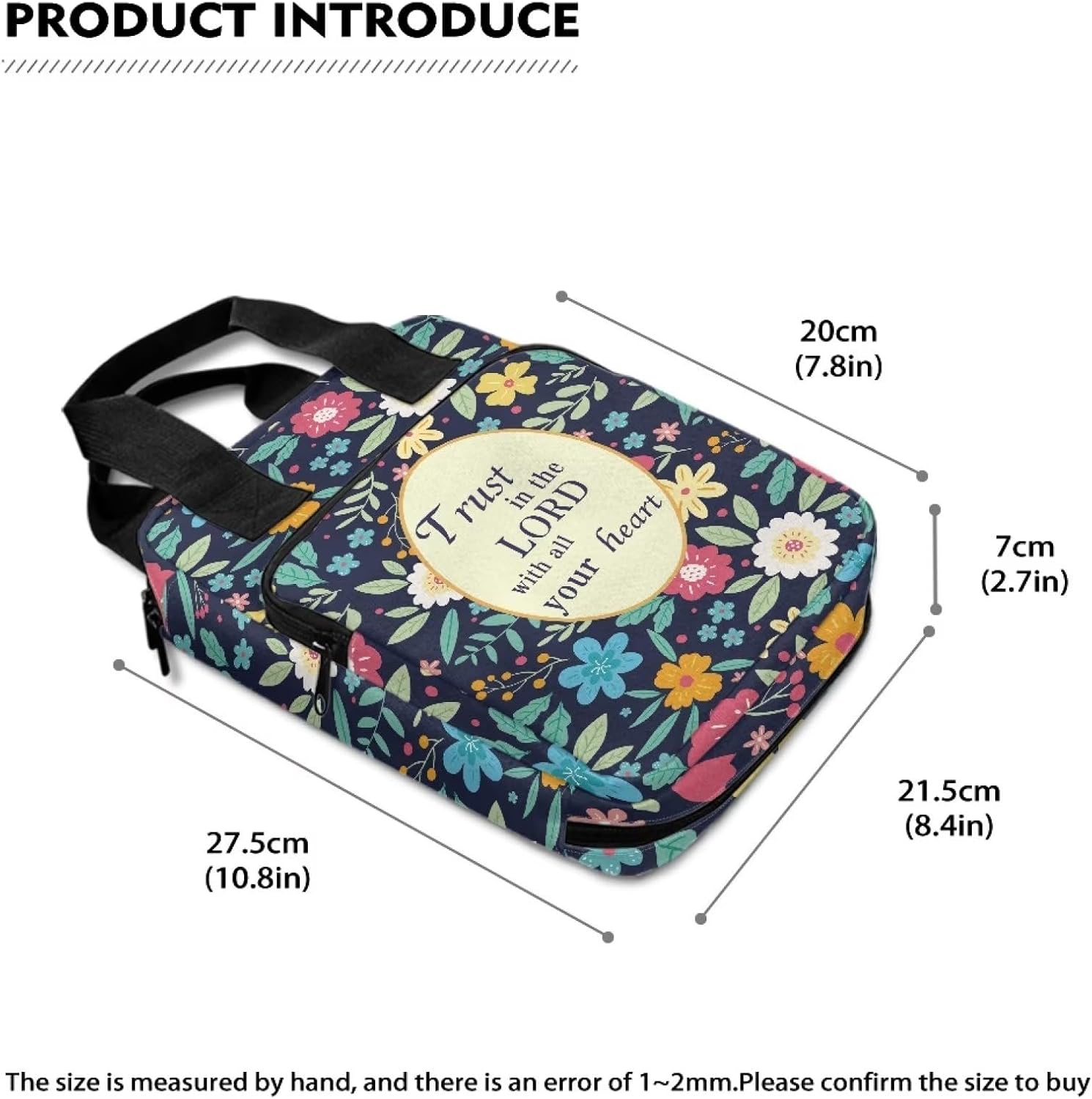 Materiale durevole: le coperture della Bibbia sono realizzate in poliestere di alta qualità e cerniera in metallo resistente. La tracolla sulla borsa della Bibbia lo rende facile da trasportare, questa copertura della Bibbia può proteggere la tua Bibbia da graffi. Un sacco di stoccaggio: 27,4 x 21,3 x 6,9 cm. La custodia della borsa della Bibbia presenta una tasca frontale con cerniera e più organizzazioni interne per contenere penne, segnalibri, biglietti di preghiera e quaderni, ecc. Avere i tuoi oggetti di studio sempre in un comodo bagaglio a mano per casa, chiesa o scuola. Portatile e leggero: questa Bibbia copre per donne e uomini, bambini. Puoi portarlo in chiese, scuole, biblioteche e sale studio in qualsiasi momento per il tuo studio biblico, culto o pellegrinaggio. Multifunzione: questa custodia per il trasporto della Bibbia può essere utilizzata come borsa, custodia per tablet, valigetta, borsa per la Bibbia, borsa per il trucco, copertina per libri, libreria per studio biblico, ecc. Regalo perfetto: il motivo unico aggiunge un tocco di un regalo elegante e divertente per compleanno, festa della mamma, Pasqua, Natale o qualsiasi altra occasione speciale per i tuoi figli, madre e sorelle, amici, amanti della famiglia e te stesso.
