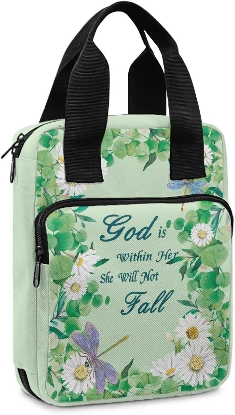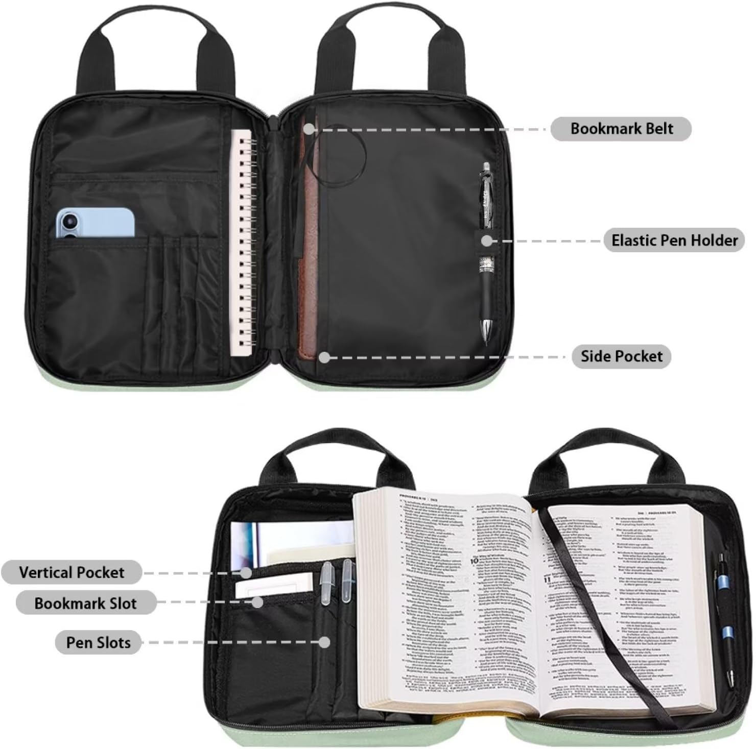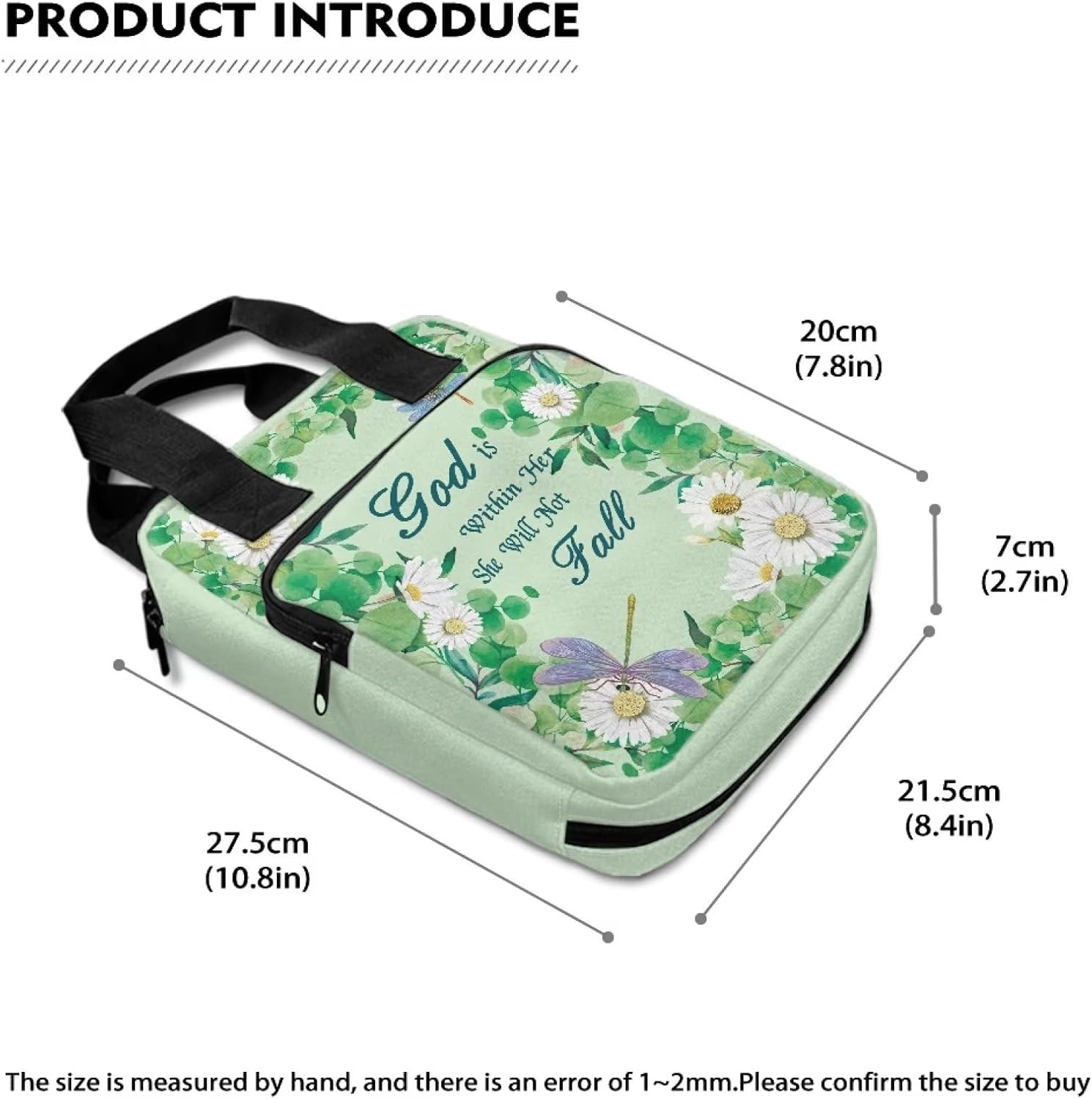 Materiale durevole: le coperture della Bibbia sono realizzate in poliestere di alta qualità e cerniera in metallo resistente. La tracolla sulla borsa della Bibbia lo rende facile da trasportare, questa copertura della Bibbia può proteggere la tua Bibbia da graffi. Un sacco di stoccaggio: 27,4 x 21,3 x 6,9 cm. La custodia della borsa della Bibbia presenta una tasca frontale con cerniera e più organizzazioni interne per contenere penne, segnalibri, biglietti di preghiera e quaderni, ecc. Avere i tuoi oggetti di studio sempre in un comodo bagaglio a mano per casa, chiesa o scuola. Portatile e leggero: questa Bibbia copre per donne e uomini, bambini. Puoi portarlo in chiese, scuole, biblioteche e sale studio in qualsiasi momento per il tuo studio biblico, culto o pellegrinaggio. Multifunzione: questa custodia per il trasporto della Bibbia può essere utilizzata come borsa, custodia per tablet, valigetta, borsa per la Bibbia, borsa per il trucco, copertina per libri, libreria per studio biblico, ecc. Regalo perfetto: il motivo unico aggiunge un tocco di un regalo elegante e divertente per compleanno, festa della mamma, Pasqua, Natale o qualsiasi altra occasione speciale per i tuoi figli, madre e sorelle, amici, amanti della famiglia e te stesso.