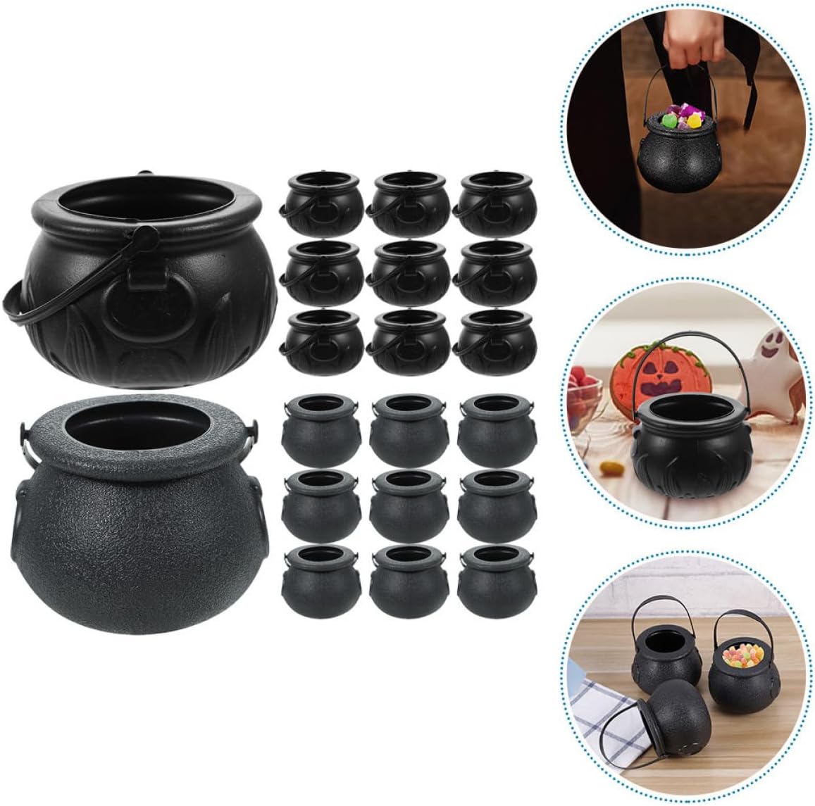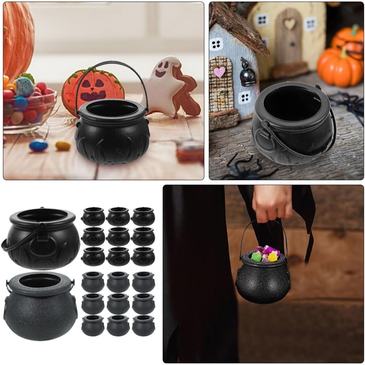 Contenitori per caramelle: sicuri e comodi da usare, non facili da rompere o deformare, riutilizzabili e utilizzabili a lungo. Cesto regalo di Halloween Multiuso: può essere utilizzato non solo per conservare caramelle, ma anche piccole caramelle, giocattoli, ecc., aggiungendo più divertente cestino per caramelle, piccolo secchiello per caramelle Essenziale per Halloween: questi secchi per caramelle sono l'aggiunta a qualsiasi celebrazione di Halloween, secchiello a mano per Halloween, barattoli di caramelle nere per streghe Decorazione della stanza di Halloween - Ampiamente usato per le feste di Halloween, come oggetti di scena per spettacoli, compleanni e altre occasioni speciali, cestino per caramelle per feste a secchiello piccolo - con manici, molto comodo e portatile, adatto per raccogliere caramelle ad Halloween, secchiello per feste di Halloween
