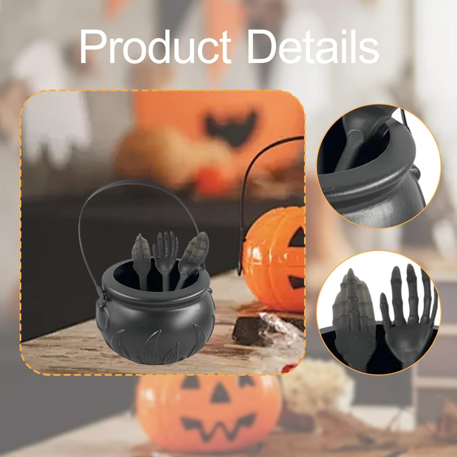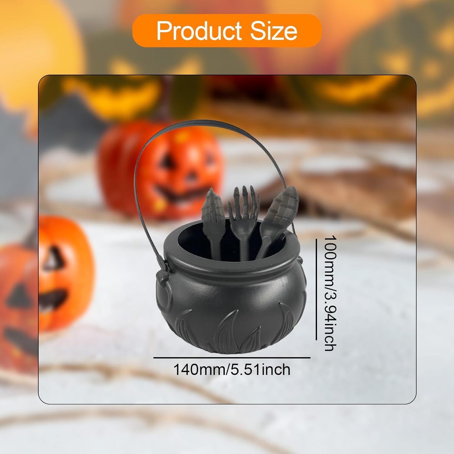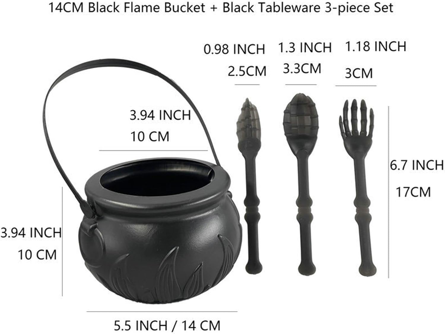 【Set di stoviglie per Halloween spettrale】: Include un secchio e un set di utensili da 3 pezzi, ideali per aggiungere un tocco spettrale alla tua festa di Halloween 【Materiale plastico】: La struttura leggera ma robusta del mini calderone di Halloween sospeso garantisce una manipolazione sicura e un divertimento riutilizzabile per più stagioni di Halloween piatto di caramelle funzionale e una decorazione giocosa, un divertente regalo di Natale per amici o familiari,Design compatto e portatile: mini porta caramelle di Halloween con una comoda maniglia per un facile trasporto a feste o eventi all'aperto