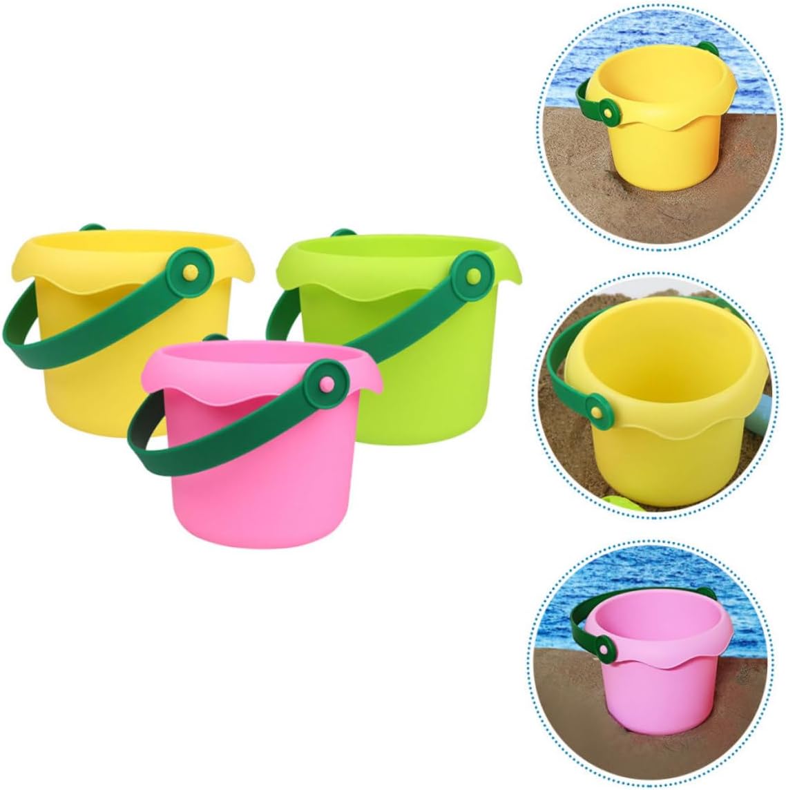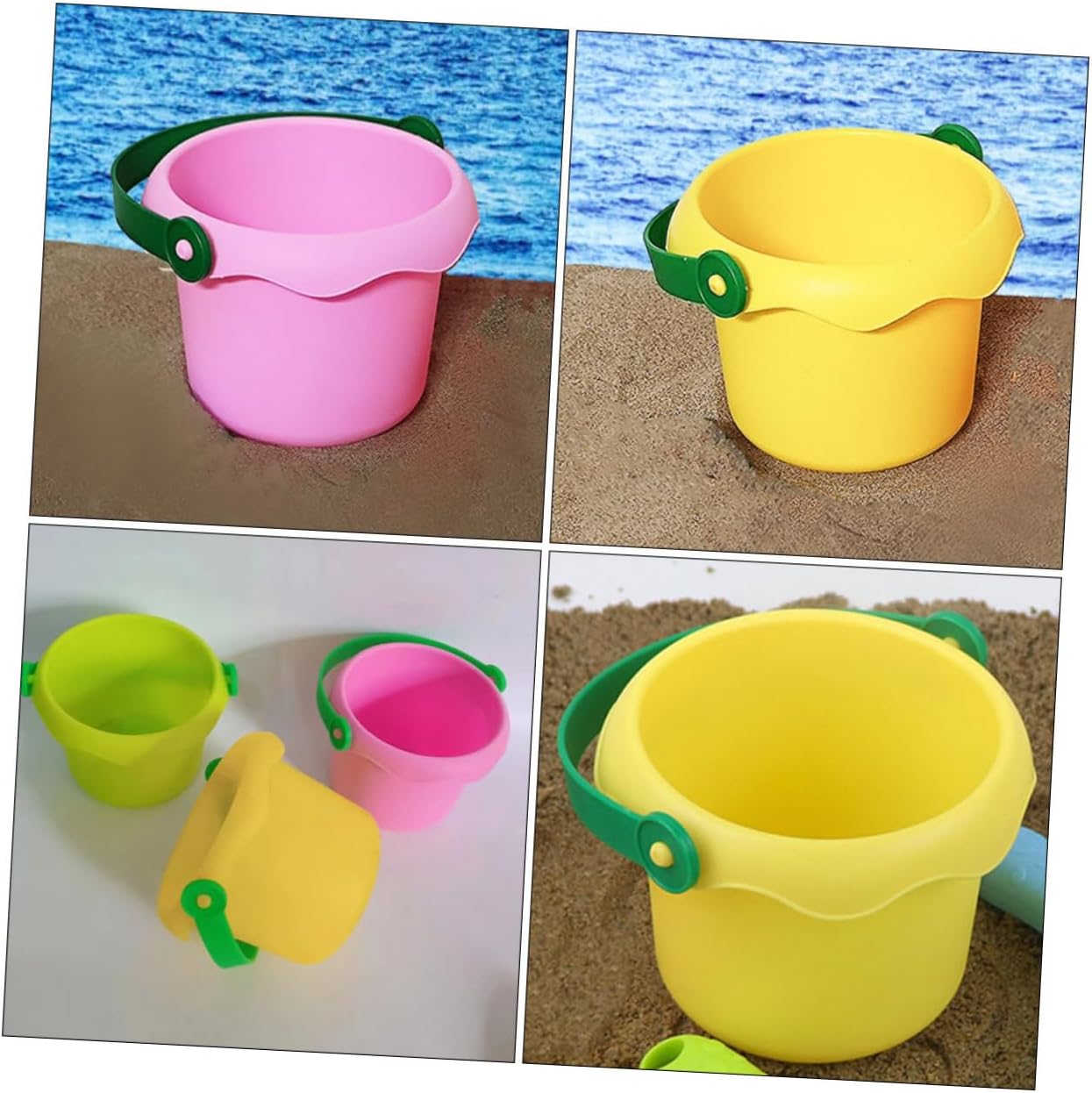 Secchio per la sabbia: questo oggetto versatile può essere utilizzato come secchio per la sabbia, secchio da spiaggia, secchio per vernice e secchio per lavare i pennarelli. Secchio per l'acqua: l'impugnatura dal design ergonomico riduce l'affaticamento della mano e del polso durante il diserbo o lo scavo, secchio di plastica. Giochi con la sabbia per esterni: il design accattivante piace a persone di tutte le età, rendendolo una scelta popolare per le attività familiari. Piccoli secchi per la sabbia in plastica: il design speciale migliora l'attrito e rende più facile per le persone strofinare i propri giocattoli e altri oggetti. Secchio colorato per sabbia per bambini: il materiale è sicuro e leggero, resistente all'usura e pratico per un uso duraturo. piccolo secchiello per la sabbia