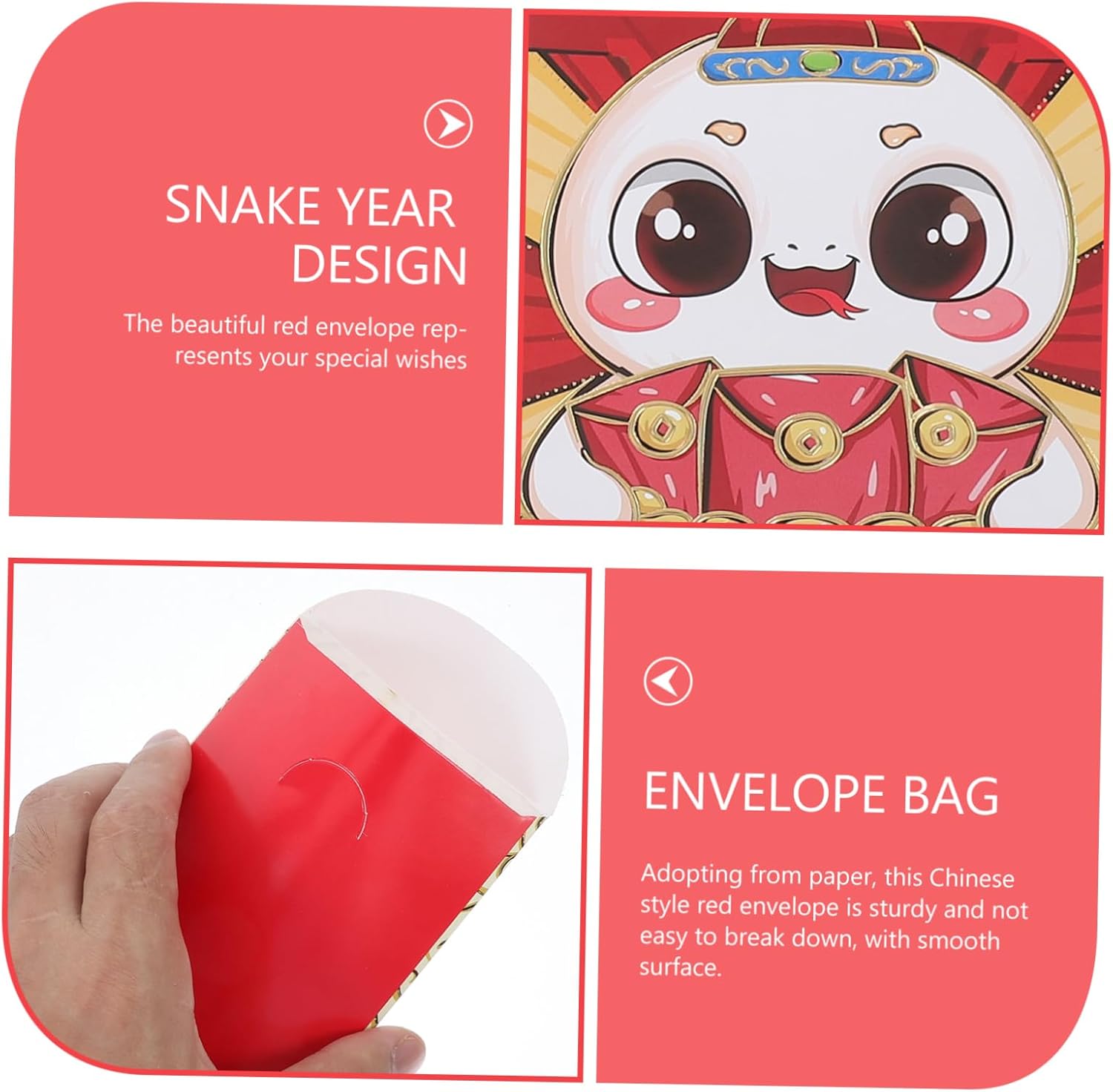 Design distintivo del serpente: le buste rosse 2025 presentano un design distintivo del serpente, che le rende una scelta unica e festosa per il anno. Migliora le celebrazioni: questi pacchetti rossi sono perfetti per aggiungere un tocco di festa alle celebrazioni del anno, rendendole più memorabili. Capacità generosa: progettate per contenere una notevole quantità di denaro, queste buste sono perfette per fare regali generosi. Comodo da trasportare: il design pratico di queste buste le rende facili da trasportare e distribuire tra i tuoi cari. Versatili per tutte le occasioni: ideali per il Capodanno cinese, i matrimoni e altre celebrazioni, queste buste sono un modo versatile per condividere le tue benedizioni.