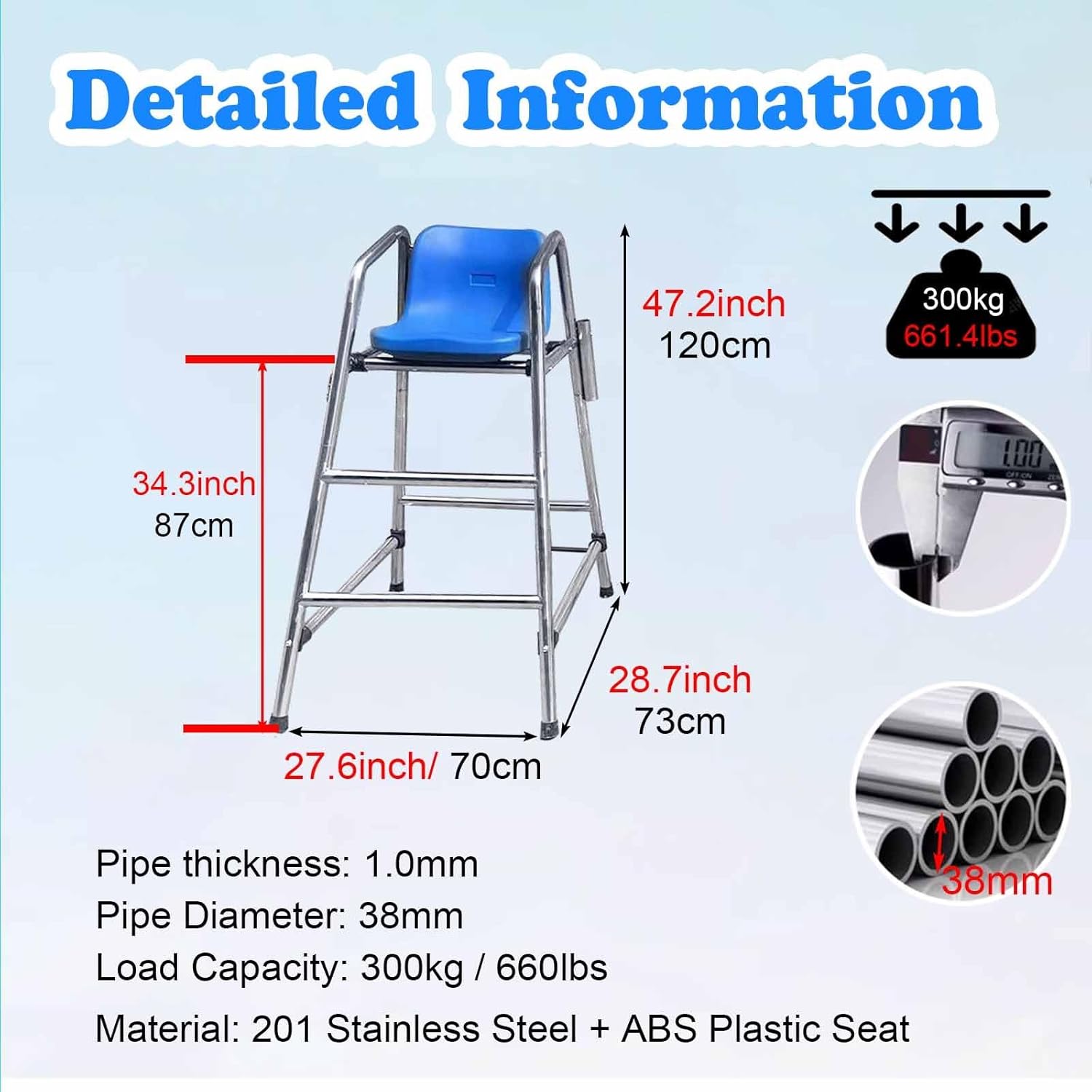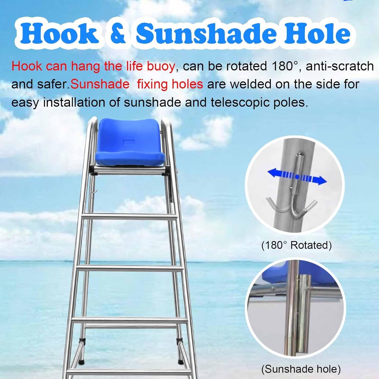 Migliora la tua esperienza all'aperto con il nostro innovativo parasole dotato di fori di fissaggio saldati per un'installazione senza sforzo di ombrelloni e pali telescopici. Servizio:Attribuiamo grande importanza all'esperienza di acquisto dei nostri clienti. Se hai domande, non esitare a contattarci, ti risponderemo il prima possibile entro 24 ore Facile da montare: questa sedia da bagnino è caratterizzata da un design intuitivo che consente un montaggio rapido. Con istruzioni semplici e accessori inclusi, un adulto può installarlo in soli 20 minuti. Migliora la sicurezza con le nostre protezioni per i piedi delle sedie da bagnino, progettate per prevenire scivolamenti e graffi sul pavimento. Dotato di un tubo di supporto posteriore aggiuntivo Sedie da bagnino per piscina 201 in acciaio inossidabile: Costruita in resistente acciaio inossidabile 201 con una parete spessa 1,0 mm, questa sedia da bagnino è dotata di una robusta scala di 38 mm di diametro