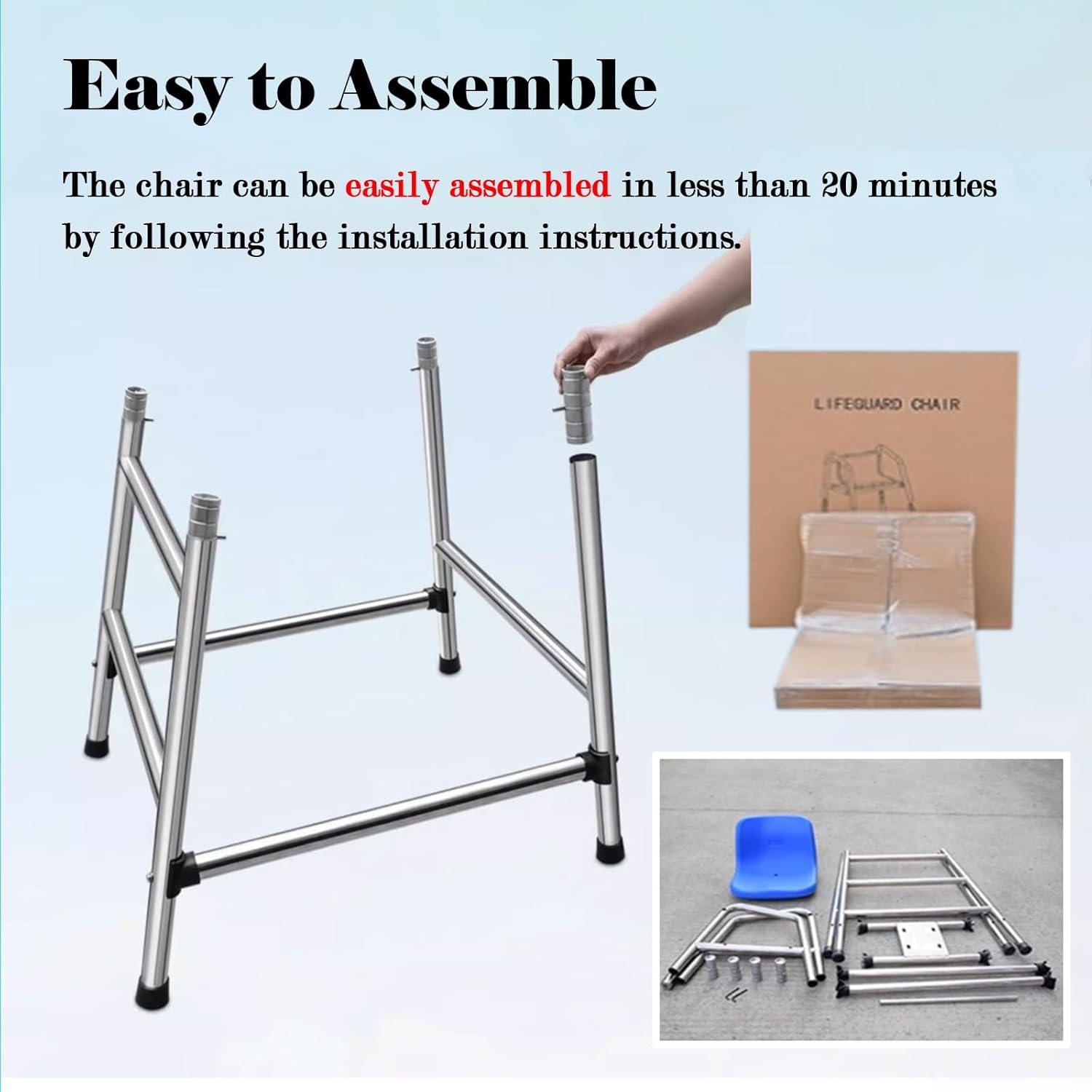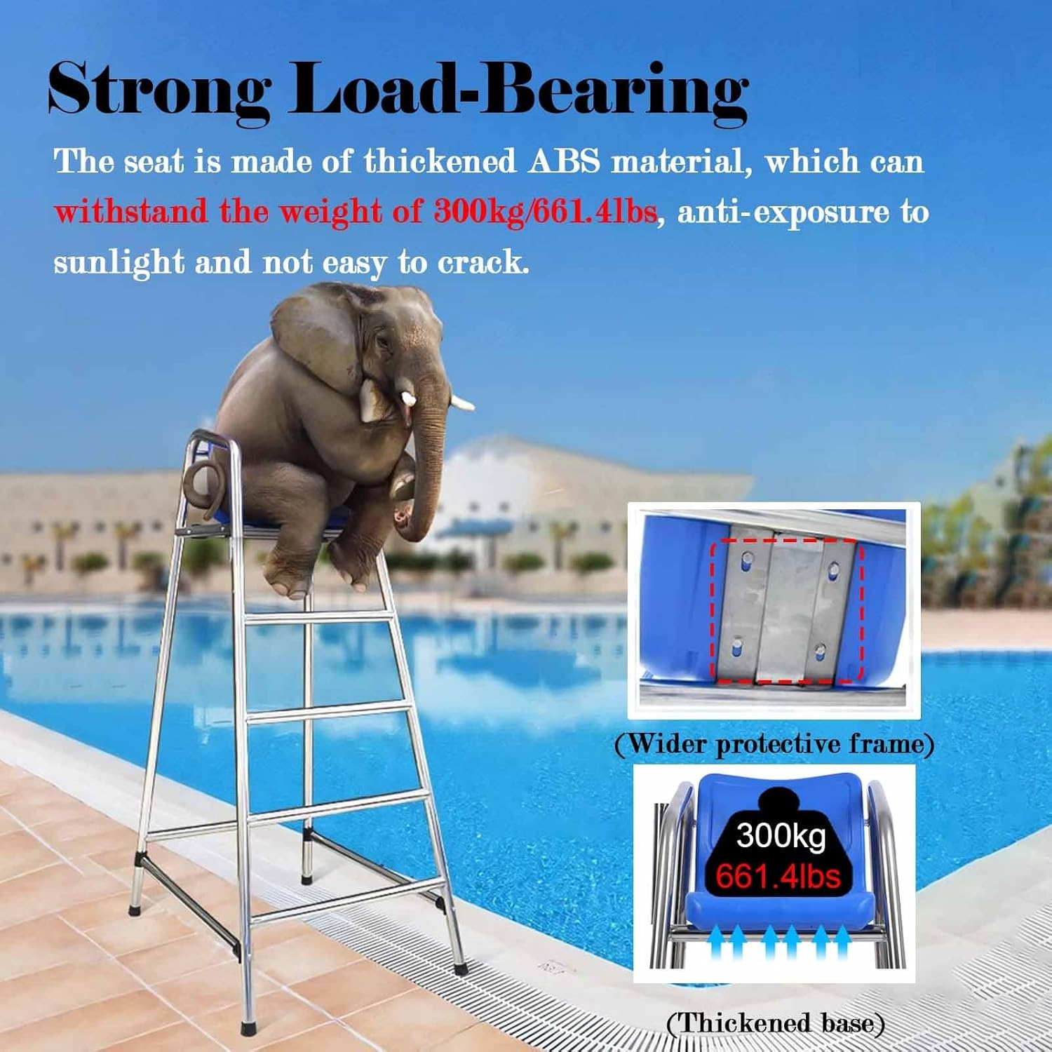 【Sicurezza】 Le protezioni per i piedi della sedia Lifeguard impediscono lo scivolamento e i graffi dei pavimenti. Un ulteriore tubo di supporto posteriore è stato aggiunto allo schienale della sedia per aumentare la stabilità e la sicurezza dei soccorritori. 【Acciaio inossidabile 304】 Il corpo della scala è realizzato in acciaio inossidabile 304, spessore della parete più spesso di 1,0 mm, il tubo in acciaio è ispessito a 38 mm, che può evitare la corrosione della disinfezione con cloro della piscina ed è resistente alle alte temperature e al sole. 【Gancio salvagente e foro per parasole】 I fori di fissaggio del parasole sono saldati sul lato per una facile installazione di parasole e pali telescopici. Progettato con ganci sul telaio di supporto posteriore, ruotabili di 180°, antigraffio e più sicuri. 【Facile da montare】 Questa sedia da bagnino è semplicissima da montare e utilizzare grazie al suo design semplice e agli accessori inclusi. La sedia può essere facilmente montata in 20 minuti da 1 adulto seguendo le nostre istruzioni. Molteplici applicazioni: adatto per la maggior parte delle piscine coperte all'aperto, parchi acquatici, bordo piscina, terrazza, patio, lago, spiaggia, scuola, piscina da competizione standard, cortile con giardino, anche per banchine, pontoni, centri commerciali, stazioni, metropolitane.