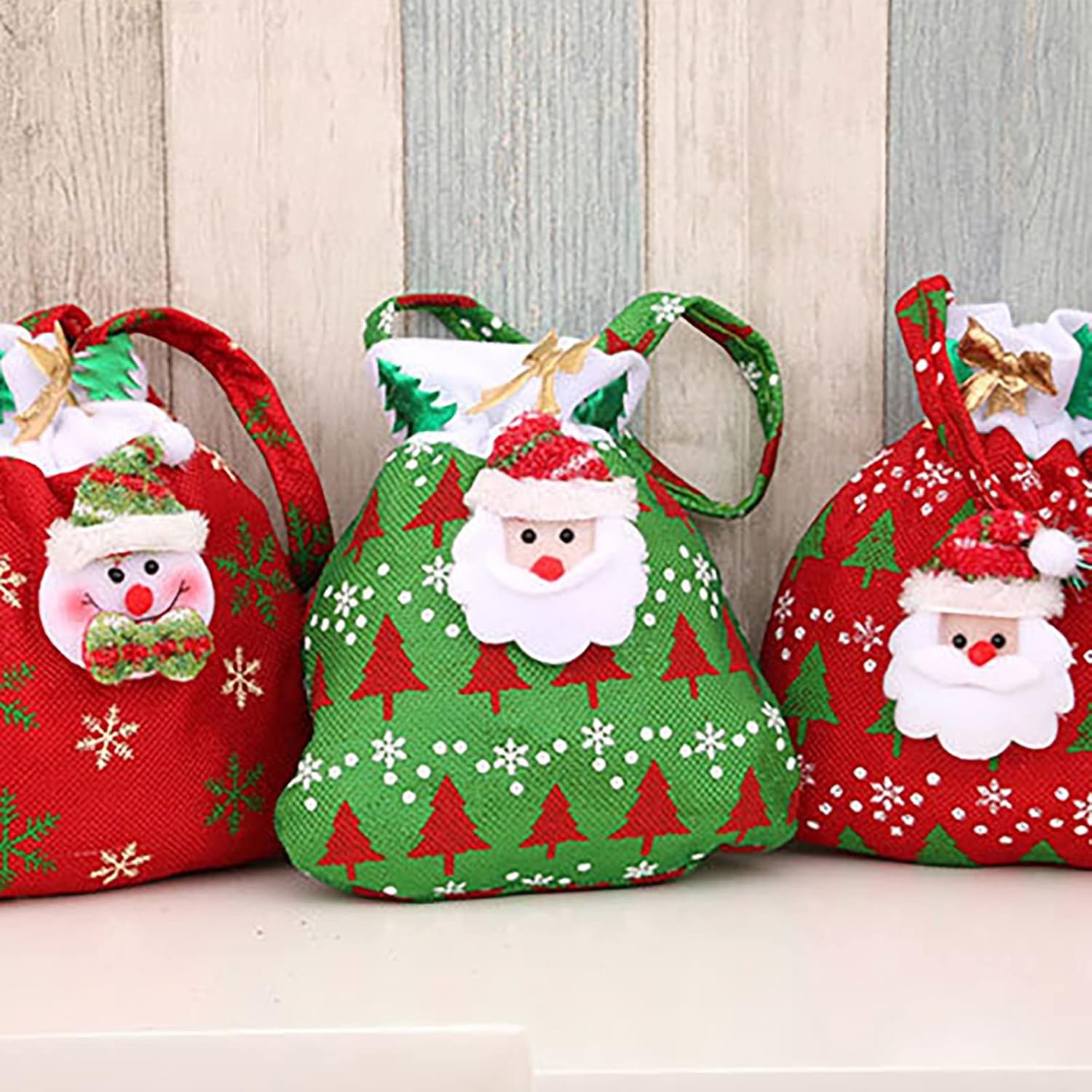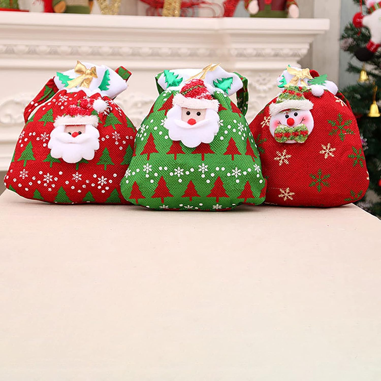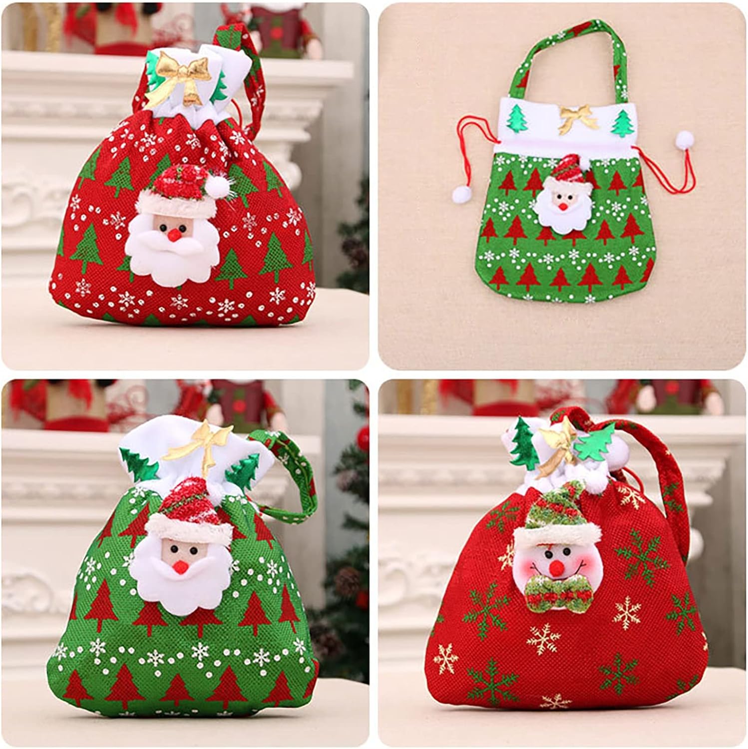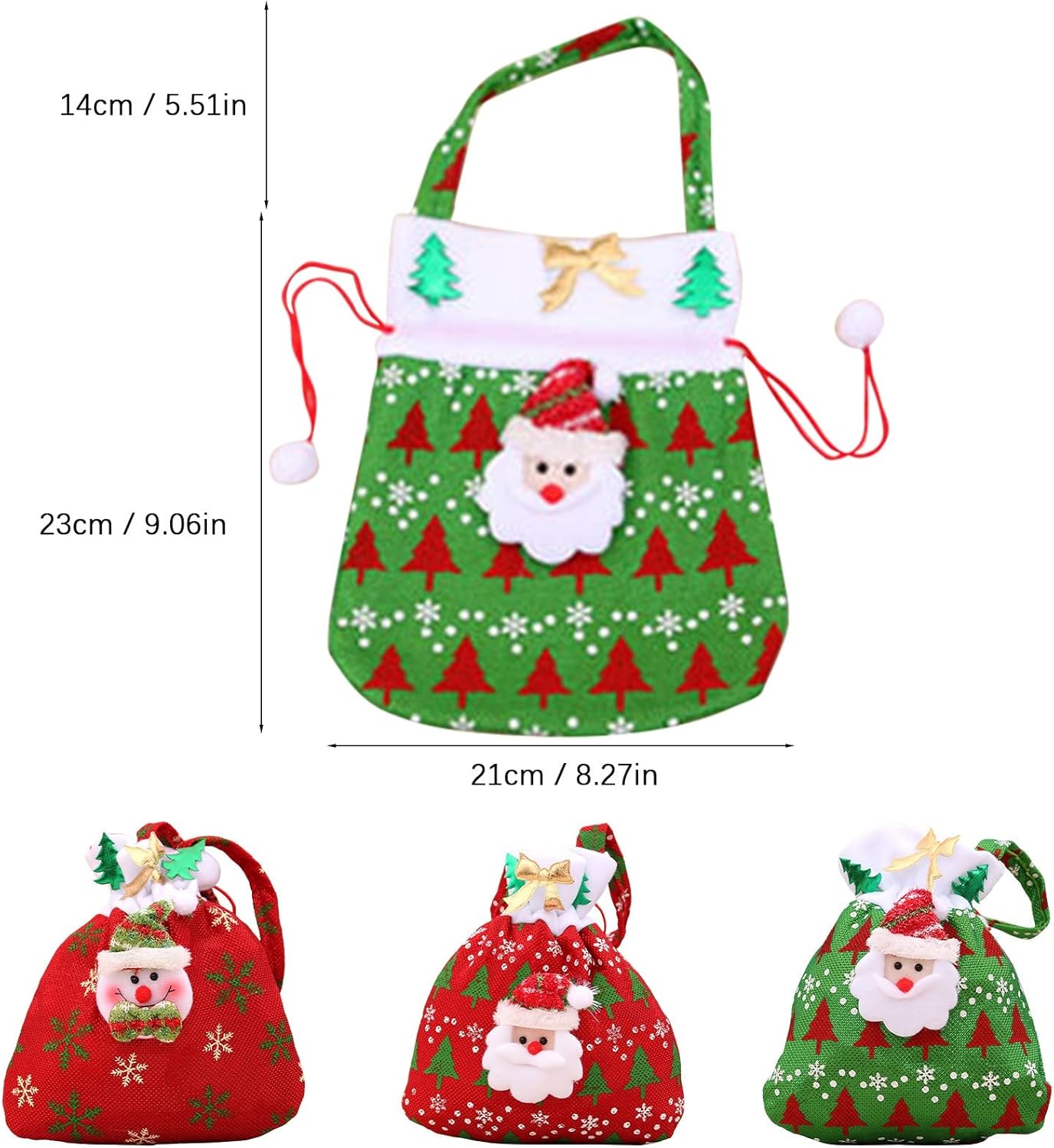 Il materiale è relativamente forte, non sarà facile, la corda non si rompe ed è molto forte. Non fragile. Queste adorabili borse sono realizzate in tessuto di alta qualità, quindi sono morbide, resistenti e riutilizzabili. Design a corda da disegno è molto adatto per riporre, estrarre oggetti o appenderli all'albero di Natale come decorazioni. Ci sono 3 graziosi sacchetti per caramelle tra cui scegliere per soddisfare le tue diverse esigenze. Queste borse sono state un successo a Natale! Sono super carini e sembrano grandi sotto l'albero. Abbiamo salvato tutti da usare l'anno prossimo. Ai bambini sono piaciuti particolarmente. Questi sacchetti riutilizzabili sono davvero adorabili e così ben fatti. Super carino per piccoli giocattoli e caramelle. Si può riutilizzare ogni anno e anche un bel regalo per i bambini. Stanno andando a loro!