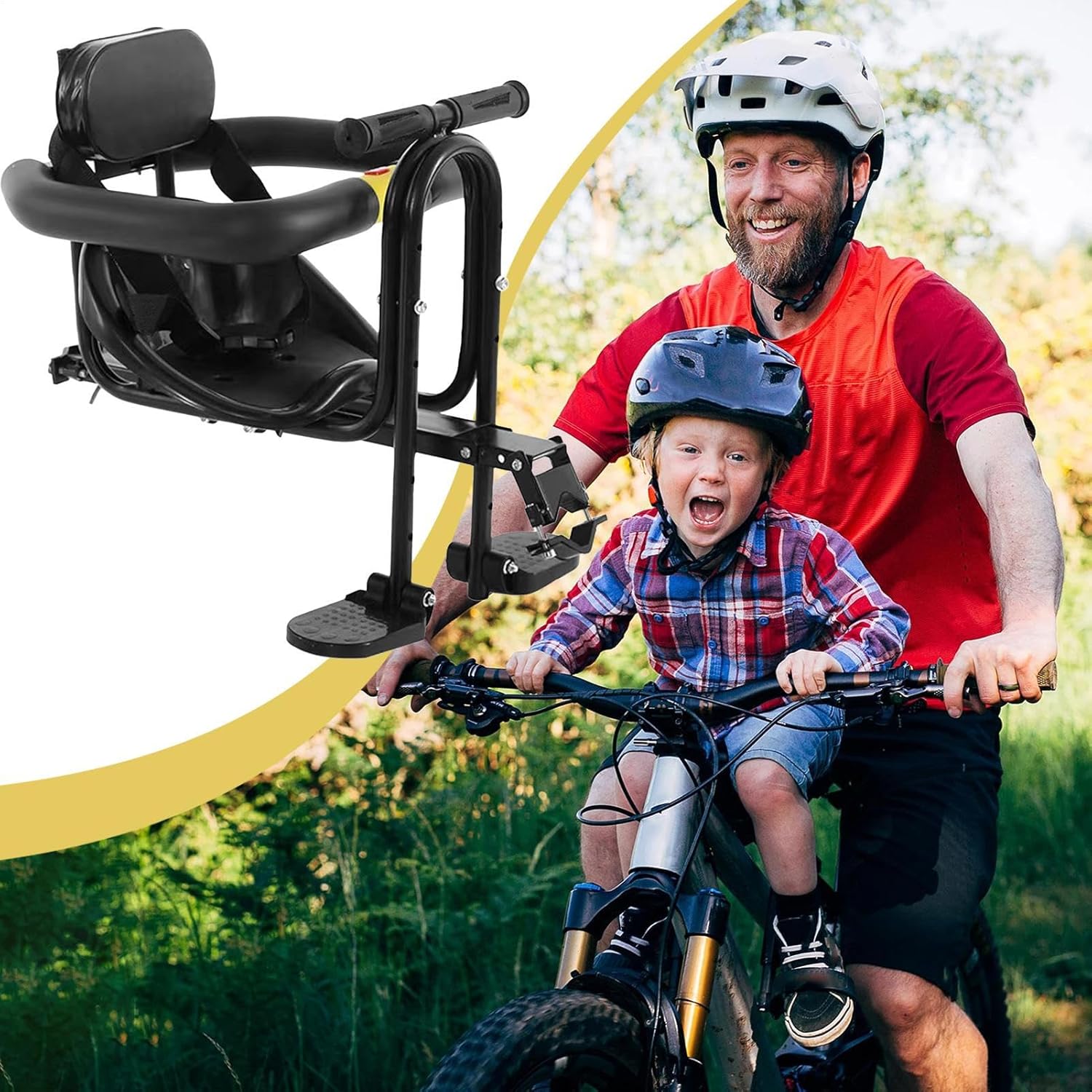 Accogliente sedile ciclistico: non sentirsi a disagio e meglio supportato in famiglia con il sedile ciclistico del nostro sedile per bambini. Goditi un comodo e senza problemi. Semplice da usare: lascia che i tuoi bambini si uniscano al divertimento con i nostri bambini in bicicletta. Adatto ai giovani cavalieri di età compresa tra 2-5, goditi un comodo e sicuro con un poggiapiedi integrato. Non c'è bisogno di sudare l'installazione: è un gioco da ragazzi. Sicurezza avanzata: regola perfettamente qualsiasi ciclismo in montagna con il nostro design multifunzionale e viti a 4 buche per un sicuro, anche su terreni accidentati, grazie alla nostra funzione di montaggio a più angolo. Applicazione variabile: porta tuo figlio in un emozionante in ciclismo in montagna con i nostri bambini in bicicletta. Il prodotto è adatto per il ciclismo in montagna, il del nemico ideale con una traversa nella parte anteriore o superiore, incoraggiando il divertimento della famiglia e creando innumerevoli ricordi. Costruzione rimovibile: goditi un facile ciclismo e viaggia con questo sedile ciclistico pieghevole e staccabile. Il suo design a misura di viaggio garantisce un trasporto senza sforzo e un'occupazione spaziale minima quando non è in uso, rendendola la soluzione portatile perfetta per le tue avventure.
