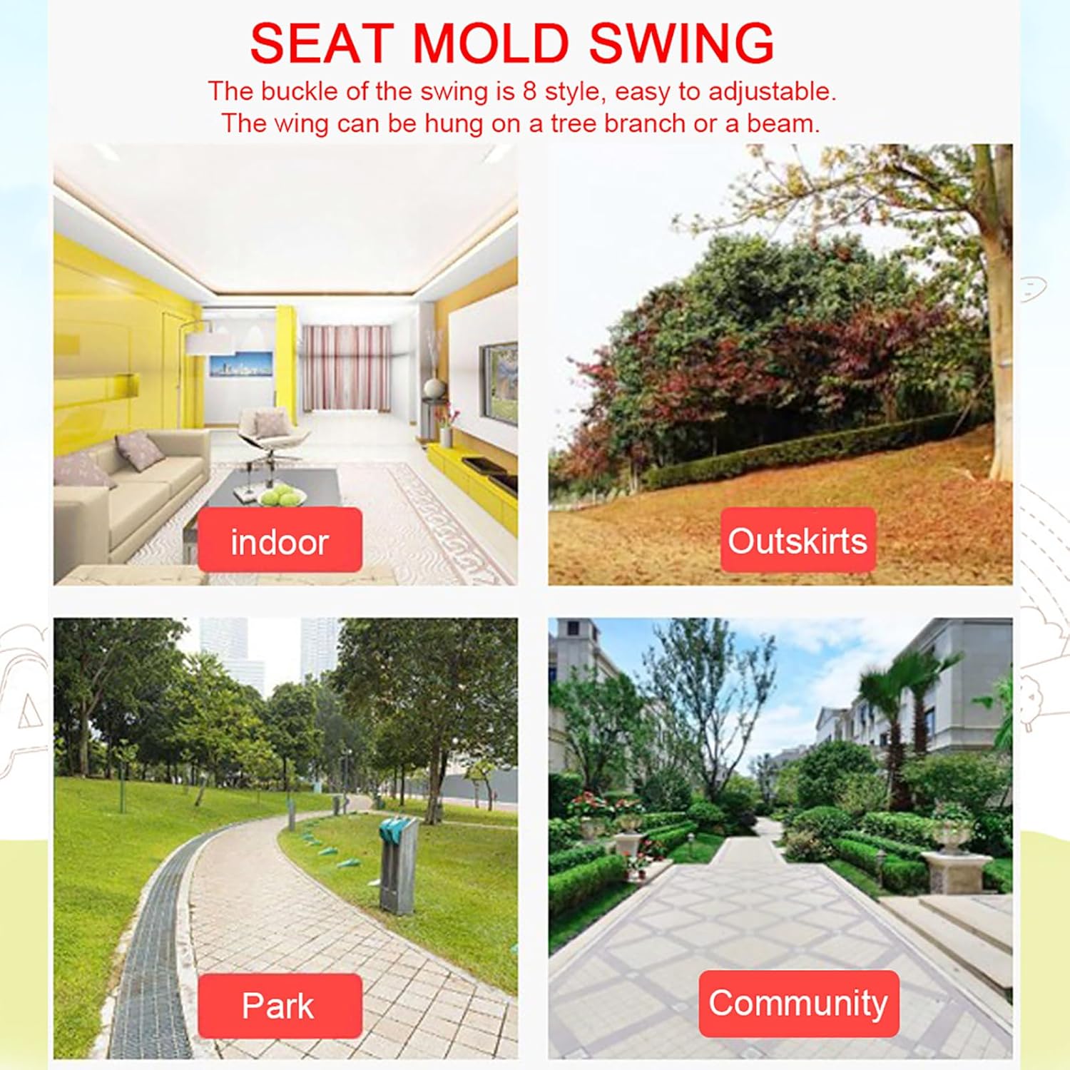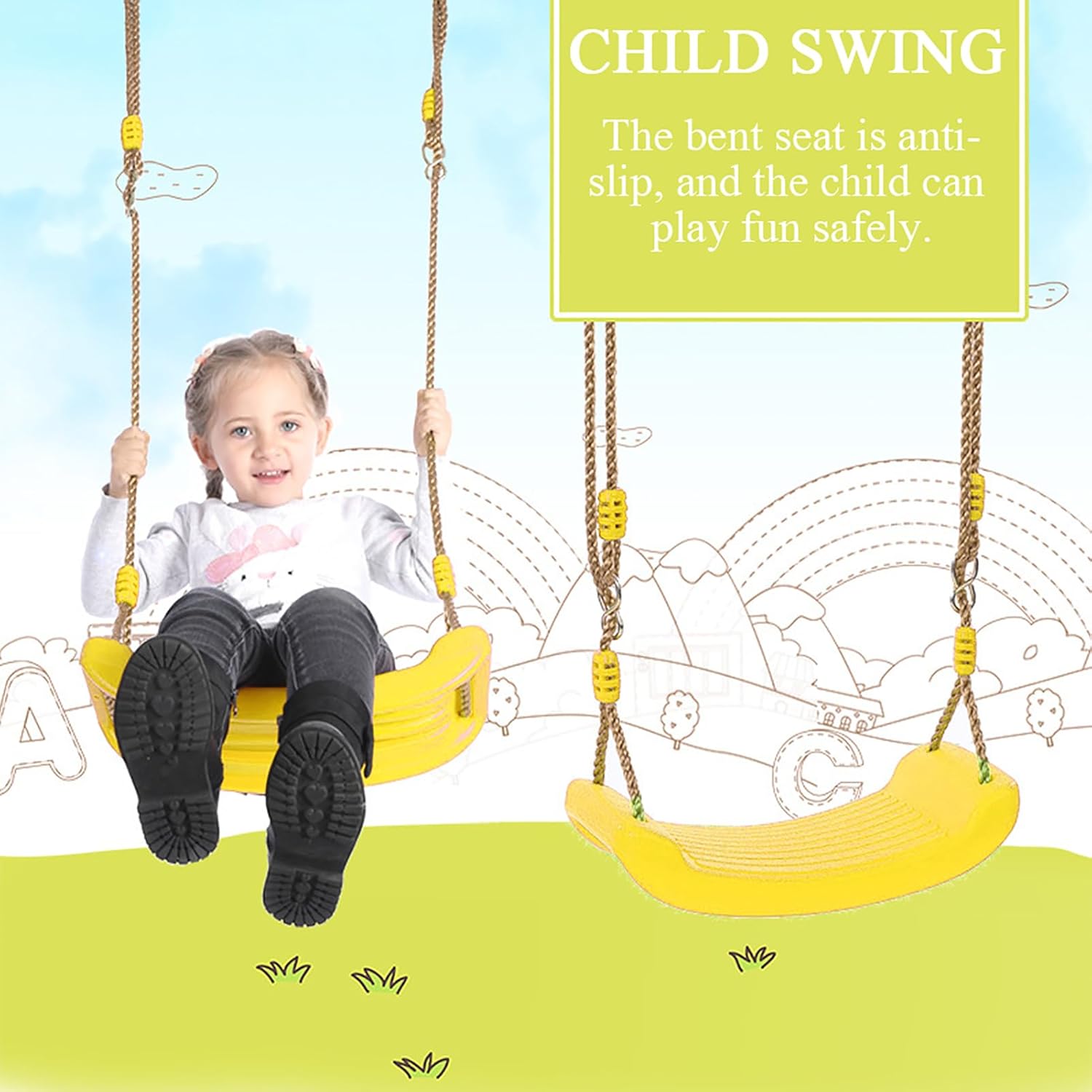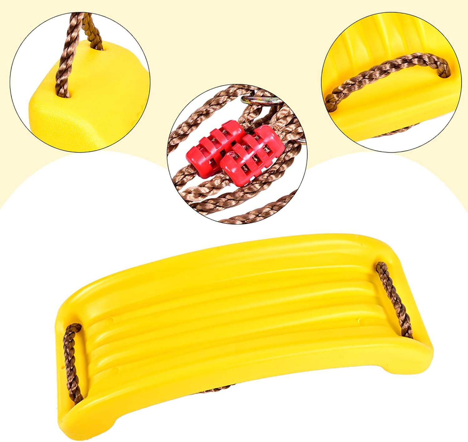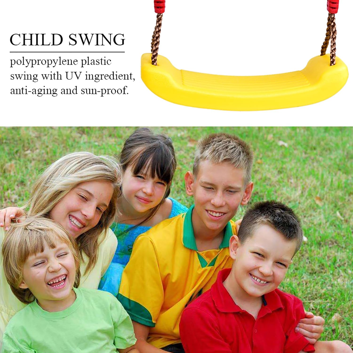 [Corda protetta da UV] L'oscillazione presenta una corda di plastica in polipropilene con ingredienti anti-UV, garantendo la durata e la protezione solare. [Installazione versatile] Questa oscillazione può essere facilmente appesa a un ramo di albero o un raggio, fornendo flessibilità nelle impostazioni di gioco all'aperto. [Sicuro e non tossico] Il sedile dell'oscillazione è progettato per essere sicuro e non tossico, garantendo un tempo di gioco senza preoccupazioni per i bambini. [Fibbia regolabile] Con 8 stili di fibbia regolabili, questa oscillazione è facile da personalizzare per adattarsi ai bambini di diverse dimensioni per il massimo comfort. [Design anti-slip] La sede piegata dell'oscillazione è anti-slip, permettendo ai bambini di giocare in sicurezza e godersi ore di divertimento all'aperto.