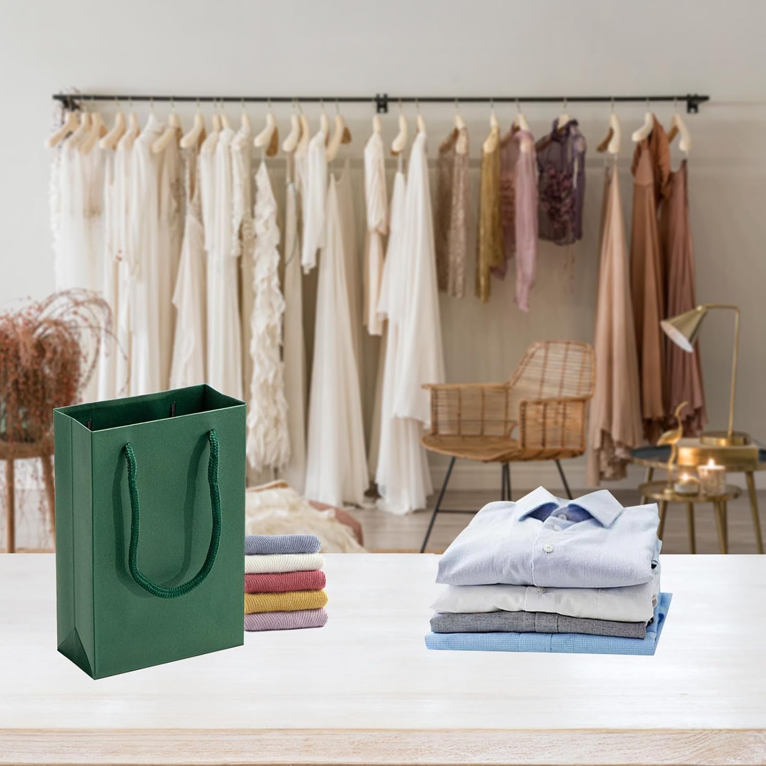 Sacchetti regalo robusti: i sacchetti regalo verde scuro SEECGOO sono realizzati con carta kraft verde di alta qualità da 230 g, che li rende più spessi e durevoli. I manici allargati della borsa verde sono fissati saldamente e il fondo è ben sigillato. Questi eleganti sacchetti regalo non sono facili da strappare e possono essere utilizzati a lungo. Uso versatile: le borse verdi sono adatte per una varietà di occasioni. Che si tratti di shopping, compleanni, matrimoni, feste di benvenuto, lauree, piccole occasioni aziendali, Pasqua, Natale, Halloween, vacanze, riunioni o esposizione di oggetti di artigianato, sono la scelta di imballaggio ideale. Libera la tua creatività: la superficie liscia dei sacchetti da festa verdi ti consente di disegnare i motivi desiderati, attaccare adesivi, decorare con nastri o etichette e creare facilmente un dolce personalizzato. Crea sacchetti regalo e goditi la gioia del fai da te. Specifiche dettagliate: Dimensioni: 13 x 6 x 19 cm. piccoli sacchetti regalo. La confezione contiene 50 sacchetti regalo verdi con manici per soddisfare le diverse esigenze. Servizio clienti attento: se hai domande sui nostri sacchetti regalo in carta verde scuro, non esitare a contattarci. Il nostro team di assistenza clienti ti contatterà il prima possibile