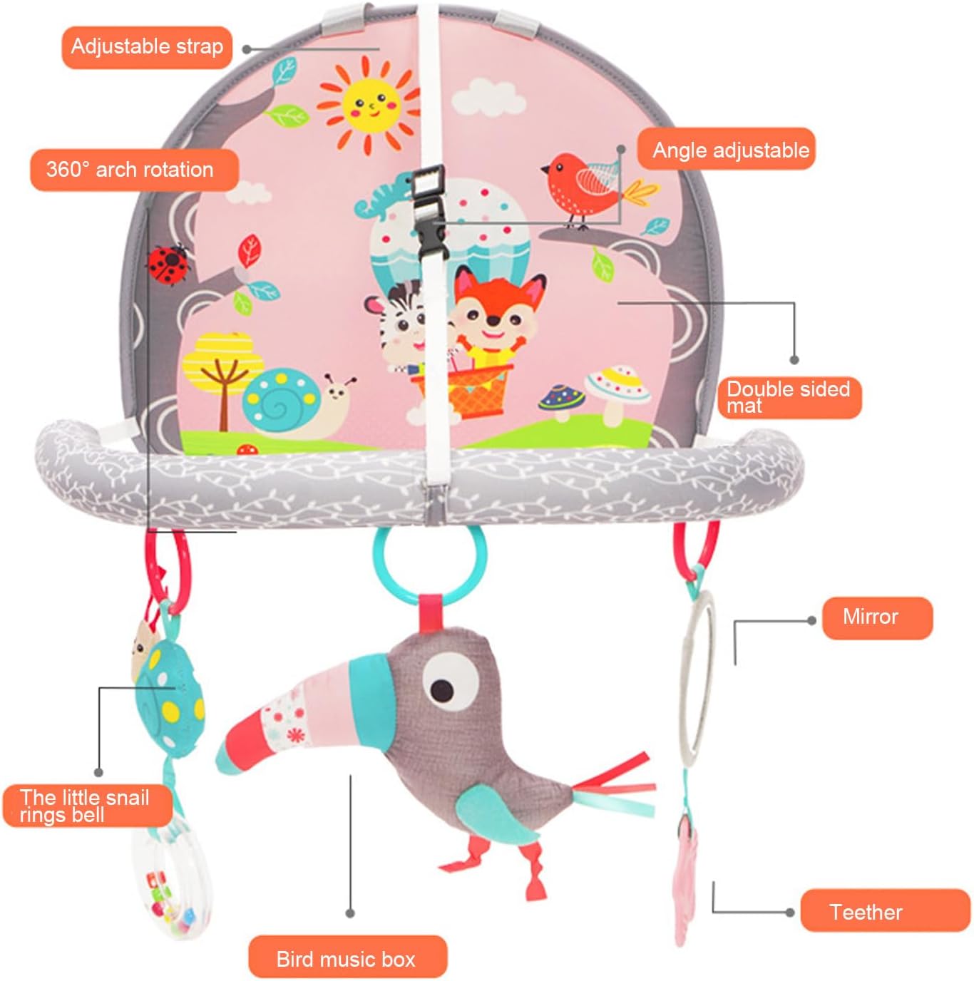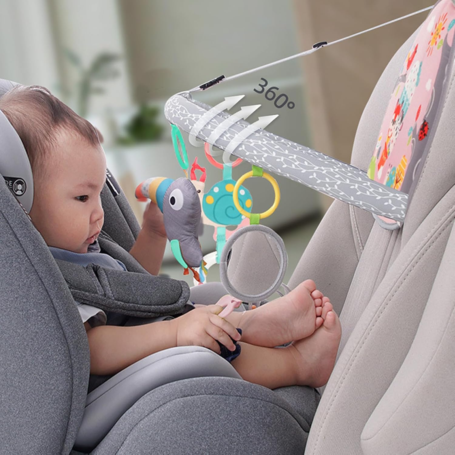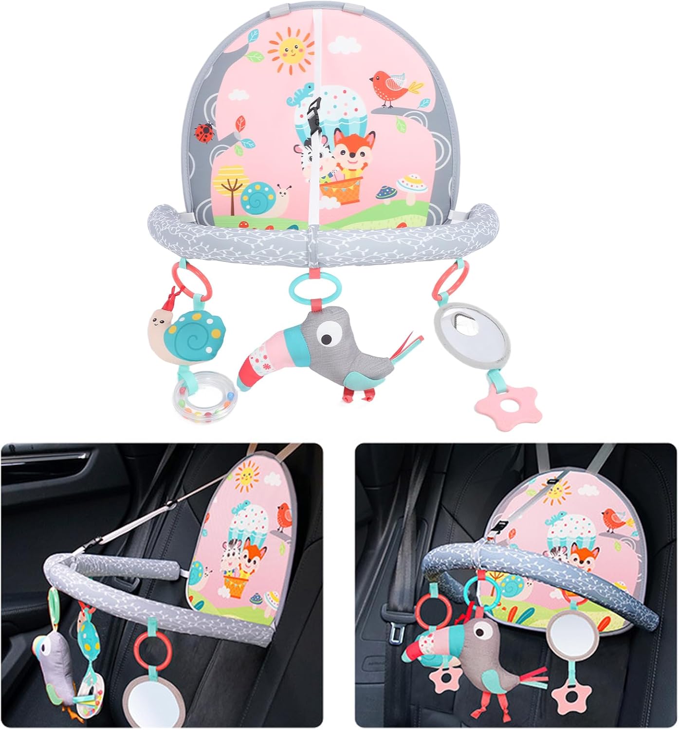 EDUCATIVO: il giocattolo per seggiolino auto per bambini è progettato con pannelli artistici su entrambi i lati, colorati per catturare l'attenzione del bambino e fornire una ricca interattività e ore di apprendimento divertente. SVILUPPO SENSORIALE: il giocattolo per auto per bambini appositamente progettato per i viaggi in auto con pendenti come carillon per uccelli e specchio promuove lo sviluppo sensoriale del bambino, le capacità motorie e la coordinazione occhio-mano. FACILE INSTALLAZIONE: questo giocattolo per auto per bambini è fissato saldamente sotto il poggiatesta dell'auto tramite due clip di plastica. La lunghezza e l'angolo di inclinazione possono essere regolati per evitare che il ciondolo si muova e colpisca il bambino. MORBIDO E SICURO: il giocattolo per il seggiolino posteriore dell'auto è realizzato in tessuto colorato, morbido e delicato sulla pelle, i bambini possono giocare con loro senza preoccuparsi di toccare i giocattoli e ferirli. RE GALO PER FETTO: il giocattolo ad per attività neonatali offre intrattenimento e un tranquillo in macchina per neonati e genitori. È un re galo per fetto per baby shower, Natale e compleanno del bambino.
