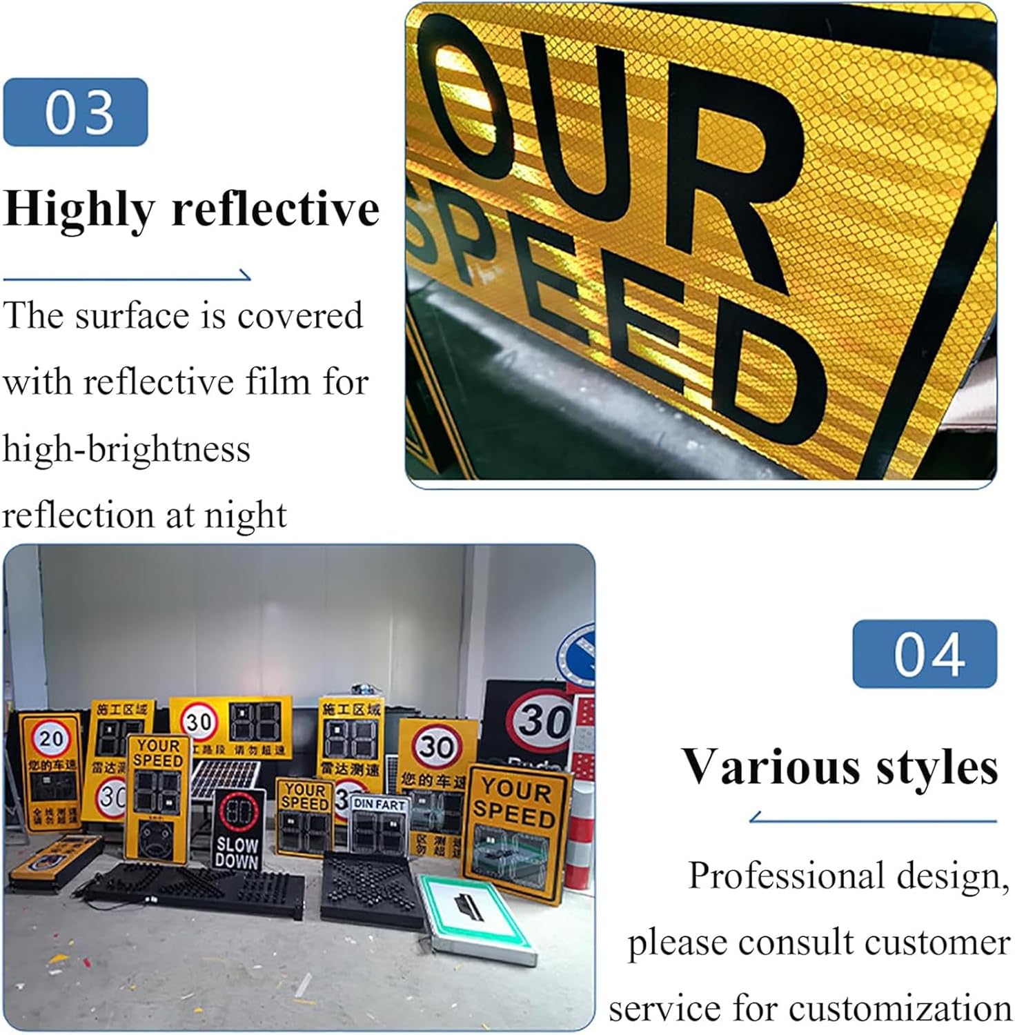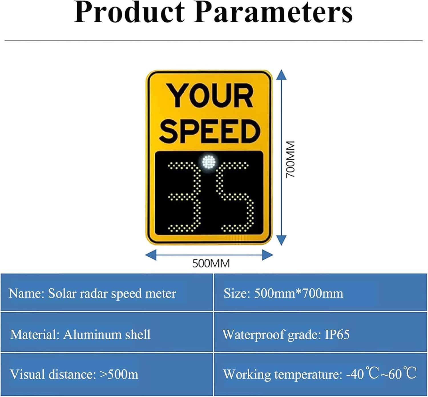 ➤Monitoraggio in tempo reale in tutte le condizioni atmosferiche: tachimetro solare, display in tempo reale, misurazione della velocità tramite radar. Pannelli solari, alto tasso di conversione, ricarica rapida, non influenzato dalle condizioni meteorologiche avverse. Distanza visiva superiore a 500 m ➤Pellicola riflettente ad alta luminosità: pellicola riflettente di grado ingegneristico, alta luminosità riflettente, forte retroriflettività notturna, maggiore sicurezza, dotata di telecomando, intervallo di misurazione della velocità da 2 a 99 miglia/ora, limite di velocità impostabile in base alle esigenze ➤Alta qualità: rispetto al materiale in alluminio presente sul mercato, il nostro display radar per la velocità è realizzato in lamiera zincata. Il guscio metallico di alta qualità è verniciato, impermeabile IP65, in grado di resistere a forti venti e altre condizioni meteorologiche avverse ➤Perline lampada LED: perline lampada bicolori rosse e gialle, alta luminosità, basso consumo energetico. La durata è superiore a 100000H ➤Facile da installare: installazione con telaio a forma di U, convenzionale 76/89 (personalizzabile), se avete esigenze particolari, contattateci. Facile da installare su pali zincati, pali di legno, recinzioni a maglie metalliche, ecc.