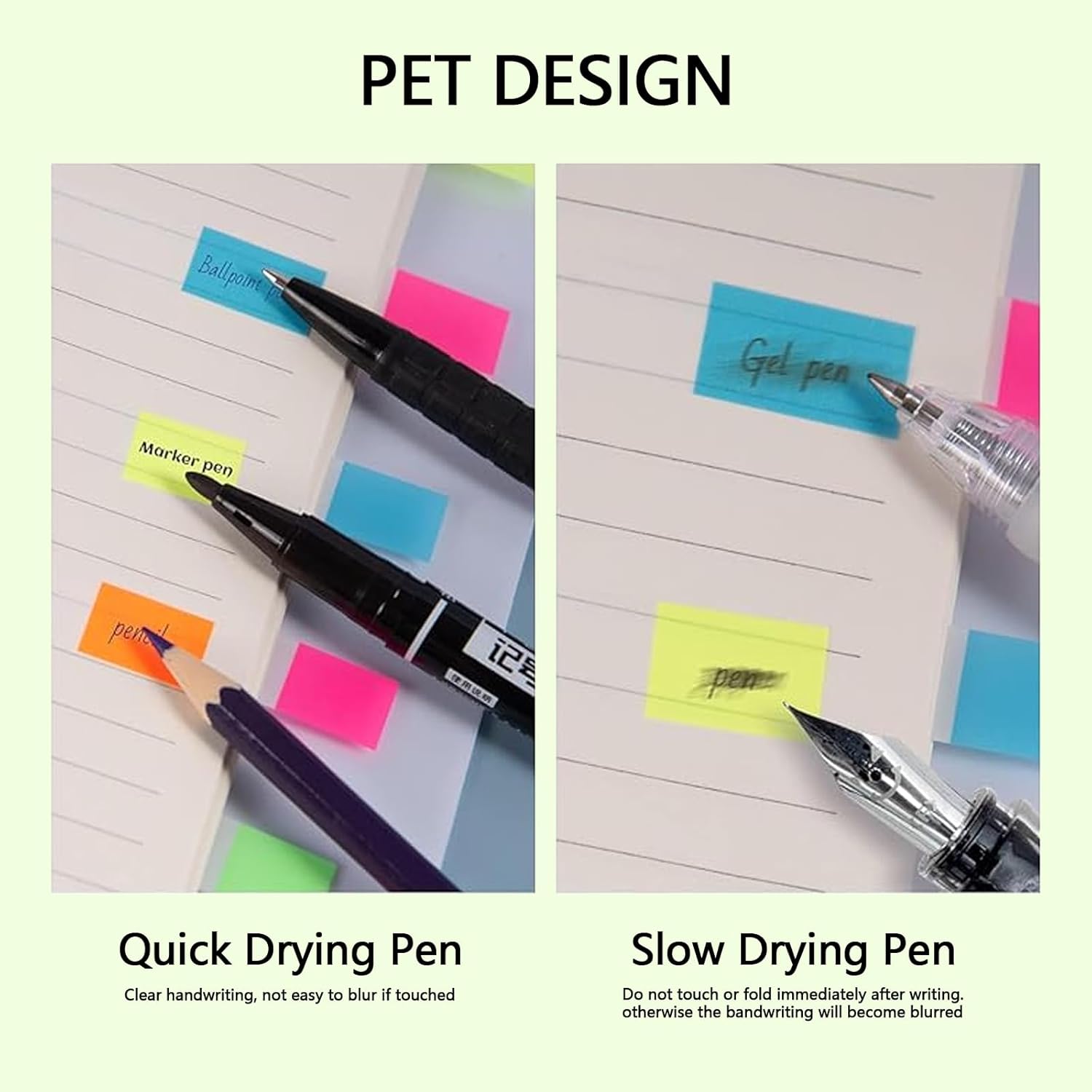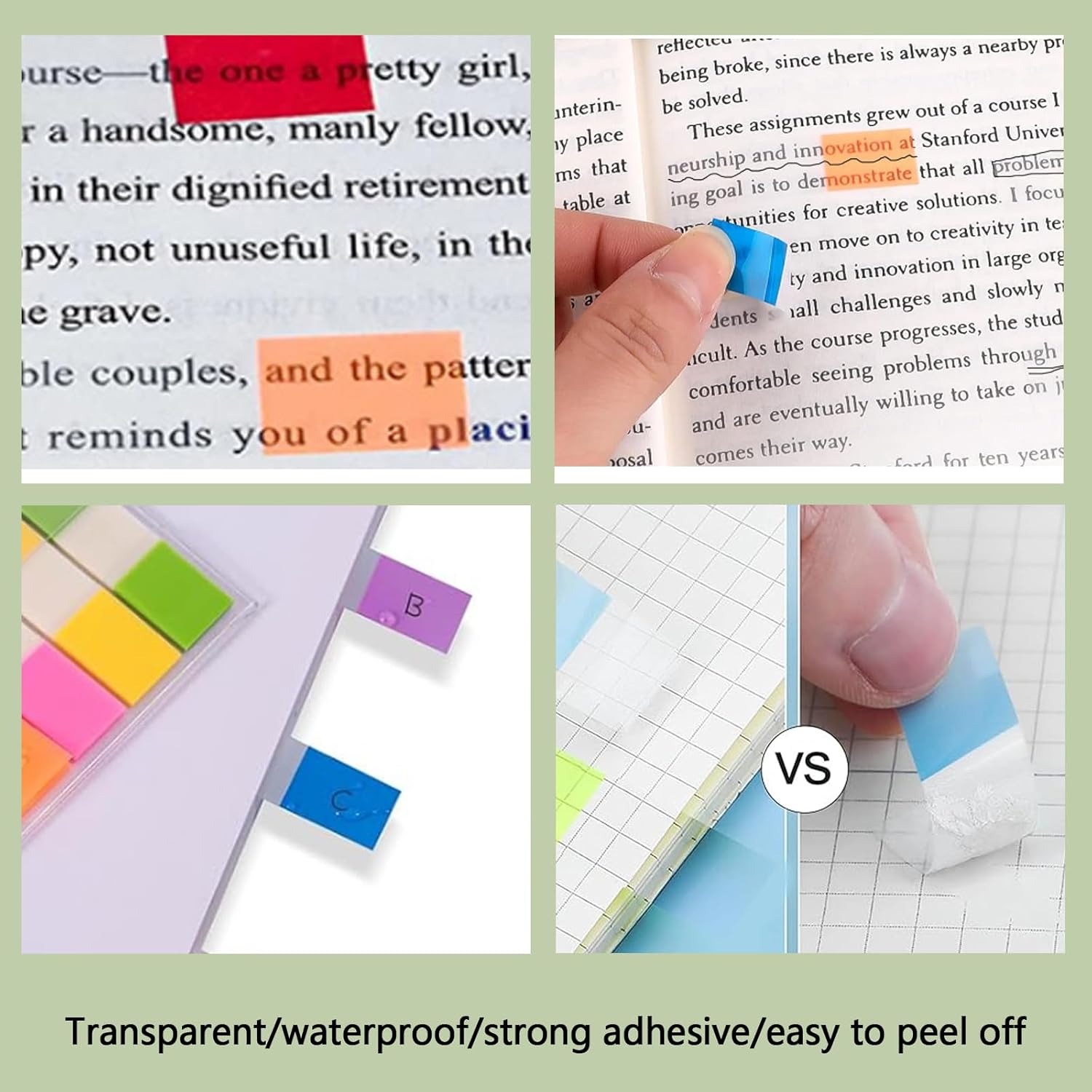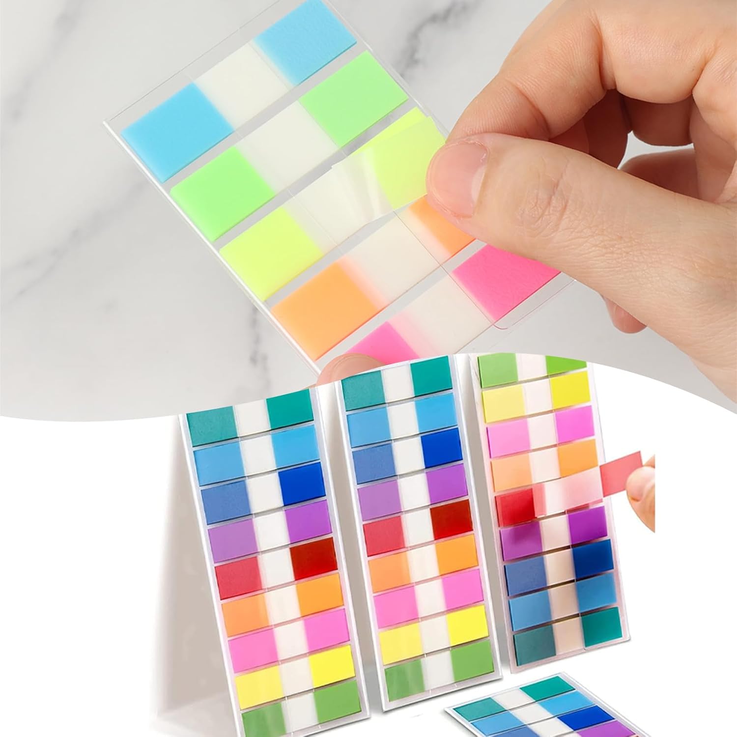 【Quantità】La confezione contiene 5 libri di foglietti adesivi, La confezione contiene 180 libri di segnalibri adesivi, 180 pezzi per libro, per un totale di 900 pezzi. 【Suggerimento】 I segnalibri adesivi sono adatti per penne a sfera, matite e pennarelli indelebili, ma non per penne a base d'acqua o penne gel. Assicurati di scegliere il giusto tipo di penna per scrivere per evitare problemi di non scrittura. 【Design trasparente】Con i segnalibri adesivi puoi identificare facilmente il testo in fondo alla pagina e non dovrai più preoccuparti di foglietti adesivi che coprono contenuti importanti. Puoi anche rimuovere facilmente i foglietti adesivi e posizionarli altrove senza lasciare traccia. 【Sicuro e di alta qualità】 I segnalibri adesivi sono realizzati in PET di alta qualità, ecologico e durevole, scrittura fluida, impermeabile, non tossico, nessun odore particolare, leggero e facile da trasportare. 【Ampie applicazioni】 I segnalibri adesivi sono adatti per ufficio, scuola, biblioteca e casa. I foglietti adesivi possono essere attaccati su pareti, scrivanie, computer, libri, diari, cartelle e altri luoghi per rendere il tuo studio e il tuo lavoro più produttivi.