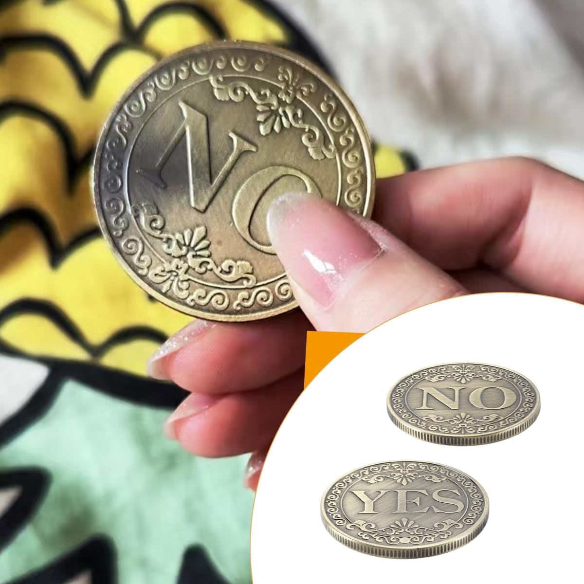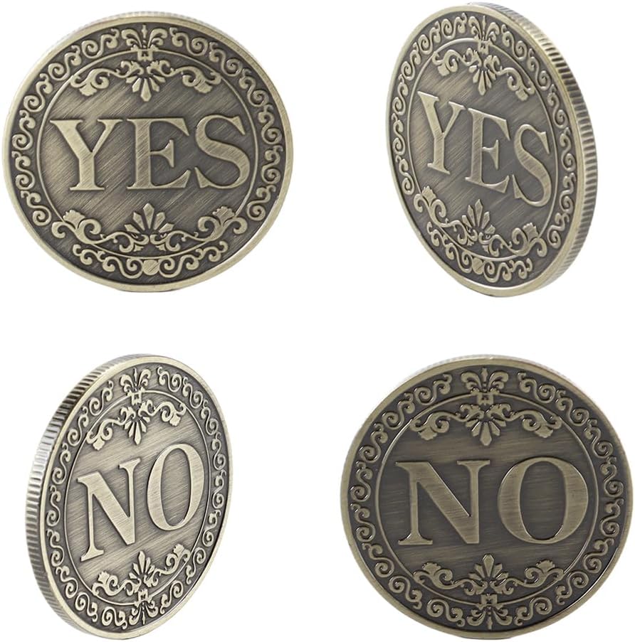 Materiale: è realizzato in metallo, molto resistente e durevole, pregevole fattura, resistenza alla corrosione, resistenza all'usura, elevata durezza, comodo per lo stoccaggio Caratteristiche: adotta un design bifacciale, con SÌ sul davanti e NO sul retro, il tutto cablato con motivo floreale Applicazione: può essere utilizzata come moneta da sfida, può anche essere utilizzata per la collezione, la decorazione delle feste o come un'idea squisita per parenti e amici Facile da usare È molto facile da usare e molto facile da pulire. Puoi metterlo in un mobiletto come una buona collezione Dimensioni: diametro 40 mm e spessore 2,5 mm, dimensioni compatte, facile da riporre