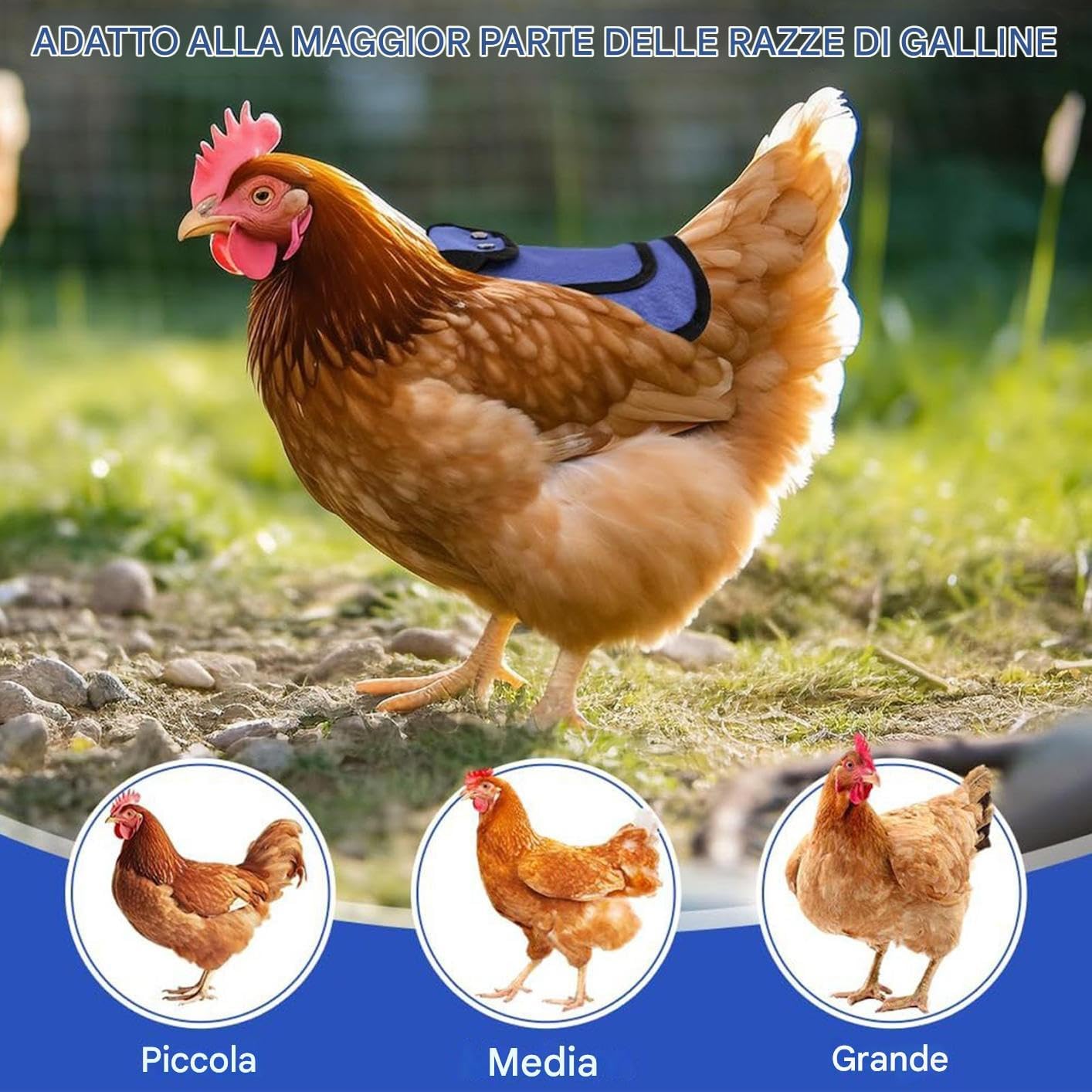 Protezione Efficace: La sella per galline protegge efficacemente da graffi e danni, riducendo la caduta delle piume e salvaguardando le galline durante le attività quotidiane mantenendole al sicuro Design Recupero Potenziato: Isolando disturbi esterni sostiene la capacità naturale di rigenerazione piume, offre assistenza riparativa affidabile e previene ulteriori danni, mantenendo la facilità d'uso per le galline. regolabile: Fibbia a doppia posizione consente di modificare la tensione per un stabile, mantenendo la protezione galline saldamente in posizione Conforto duraturo: Grazie alla vestibilità comoda e leggera, mantiene traspirabilità e resistenza assicurando praticità costante per le tue galline. Versatilità: Offre vantaggi termoregolatori con ampio utilizzo in tutte le stagioni, fornendo cura costante per esigenze ambientali diversificate delle galline.