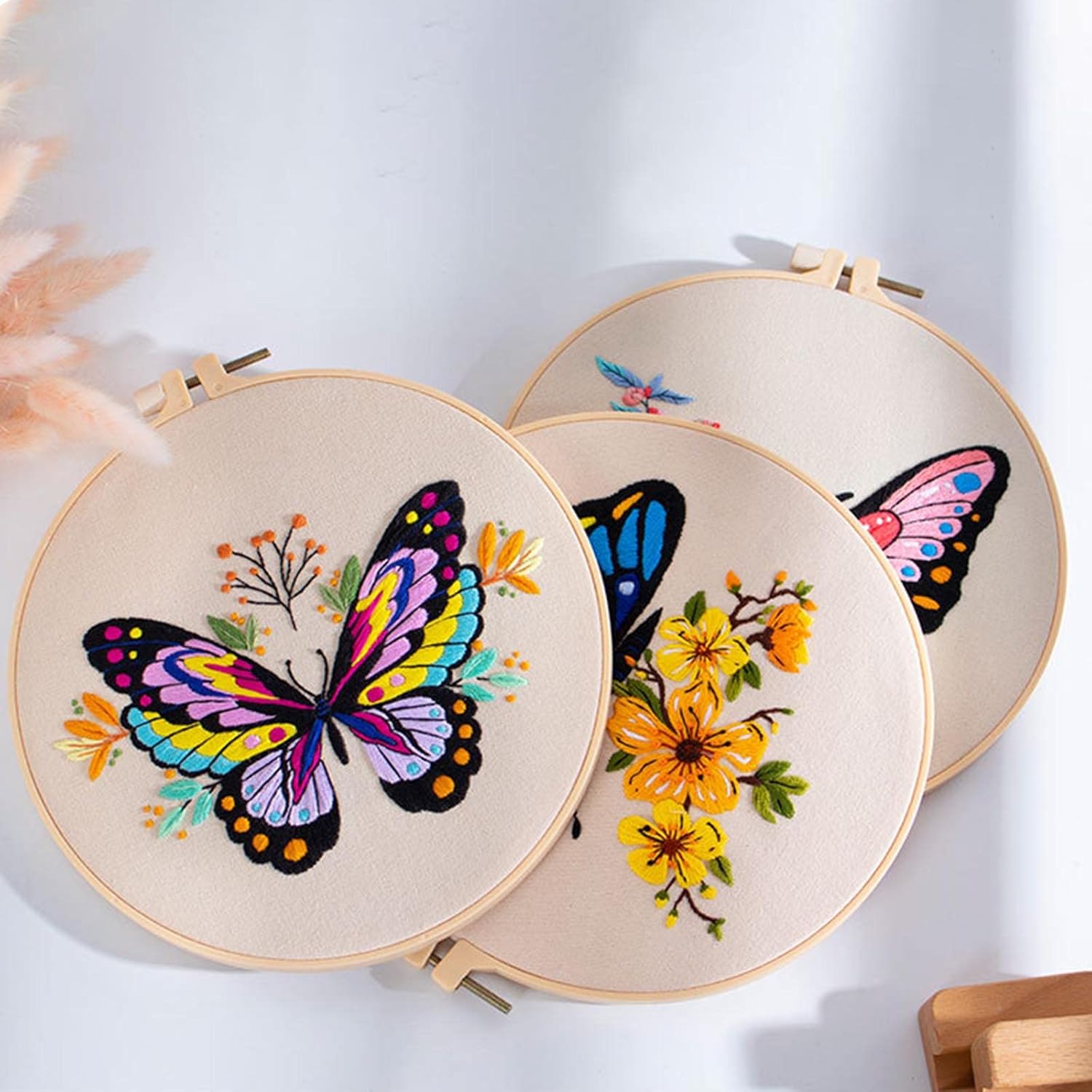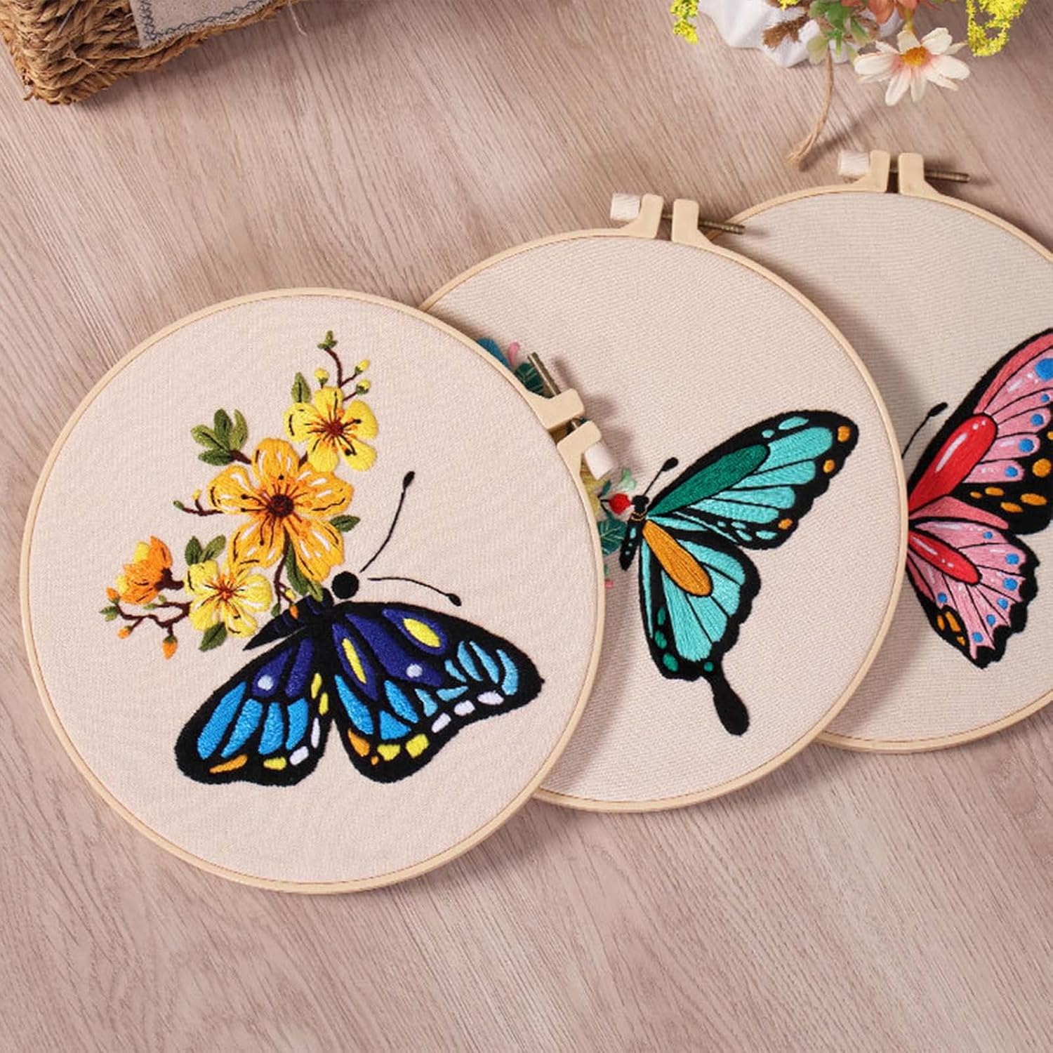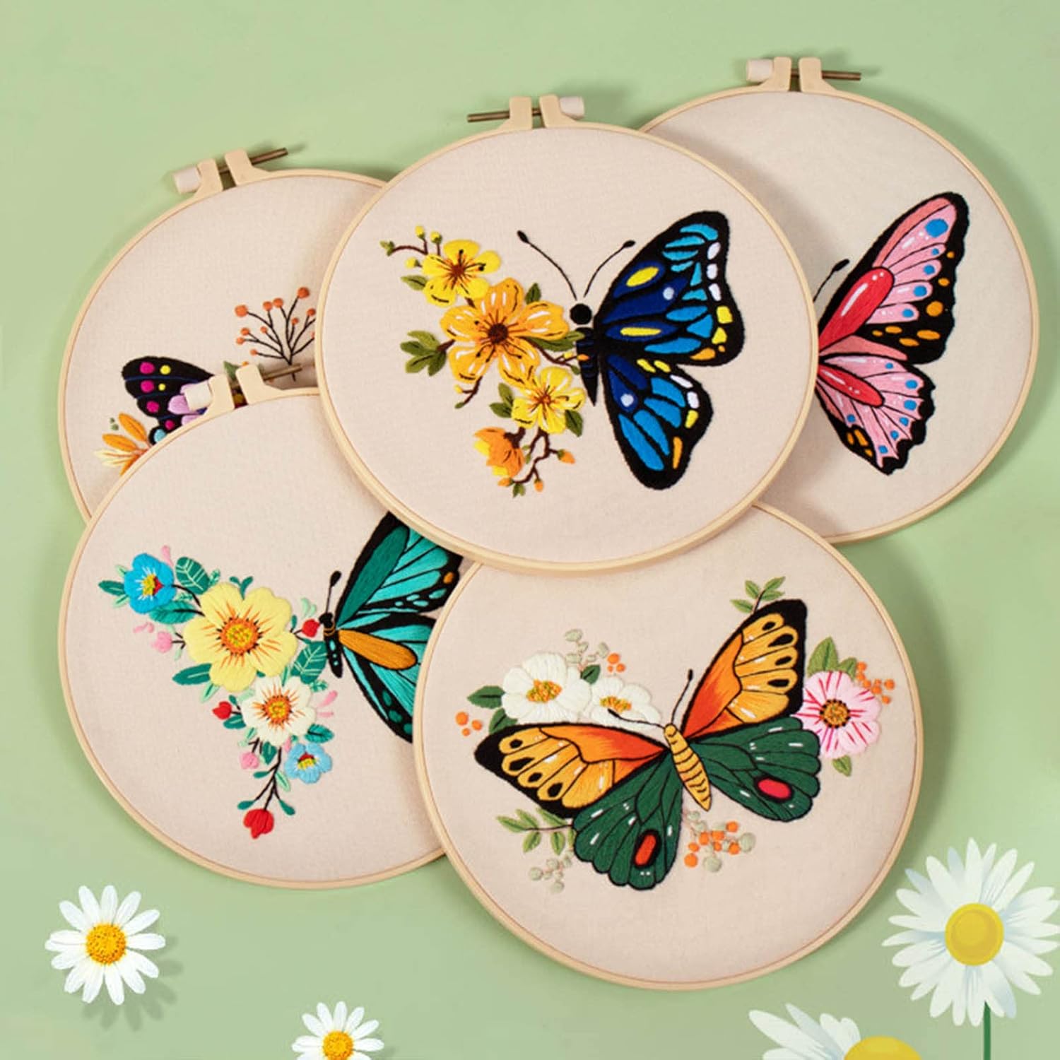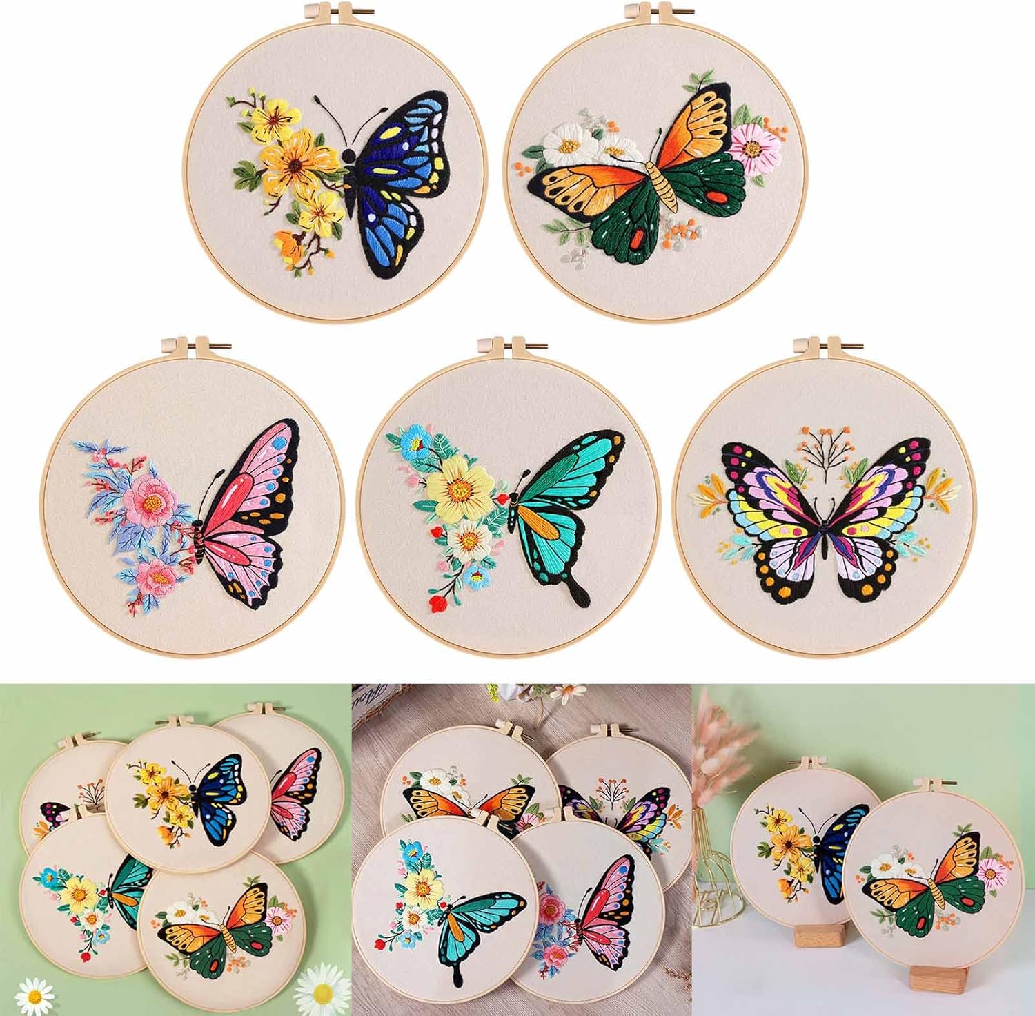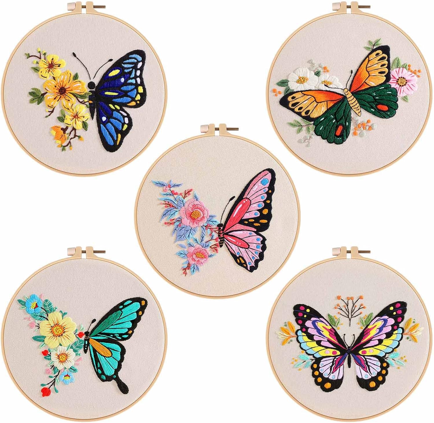 Kit: questo kit da ricamo viene fornito con panno in tessuto bianco con motivo, cerchio da ricamo, filo interdentale, ago, istruzioni per il modello. Tutti questi strumenti aiuteranno i principianti a imparare meglio il ricamo Miglior suo buon emboridery principianti, familiari e amici che amano il progetto di emboridery o che vogliono iniziare a imparare emboridery Facile Il panno di cotone ricamato progettato con motivo prestampato, le istruzioni sono facili da seguire e filo da ricamo in un bel colore brillante. Il telaio da ricamo ha una vite di regolazione che è possibile regolare per mantenere il tessuto stretto o allentato Design floreale: questo set da ricamo è composto da fiori e farfalle. Il motivo è semplice e facile da seguire e il prodotto finito è realistico e bello Decorazioni multiuso: puoi goderti il processo con la tua famiglia e gli amici, dopo aver terminato il tuo progetto di ricamo, e puoi usarlo per decorare soggiorno, camera da letto e ufficio con esso