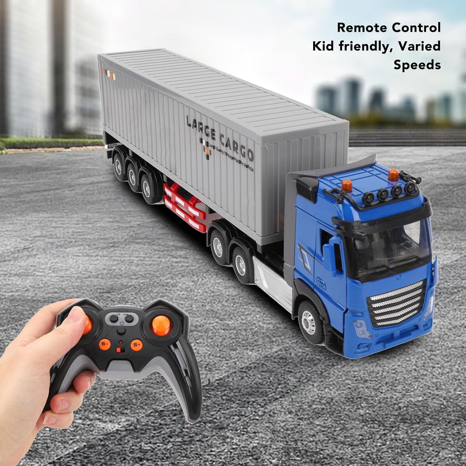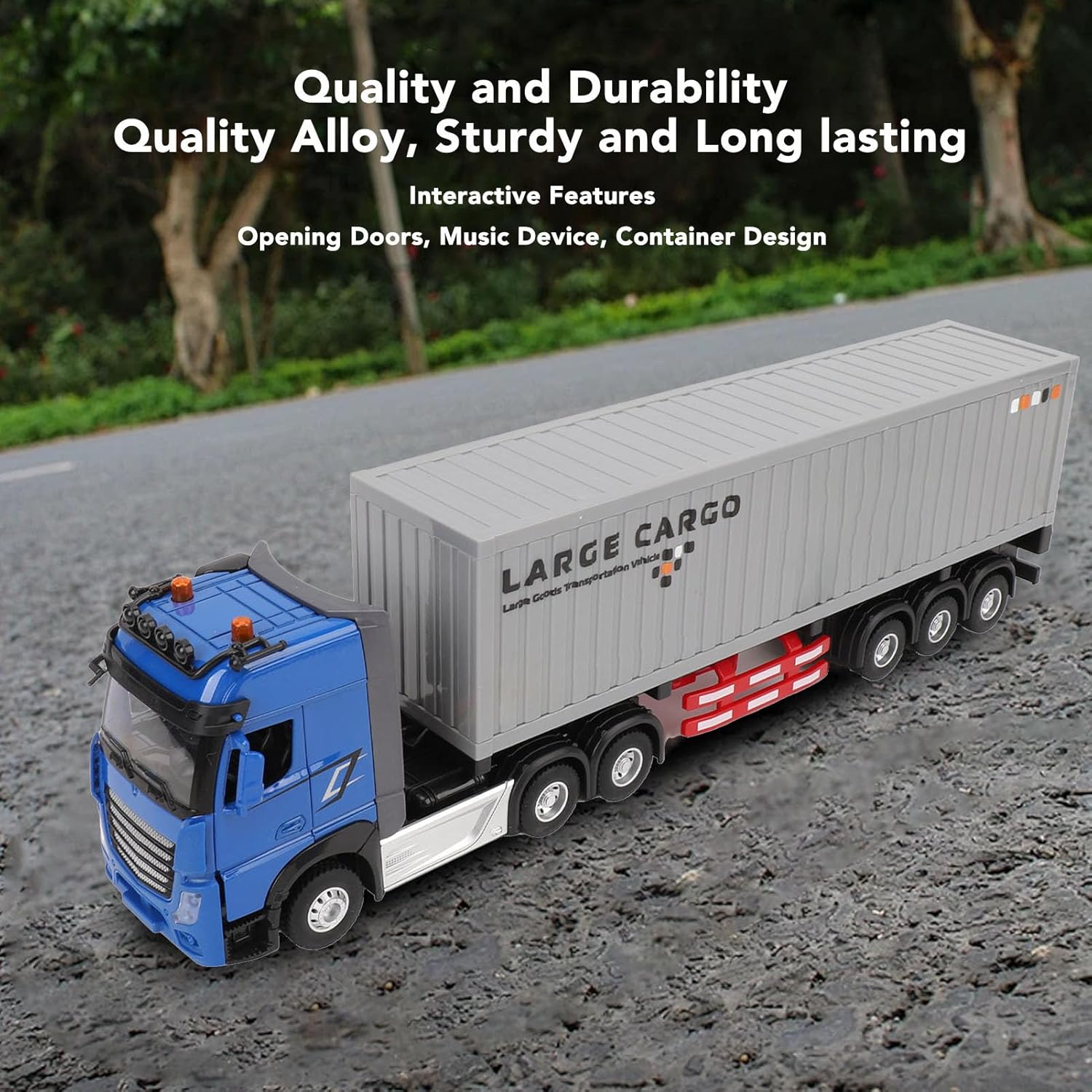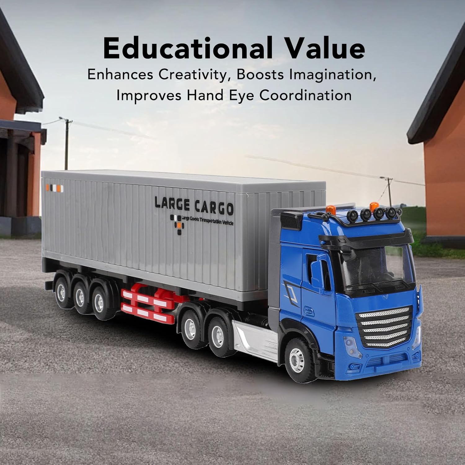 Camion semirimorchio telecomandato realistico: questo semirimorchio con telecomando per bambini presenta un design realistico con la possibilità di aprire le porte, fornendo un'esperienza di gioco coinvolgente per i bambini. Promuove il coordinamento: progettato per migliorare la coordinazione occhio-mano e le capacità operative, questo giocattolo per camion da trasporto RC è un giocattolo educativo ideale che incoraggia i bambini a usare la loro immaginazione e creatività durante il gioco. Giocattolo per il trasporto: il contenitore di trasporto incluso aggiunge un design unico all'esperienza di gioco, consentendo ai bambini di simulare il trasporto di merci e migliorare le loro abilità fantasiose. Molteplici opzioni di velocità e musica: dotato di una varietà di impostazioni di velocità e di una funzione musicale, questo camion giocattolo aggiunge eccitazione e divertimento al tempo di gioco mentre coinvolge i bambini nel gioco. Corpo in lega robusta: realizzato in lega di eccellente qualità, questo camion giocattolo è costruito per durare, garantendo una lunga durata di gioco per i bambini mentre esplorano e interagiscono con il veicolo.