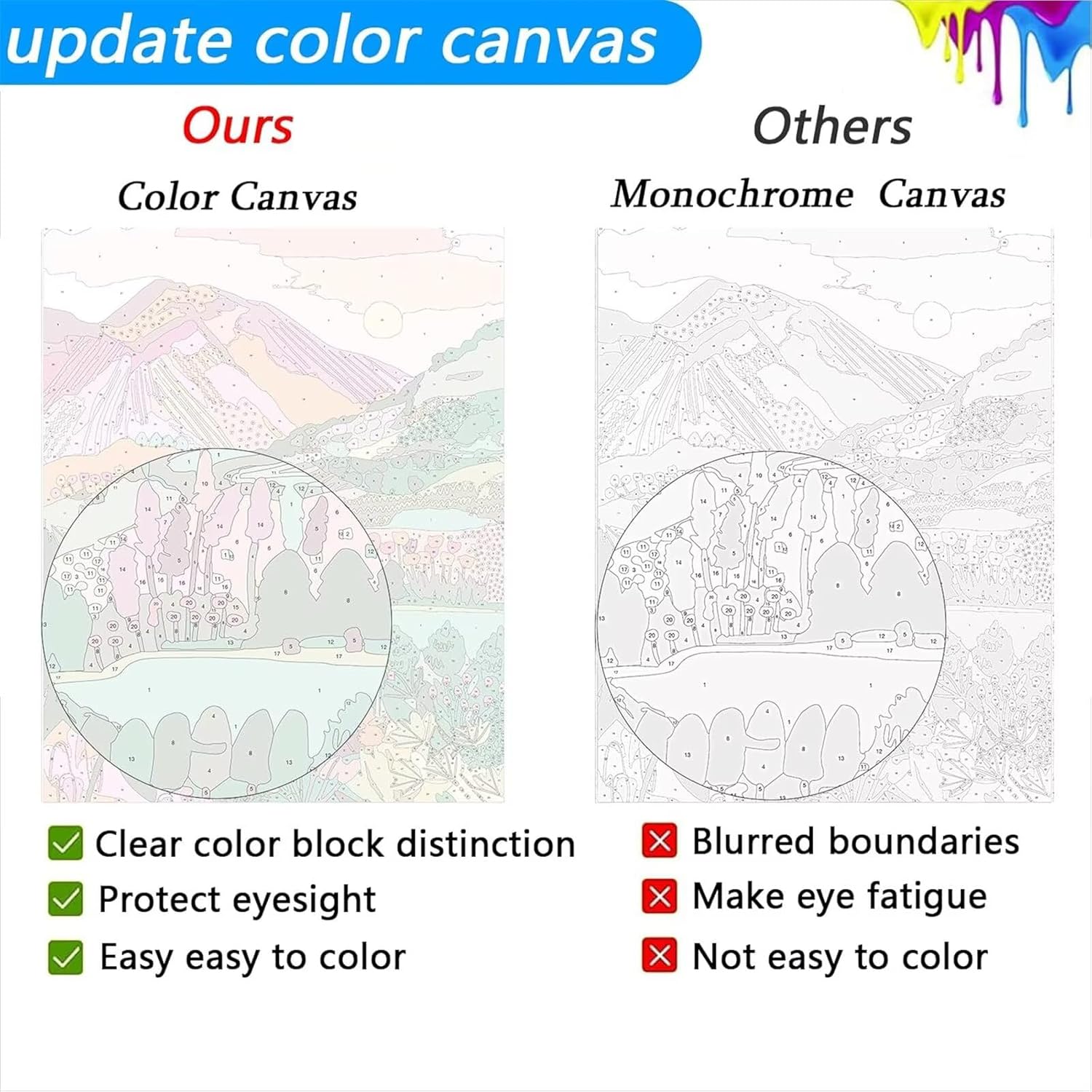 【Kit per dipingere con i numeri per adulti 】Il kit per dipingere con i numeri per adulti include 1 tela (senza cornice), 3 pennelli, 1 set di colori acrilici, 1 tela di riferimento numerata e 2 ganci di metallo. (Grande dimensione con più set di strumenti) 【Dipingere con i numeri per adulti】 Paint by numbers utilizza una tela colorata ad alta definizione, che rende più facile distinguere l'area dei numeri, la vernice è facile da aderire. I numeri della tela sono chiari e facili da leggere. La vernice è di colore brillante e non facile da sbiadire e asciugare. 【Facile da dipingere 】Il kit Paint by number è facile, basta colorare l'area corrispondente in base ai numeri sulla tela. Sono disponibili pennelli di tre diverse dimensioni, in modo da poter scegliere quello appropriato in base alle proprie esigenze. 【Divertimento e rilassamento 】Paint by numbers per adulti può aiutarvi a trascorrere il vostro tempo libero. È facile e adatto a tutti. Non solo potete alleviare lo stress della vita dipingendo e tornare alla pace interiore, ma anche migliorare la vostra abilità manuale. 【Decorazione e regalo significativo 】La pittura per numero è perfetta per l'arredamento della casa. La pittura per numero è anche una buona scelta per Halloween, Natale, compleanno e premi di gioco per le feste. È applicabile a una vasta gamma di scene.