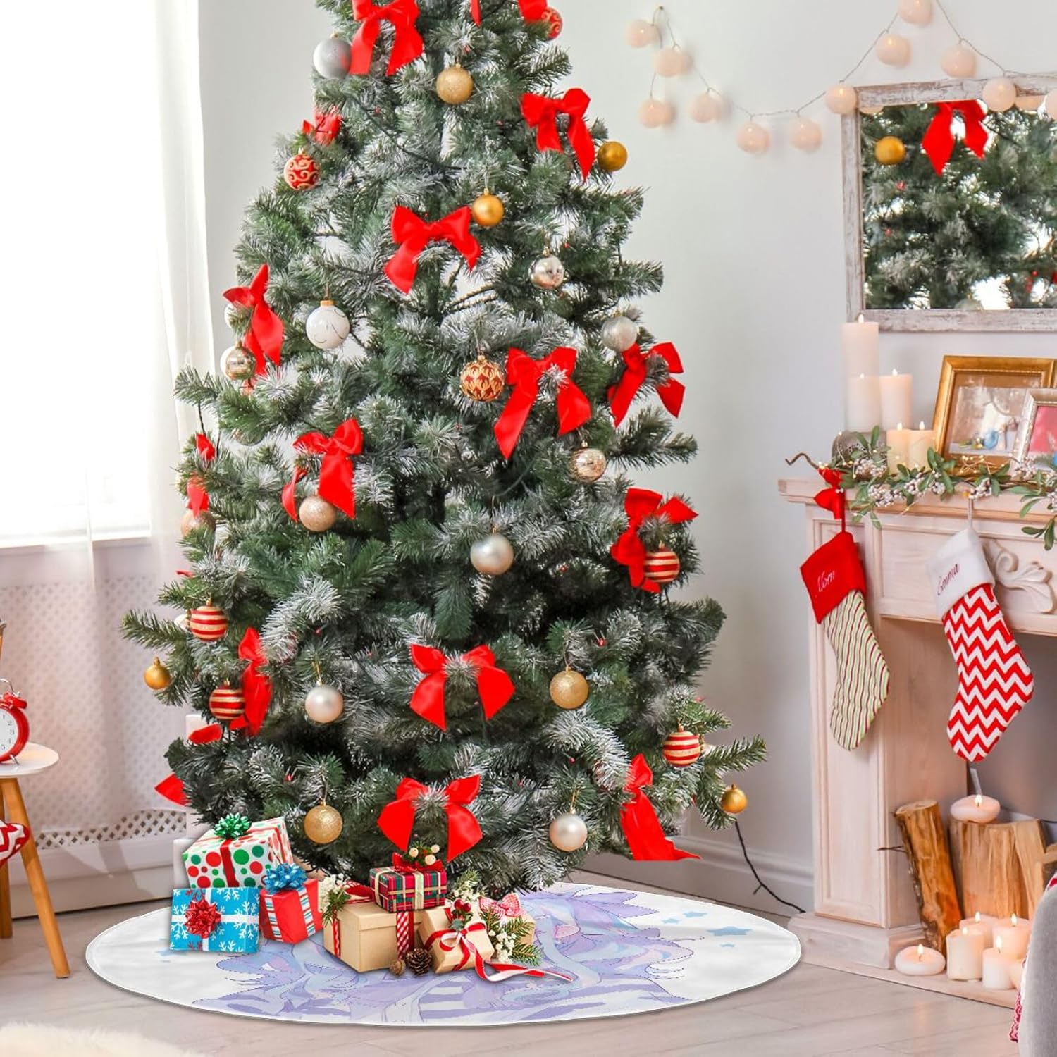 【Dimensione perfetta】 La dimensione del diametro esterno è di 48 pollici e la dimensione del diametro interno è di 4,3 pollici, adatta per alberi da 1,8 a 2,4 m. Tre corde rendono la gonna dell'albero di Natale più facile da usare, quindi può essere accesa o spenta. Facile da attaccare Realizzato in morbido materiale di poliestere, che garantisce che le gonne dell'albero di Natale possano essere utilizzate a lungo e riutilizzate per tutti i tipi di festival, dona anche una calda atmosfera festiva con un tocco confortevole. PROTEGGI LA TUA CASA - Aggiunge decorazioni nascondendo supporti per alberi poco attraenti. Le decorazioni dell'albero di Natale proteggono anche il tappeto dagli aghi degli alberi. Una gonna per albero può aiutarti a mantenere pulita la tua casa raccogliendo gli aghi che cadono da un vero albero di pino, che saranno invariabilmente sparsi per tutta la casa se non catturati e raccolti correttamente. Facile da montare e mantenere: la gonna dell'albero di Natale sul retro si chiude con 3 chiusure in velcro per decorare l'albero di Natale in modo facile e veloce senza bisogno di legarlo. Lavare in lavatrice delicatamente, asciugare in asciugatrice a bassa temperatura. MULTIUSO: per decorazioni per l'albero di Natale a casa, a scuola, in negozio, in ufficio, in hotel, al supermercato, ecc. Puoi acquistare gonne per albero di Natale come regalo perfetto per la tua famiglia o decorare il tuo Natale.