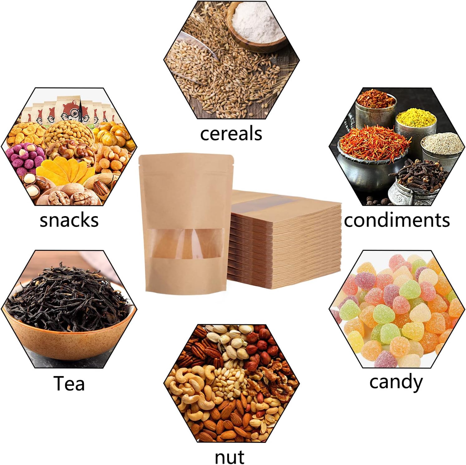 ✔️【Dimensioni della confezione】200 sacchetti di carta per imballaggio alimentare, con finestra, dimensioni 14×20 cm, finestra trasparente ad alta risoluzione, in grado di distinguere chiaramente diversi alimenti. ✔️ 【Materiale eccellente】 Il sacchetto per sandwich confezionato è realizzato in carta PET e carta kraft, rivestito con pellicola di copertura CPP, materiale per uso alimentare, resistente allo strappo, alla caduta, all'umidità, alla muffa, insapore e resistente alle alte temperature, adatto per la conservazione e il trasporto di alimenti a lungo termine. ✔️ 【Ampia applicazione】 I sacchetti di carta stand-up con cerniera sono molto adatti per conservare cibo secco, cibo per matrimoni, tè, bustine di caffè, sale, caramelle, snack, noci, semi, fagioli, zucchero, cibo fai-da-te, erbe disidratate, ecc. ✔️ 【Riutilizzabile】 Con i sacchetti di carta per finestre piccoli, può essere richiuso, facile da aprire, impermeabile e resistente all'umidità. Sulla parte superiore della borsa è presente una tacca a forma di U, che può essere strappata dopo la termosaldatura per facilitarne la movimentazione. ✔️ 【Fondo spesso】 I sacchetti di carta per alimenti marroni adottano un design con fondo spesso, in modo che i sacchetti di imballaggio del prodotto possano sopportare una pressione maggiore e il fondo non sia facile da cadere. Il fondo adotta un design tridimensionale, che rende la tua posizione più stabile e mostra meglio il tuo cibo.