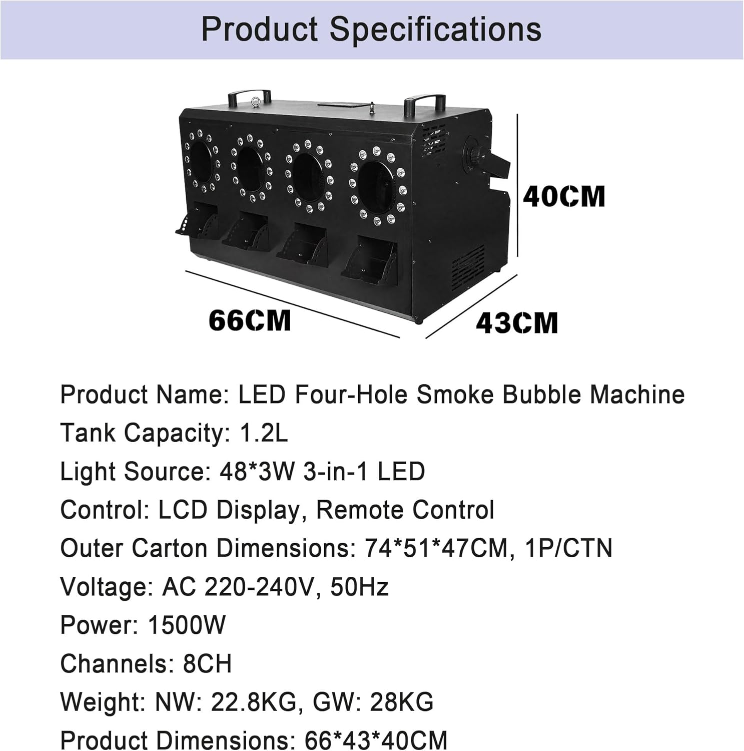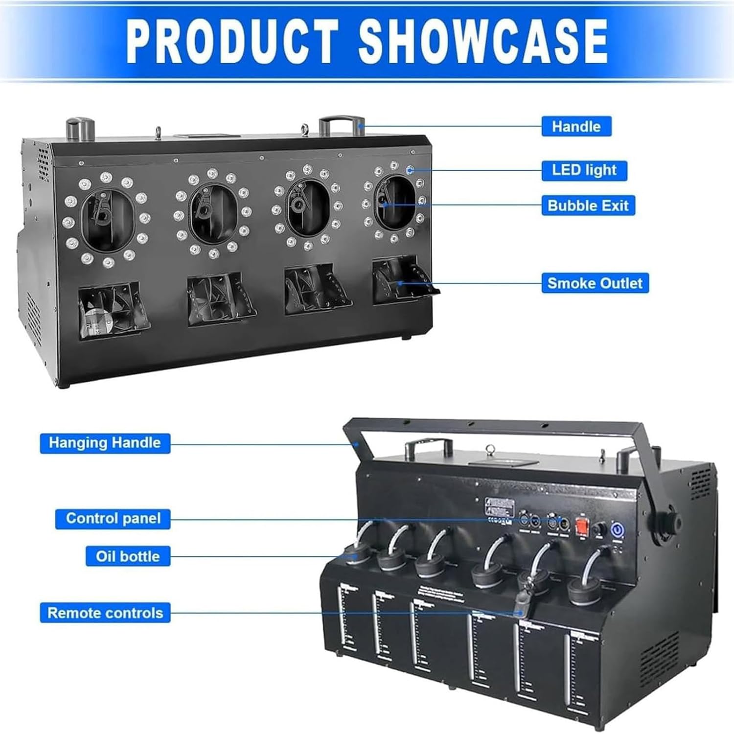 ♦【Con Perline Lampada】: Dotata di 12 perline lampada LED RGBW da 3W ad alta potenza for porta di uscita, la macchina è dotata di un pannello di controllo LCD for produrre bolle di fumo colorate e vibranti ♦【Emissione Di Nebbia E Bolle Ad Alta Capacità】: La macchina professionale per la nebbia a bolle genera nebbia ad alta densità e bolle voluminose, con una portata del fumo di 8 metri e un'altezza delle bolle di 6 metri, trasformando istantaneamente qualsiasi spazio in un'atmosfera magica. ♦【Metodo di Controllo】: La macchina del fumo a bolle è dotata di D512/telecomando/controllo manuale. Il D512 ha 8 canali per controllare diversi effetti e il telecomando è facile da usare e semplice da utilizzare ♦【Controllo Versatile】: Compatibile con D512, telecomando e controllo manuale; 8 canali per effetti personalizzati. Serbatoio acqua rimovibile per riempimento e pulizia facili ♦【Ampia Applicazione】: Ideale per TV, discoteche, concerti, feste, matrimoni, festival e presentazioni scolastiche. Serbatoio indipendente riduce al minimo perdite di liquido, semplificando manutenzione e pulizia