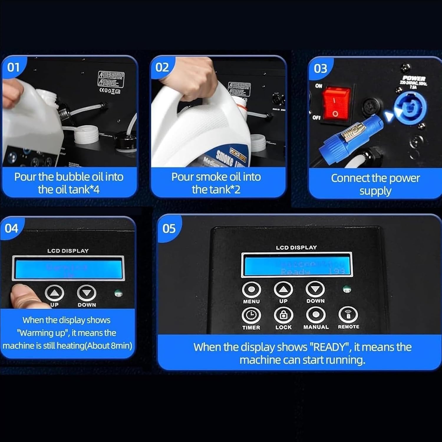 ♦【Macchina for Bolle di Fumo】: Questa macchina for bolle professionale produce fumo ad alta densità e un gran numero di bolle, con una gittata fino a 8 metri e un'altezza delle bolle fino a 6 metri, trasformando istantaneamente qualsiasi spazio in un'atmosfera da sogno ♦【Effetto Spettacolare 3-in-1】: Produce fumo ad alta densità e bolle fino a 6 m di altezza, macchina bolle fumo con gittata fino a 8 m, trasformando matrimoni, concerti, club e grandi eventi in esperienze visive ipnotizzanti ♦【Metodo di Controllo】: La macchina del fumo a bolle è dotata di D512/telecomando/controllo manuale. Il D512 ha 8 canali per controllare diversi effetti e il telecomando è facile da usare e semplice da utilizzare ♦【Controllo Versatile】: Compatibile con D512, telecomando e controllo manuale; 8 canali per effetti personalizzati. Serbatoio acqua rimovibile per riempimento e pulizia facili ♦【Ampia Applicazione】: Ideale per TV, discoteche, concerti, feste, matrimoni, festival e presentazioni scolastiche. Serbatoio indipendente riduce al minimo perdite di liquido, semplificando manutenzione e pulizia